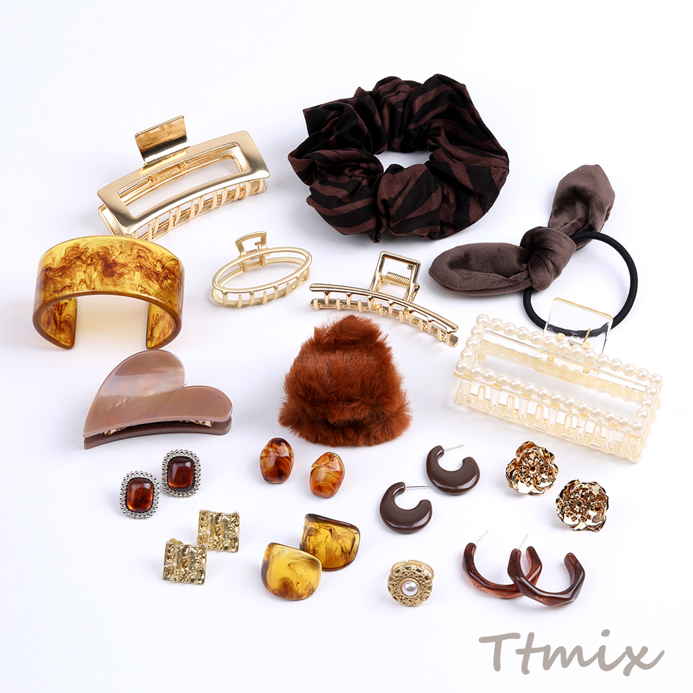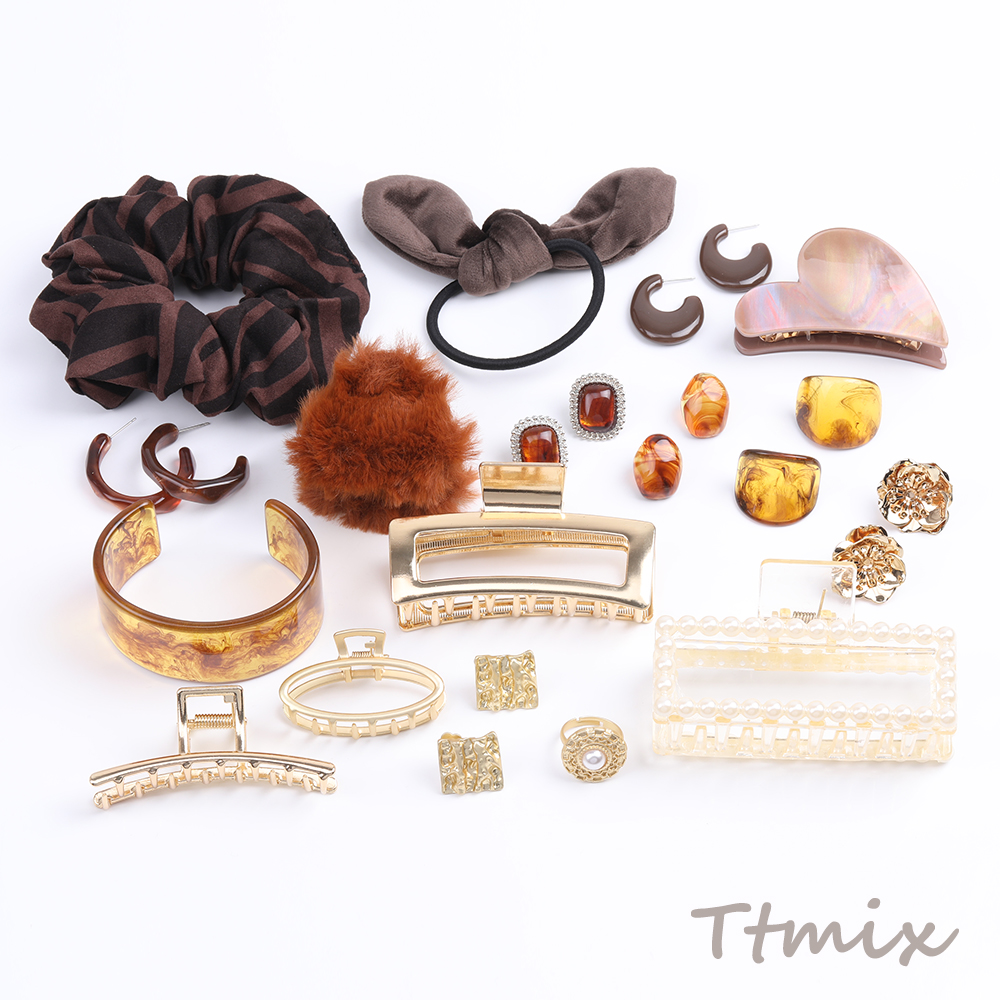 入数 1セット:ヘアアクセサリー(9種×1ヶ)、リング×1ヶ、ピアス(7種×1ペア)/パック