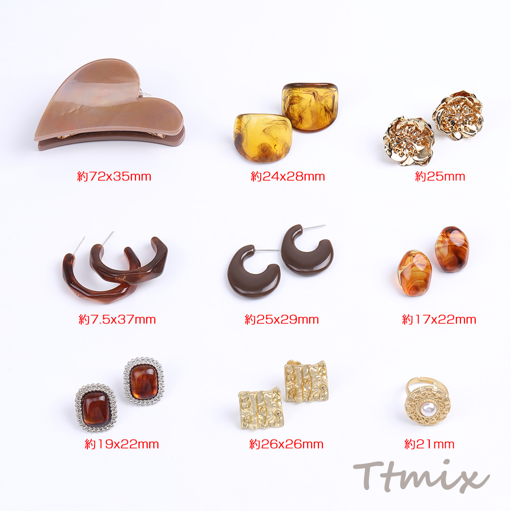 入数:1セット:ヘアアクセサリー(9種×1ヶ)、リング×1ヶ、ピアス(7種×1ペア)