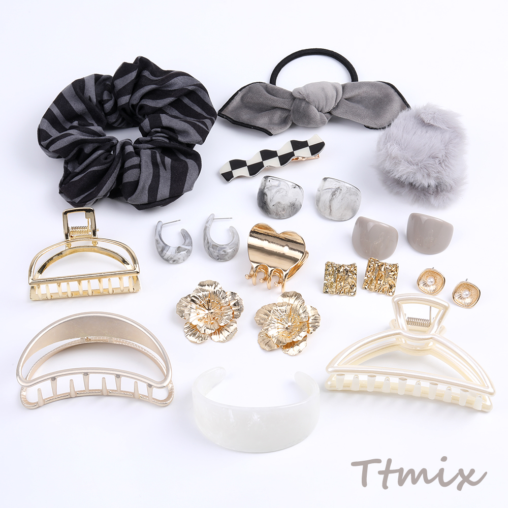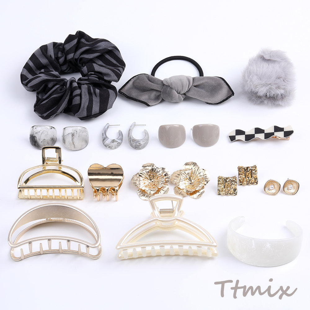 入数 1セット:ヘアアクセサリー(8種×1ヶ)、ピアス(6種×1ペア)、バングル×1ヶ/パック