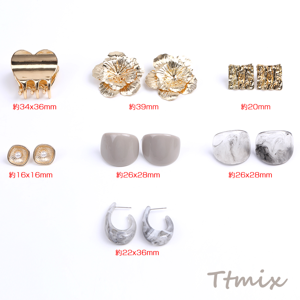 入数:1セット:ヘアアクセサリー(8種×1ヶ)、ピアス(6種×1ペア)、バングル×1ヶ
