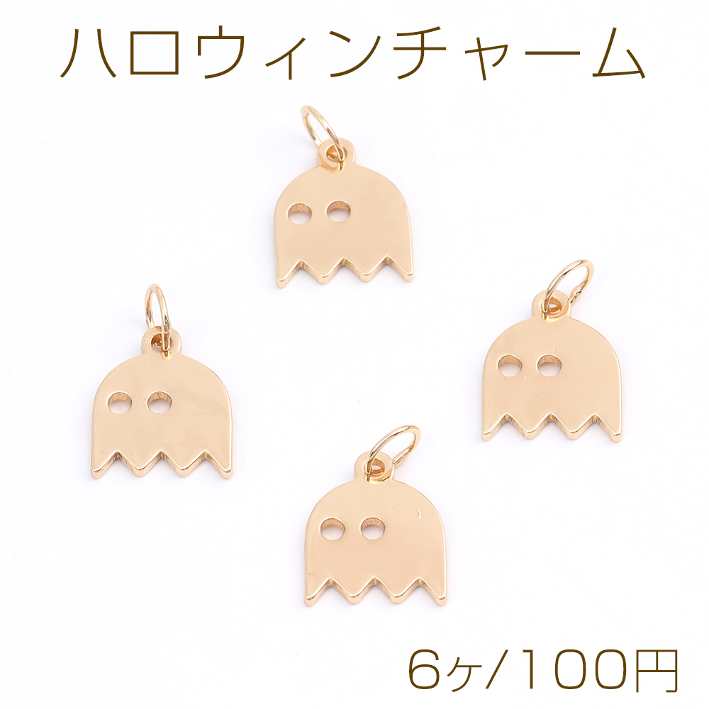 ハロウィンチャーム 幽霊チャーム メタルチャーム リングパーツ付き 10×12mm ゴールド(6ヶ)