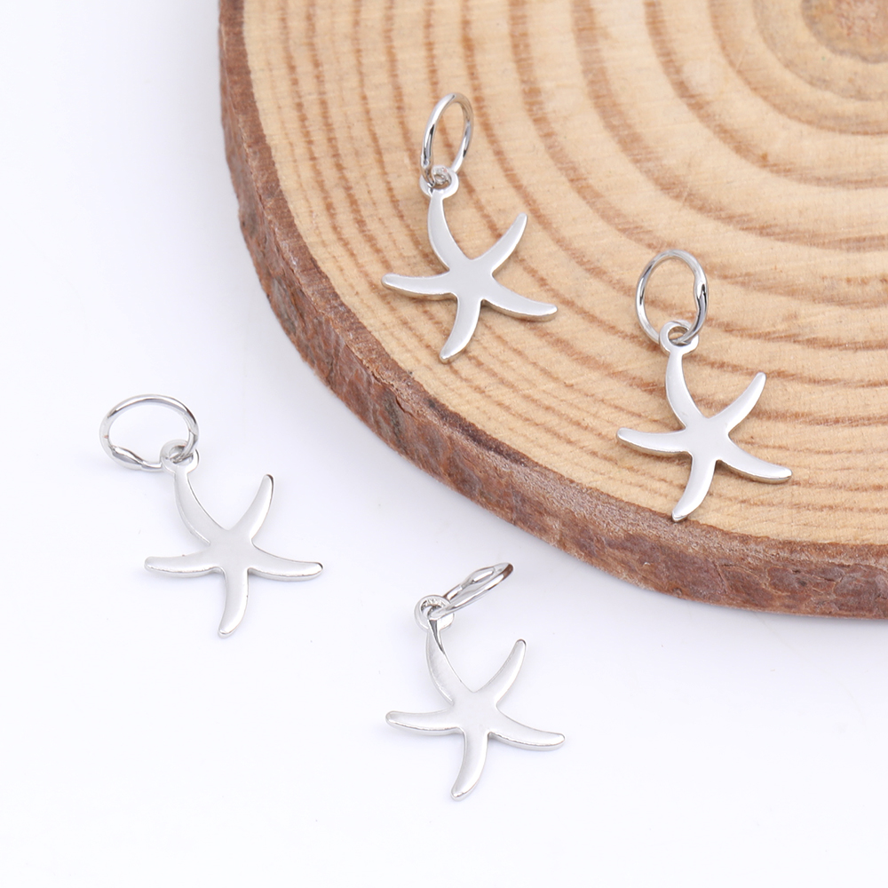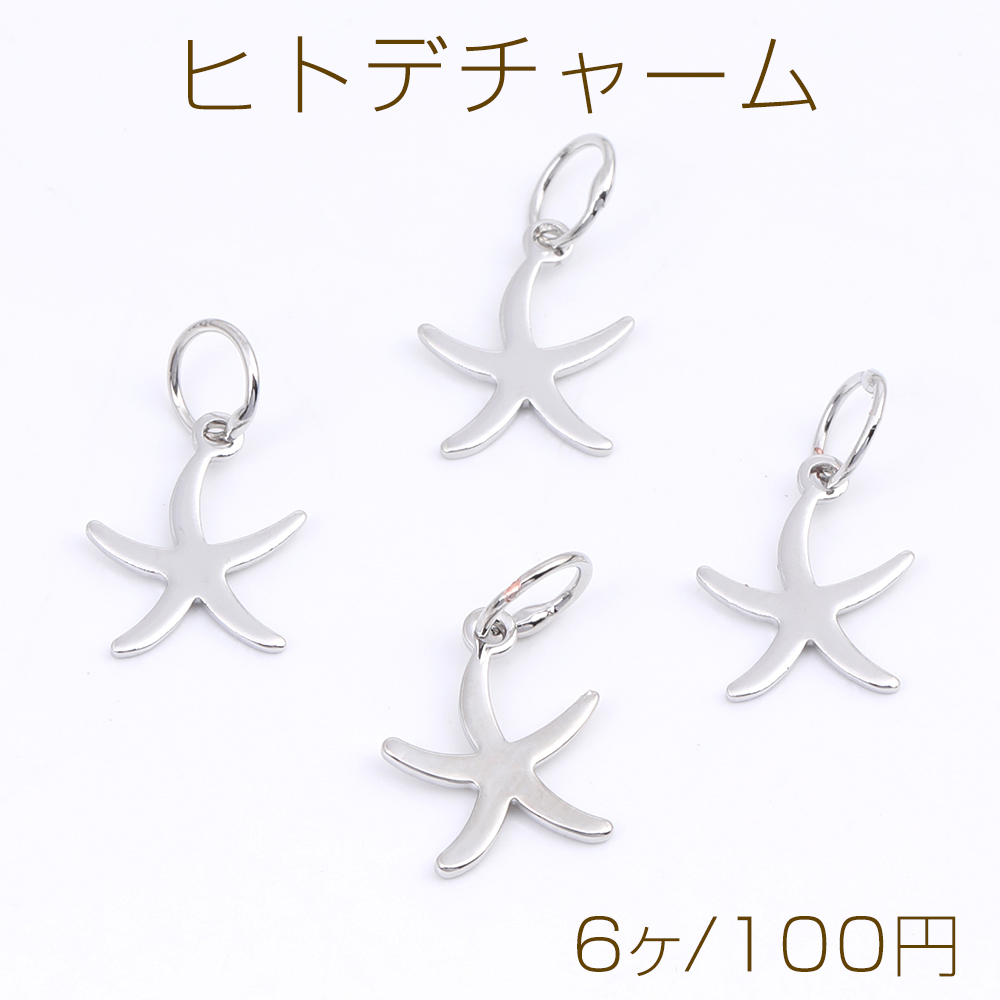 ヒトデチャーム メタルチャーム リングパーツ付き 8×11mm ロジウム(6ヶ)