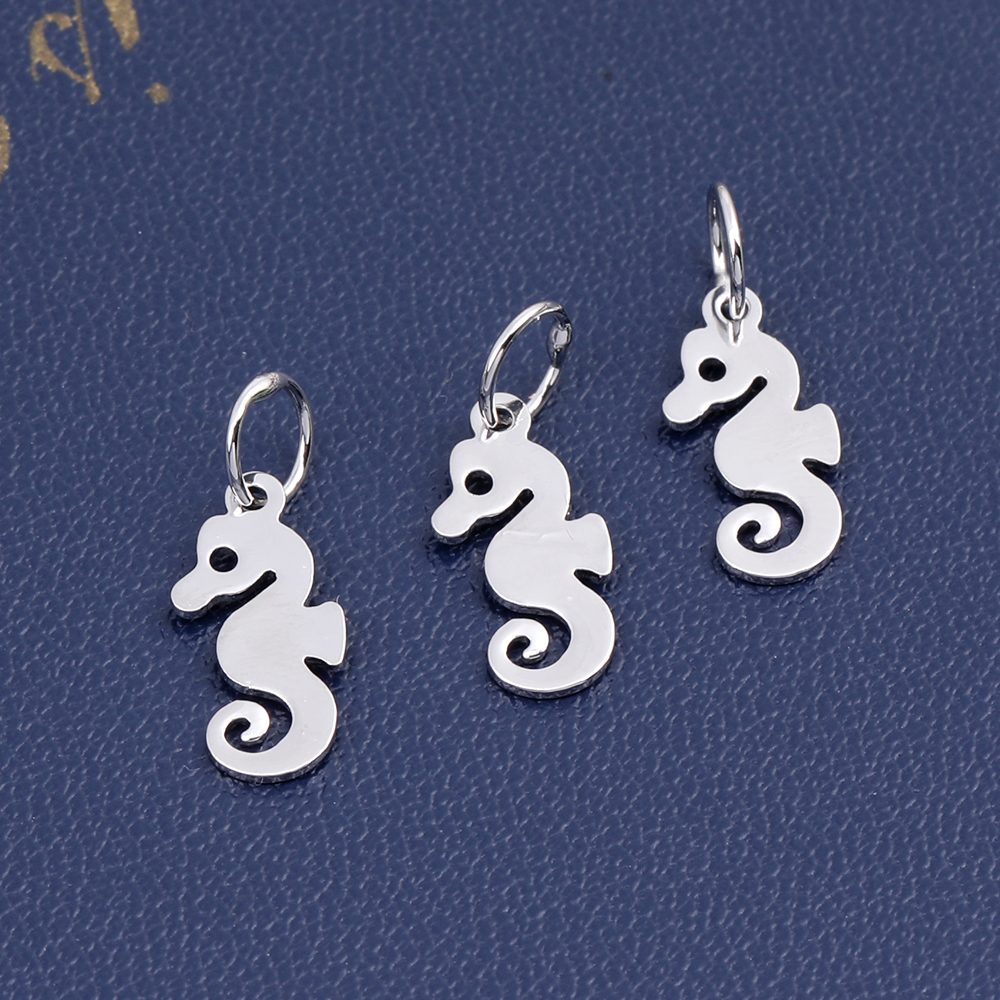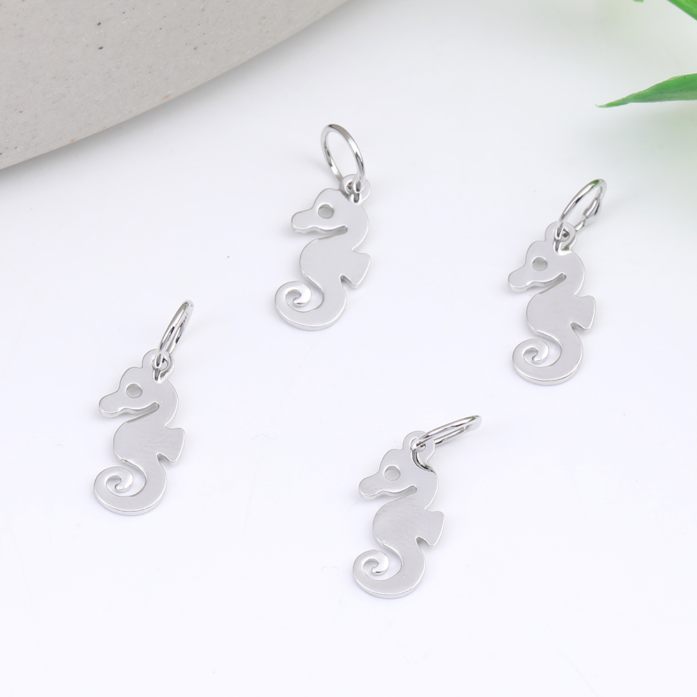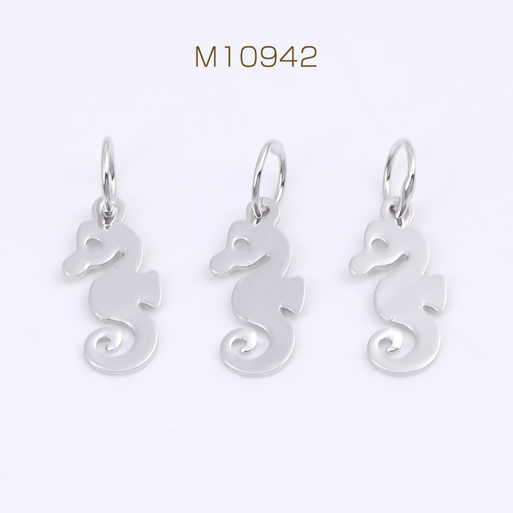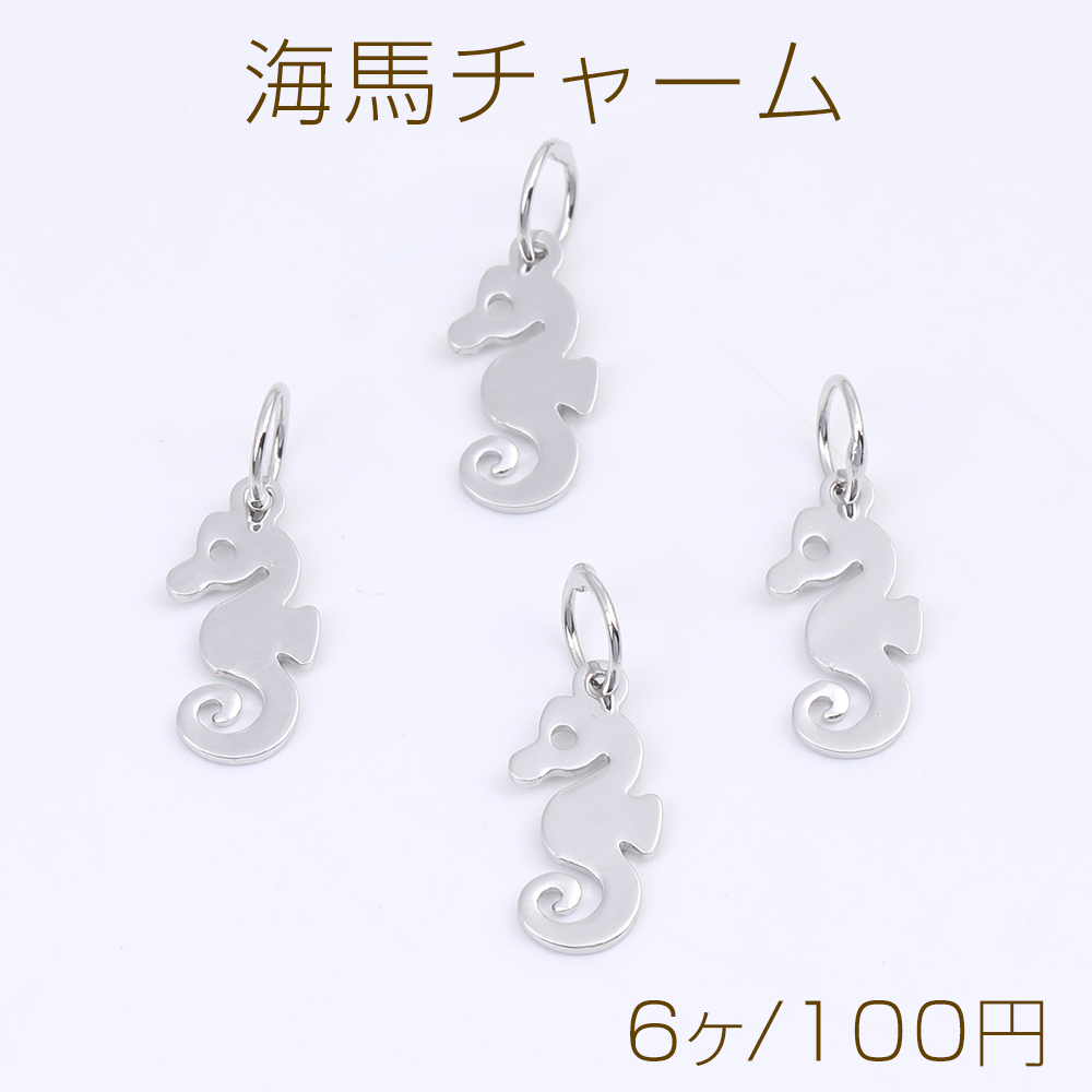 海馬チャーム メタルチャーム リングパーツ付き 6×12mm ロジウム(6ヶ)