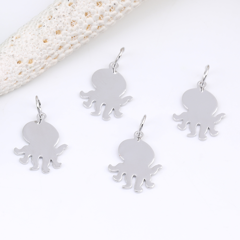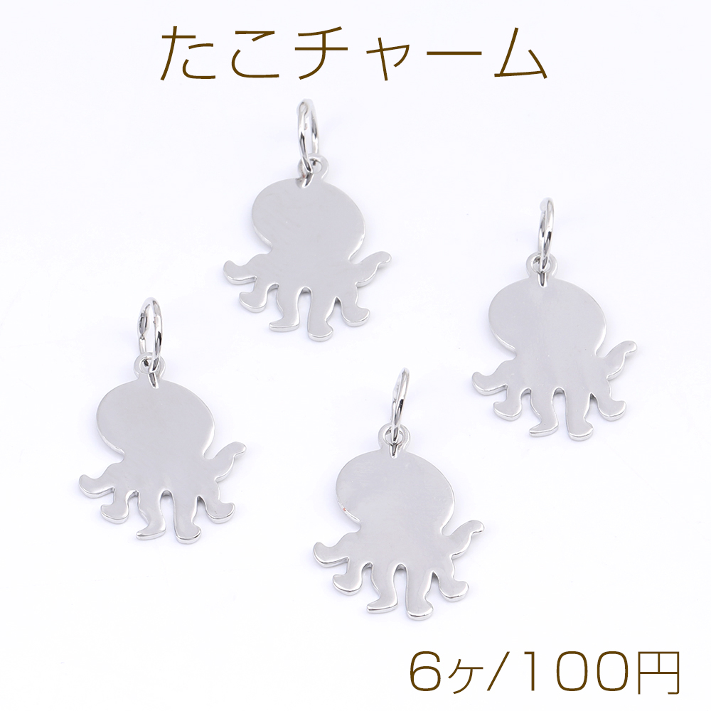 たこチャーム メタルチャーム リングパーツ付き 11×14mm ロジウム(6ヶ)