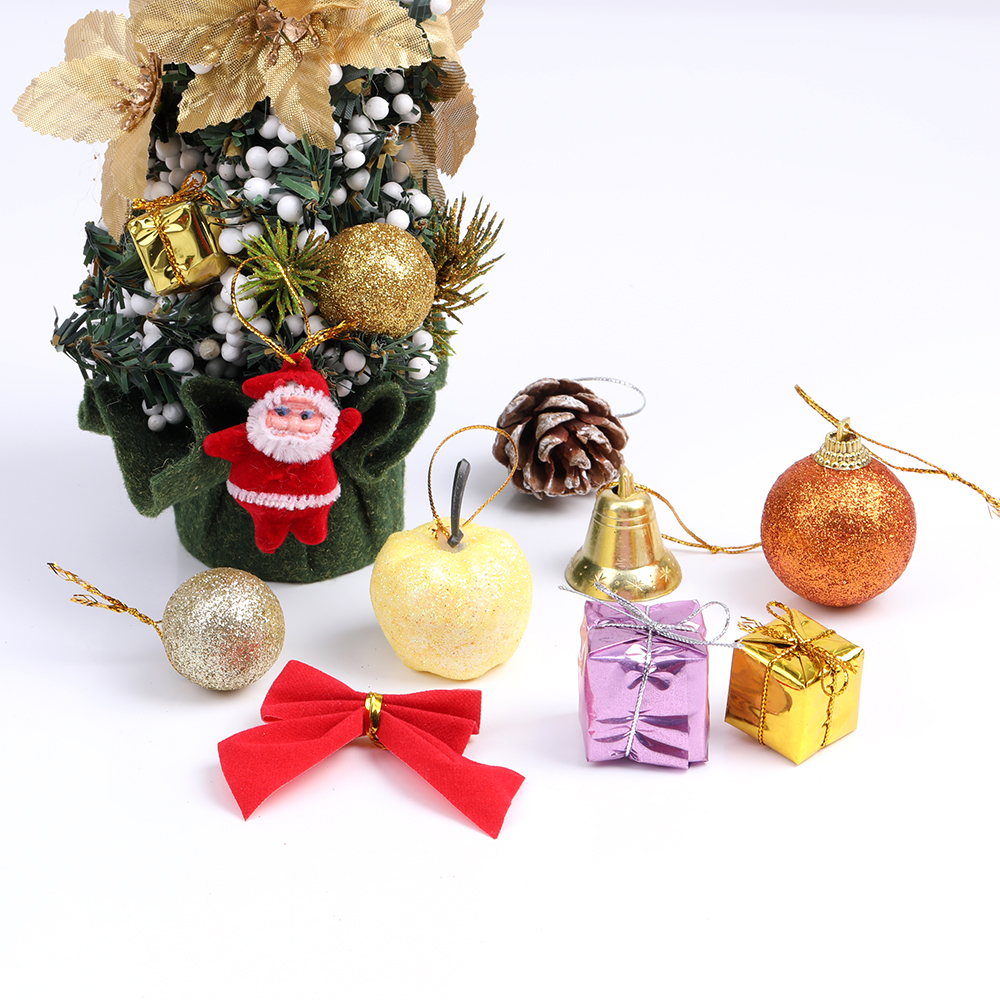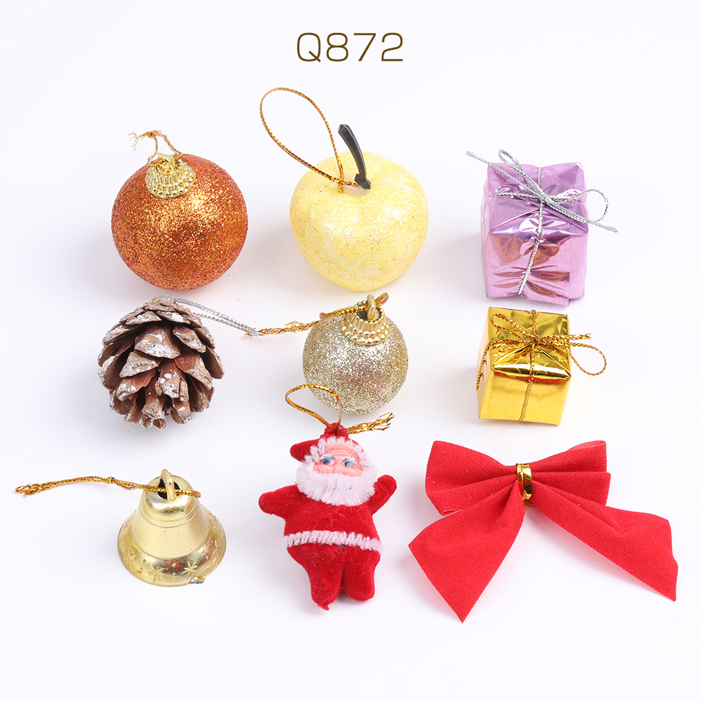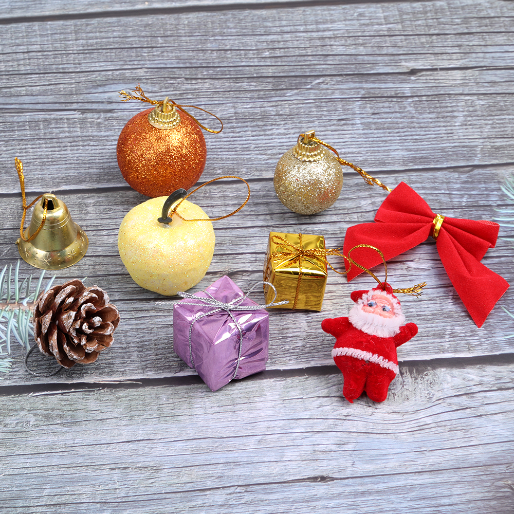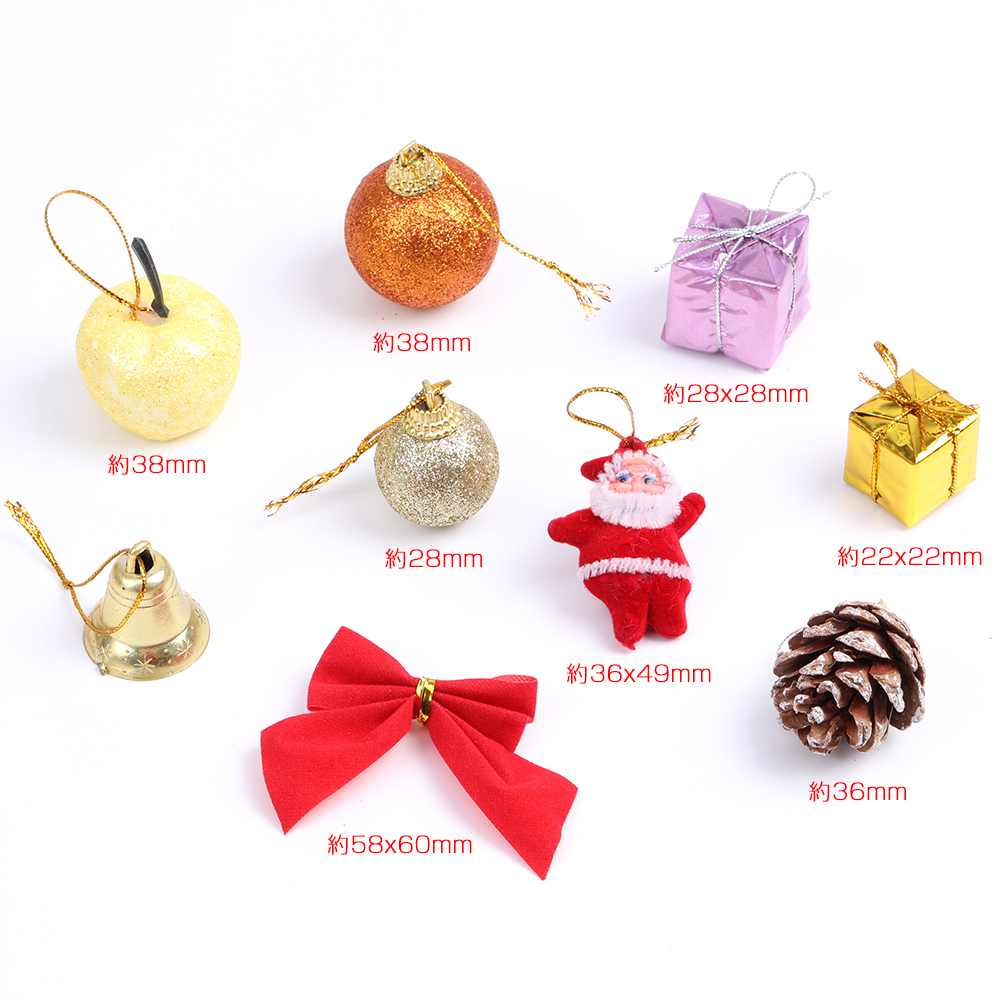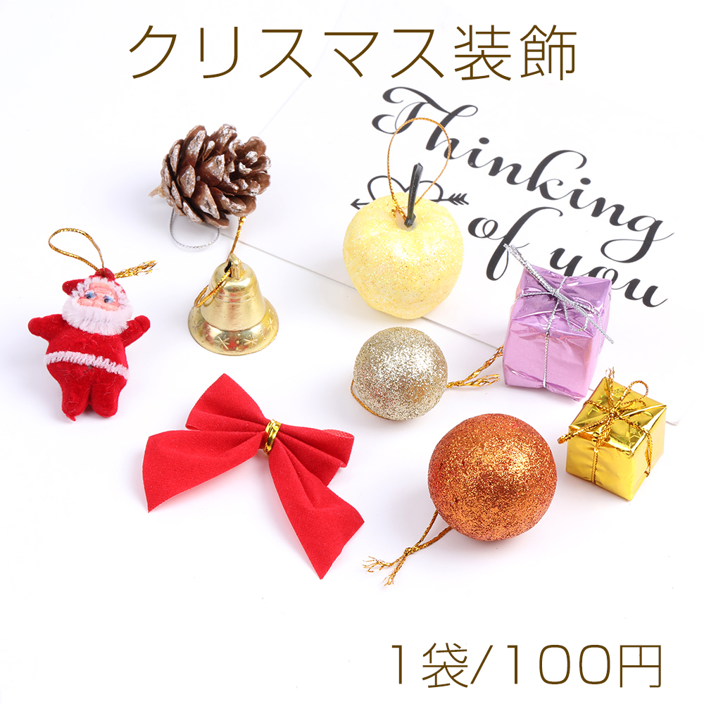 クリスマスオーナメント クリスマス装飾 飾り ミニサンタクロース クリスマスボール 松ぼっくり ラッピングボックス リボン りんご(1袋)