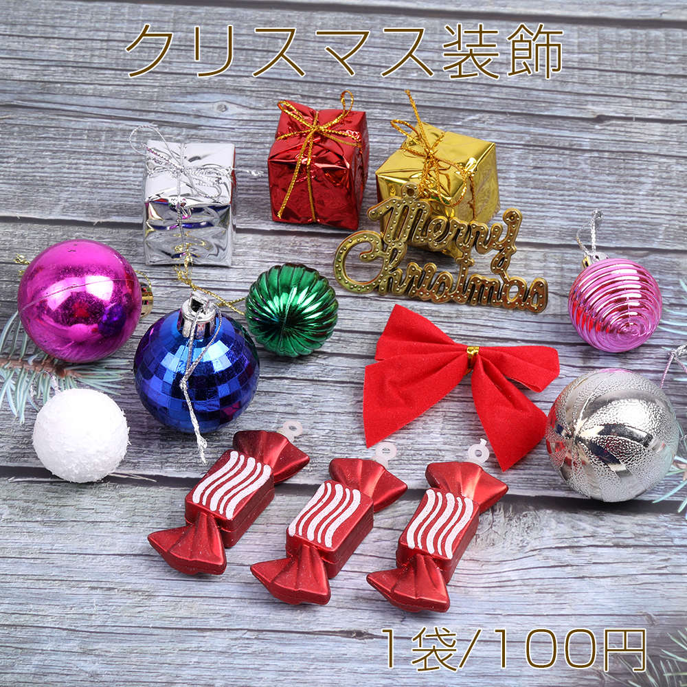 クリスマスオーナメント クリスマス装飾 飾り ミニサンタクロース クリスマスボール 松ぼっくり ラッピングボックス リボン りんご(1袋)