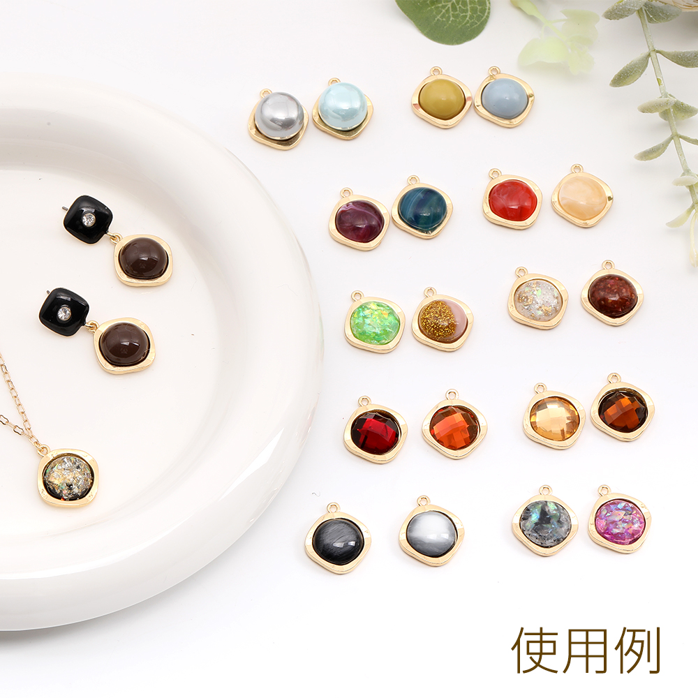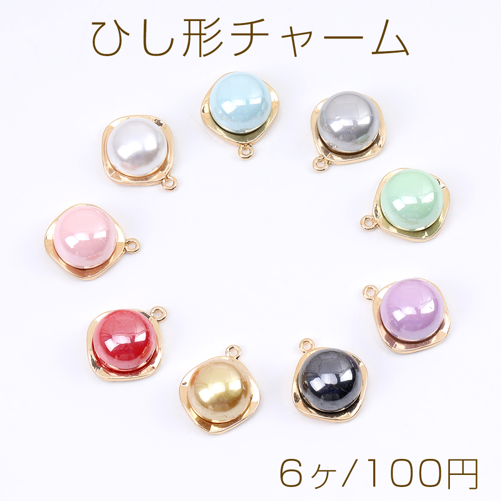 ひし形チャーム パールチャーム メタルチャーム ゴールド オーロラカラー 16×19mm(6ヶ)