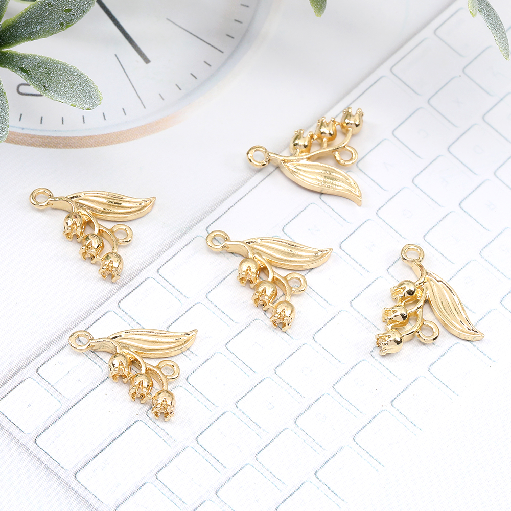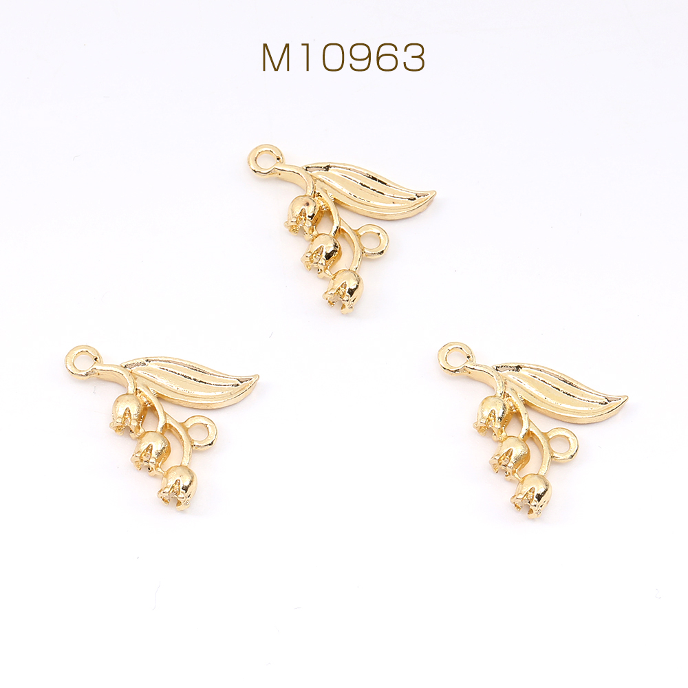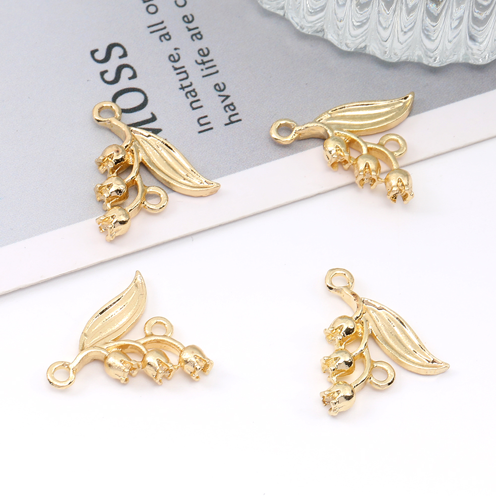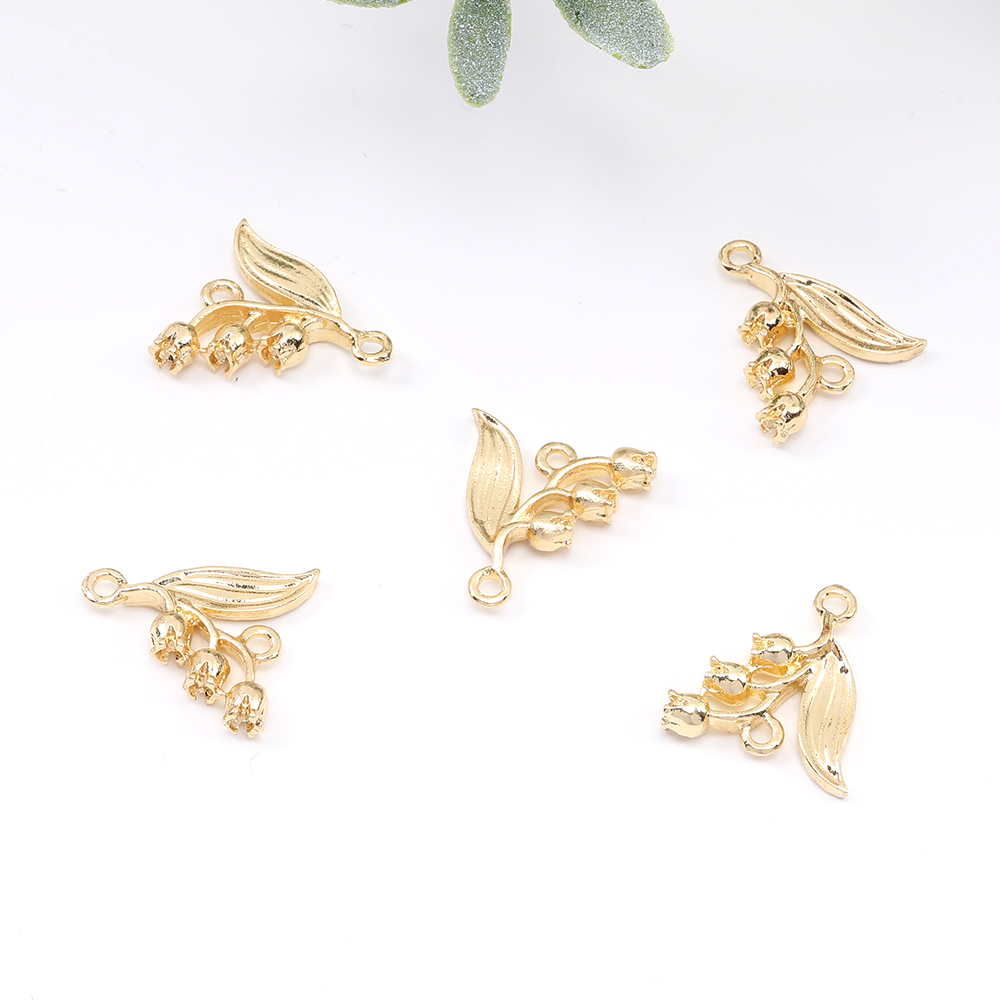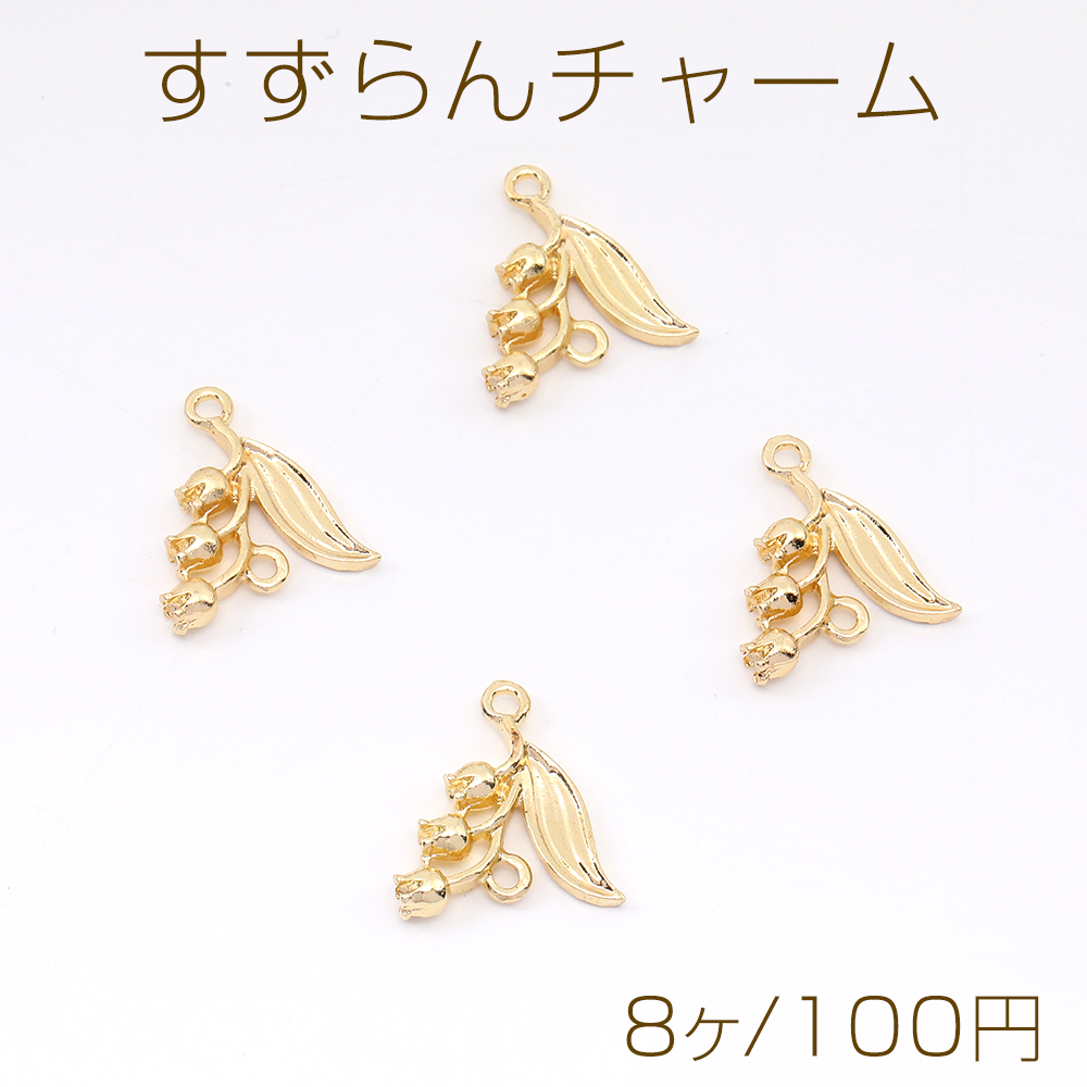 すずらんチャーム メタルチャーム コネクターチャーム 2カン付き 14×16mm ゴールド(8ヶ)