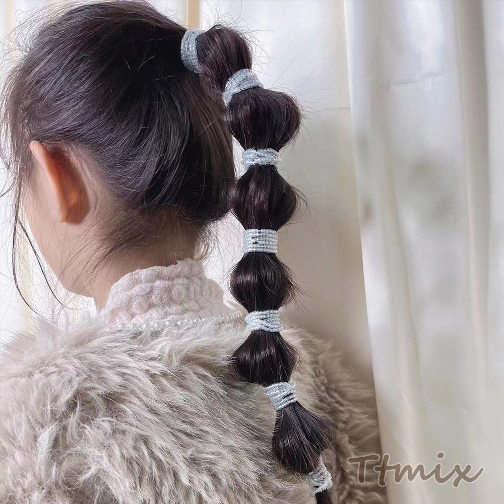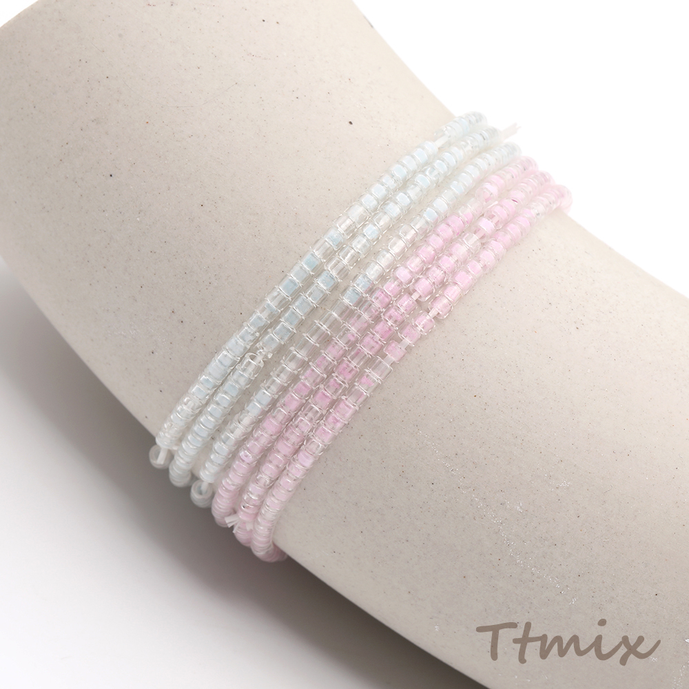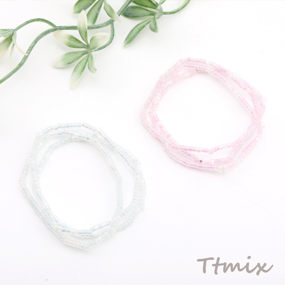 シードビーズ付きヘアゴム ピンク×ブルー(4ヶ)