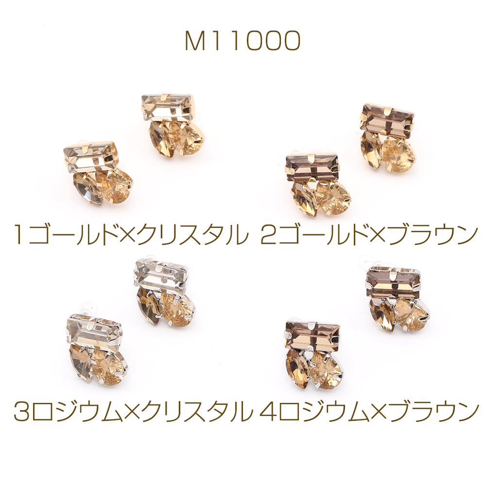 樹脂ノンホールピアス ラインストーン付き 14×15mm(2ヶ)