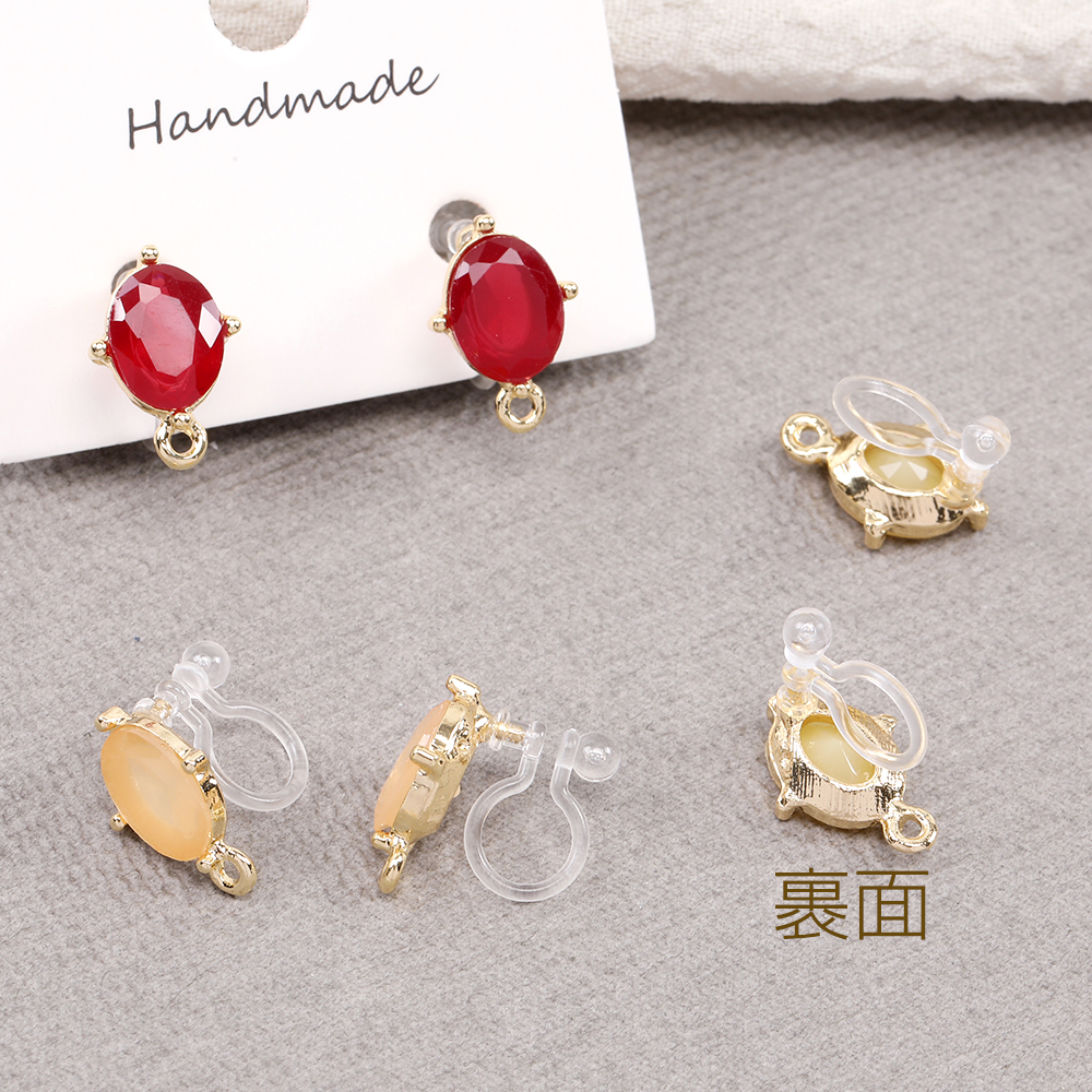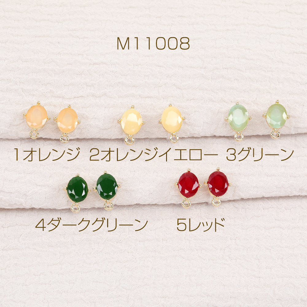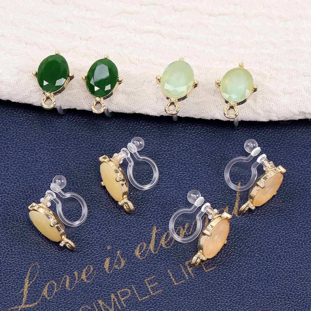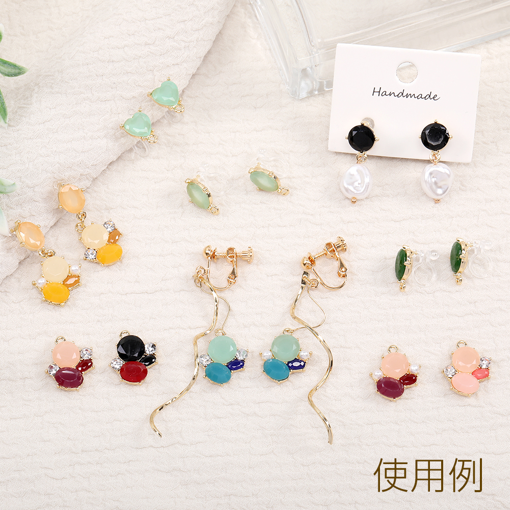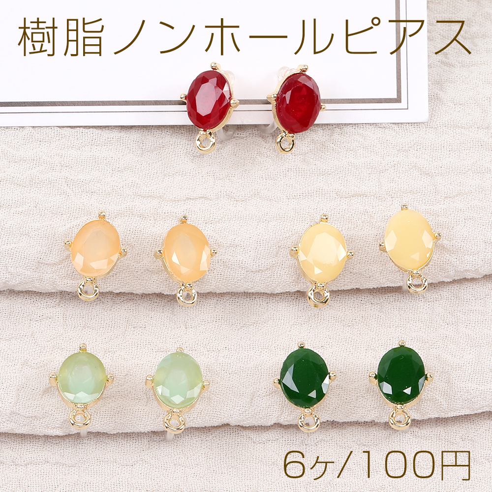 樹脂ノンホールピアス オーバル 樹脂ストーン付き カン付き 9.5×14mm ゴールド(6ヶ)