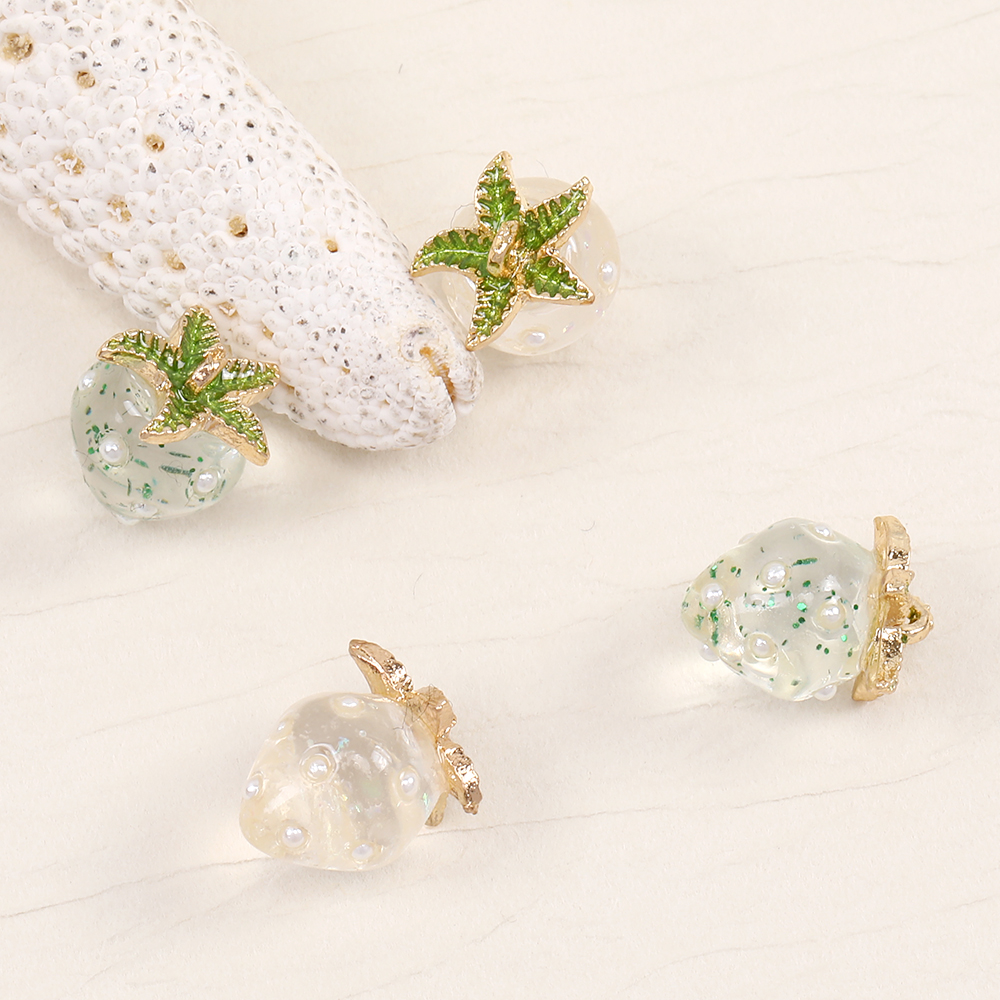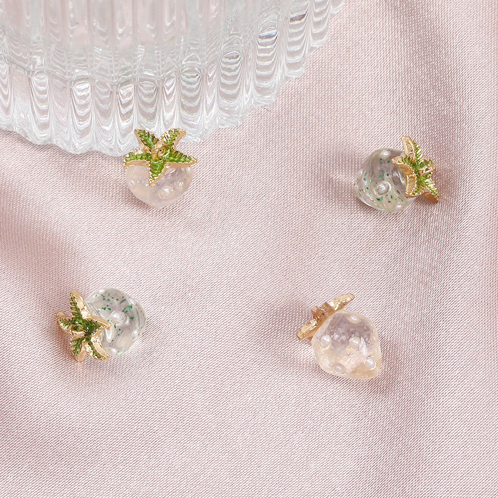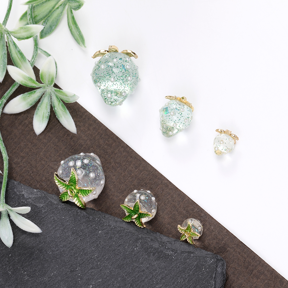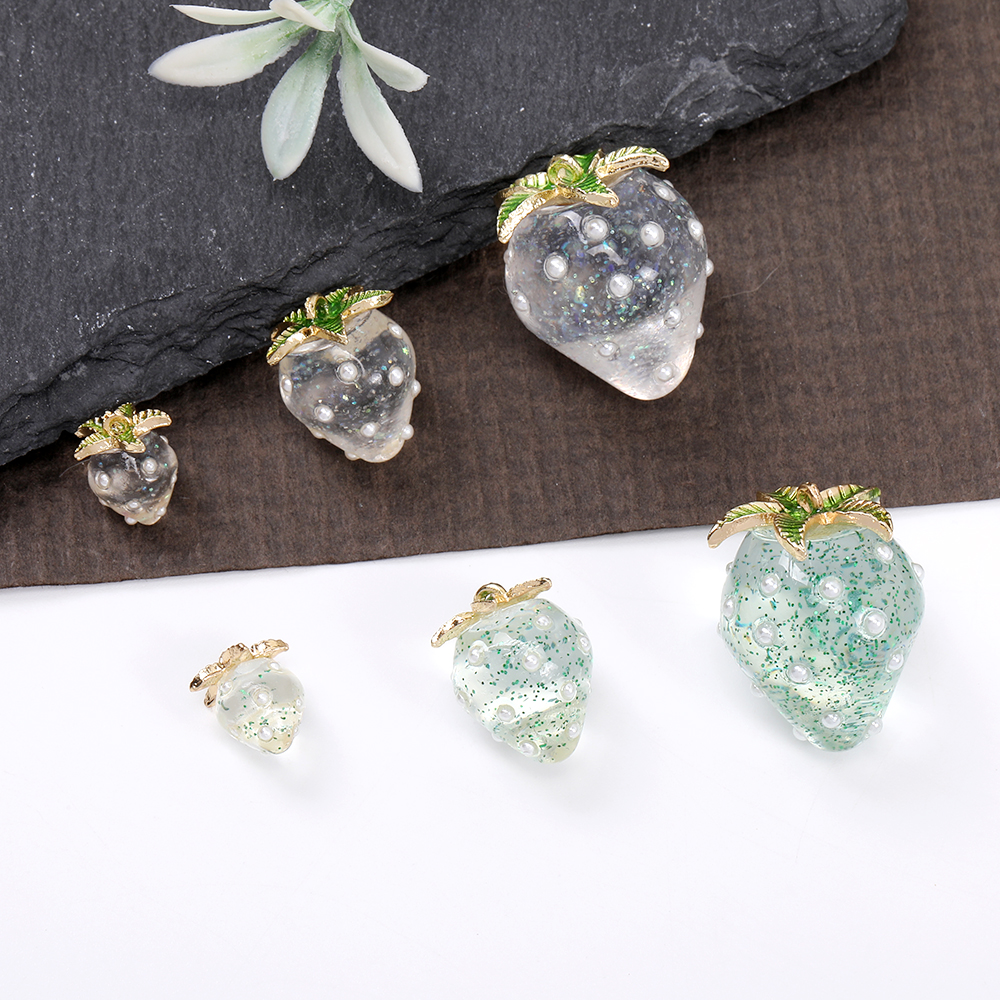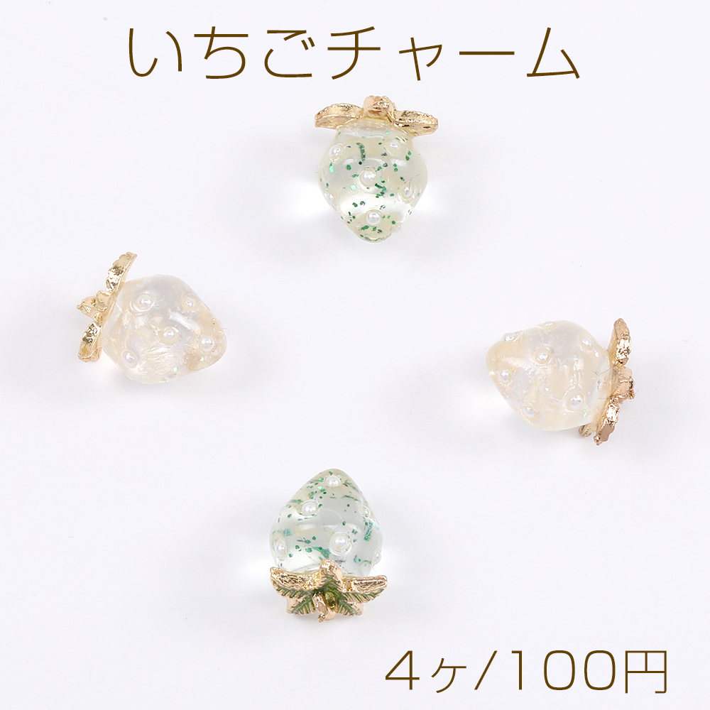 いちごチャーム 樹脂製イチゴチャーム かわいいフルーツチャーム 苺チャーム パール付き 9×11mm(4ヶ)