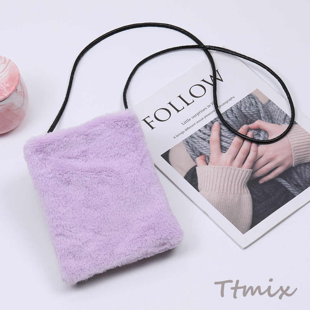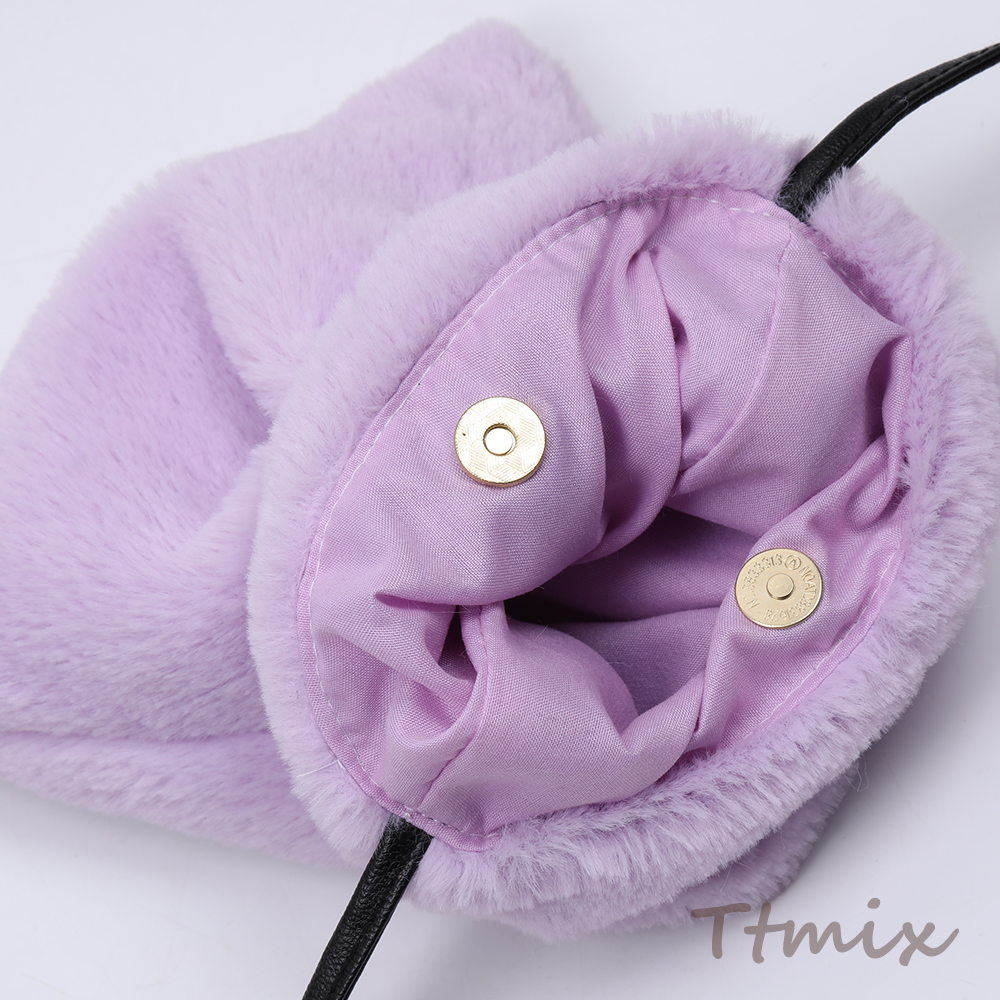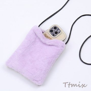 スマホポーチ スマホポシェット フェイクファーバッグ スマホショルダーバッグ ミニショルダーバッグ パープル(1ヶ)