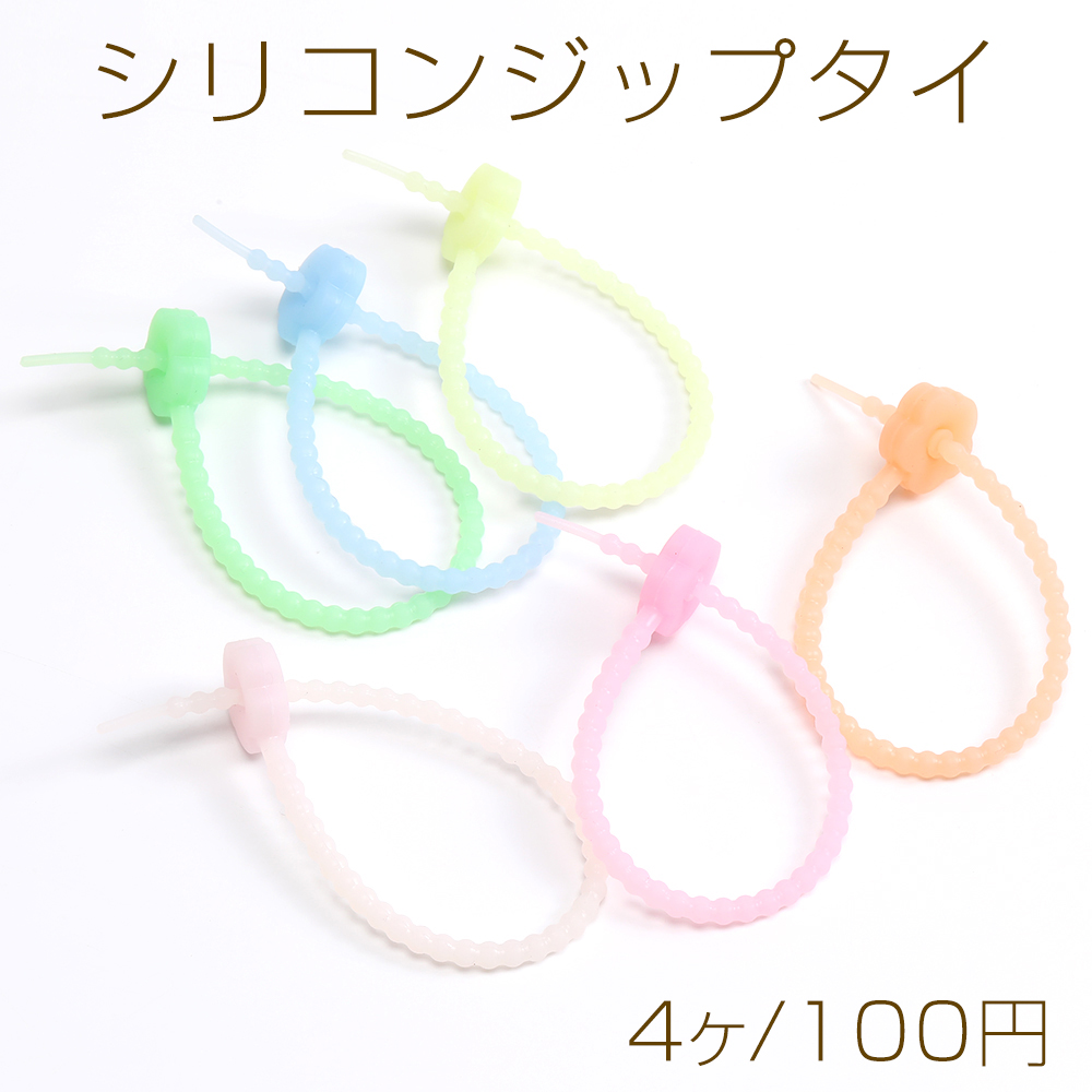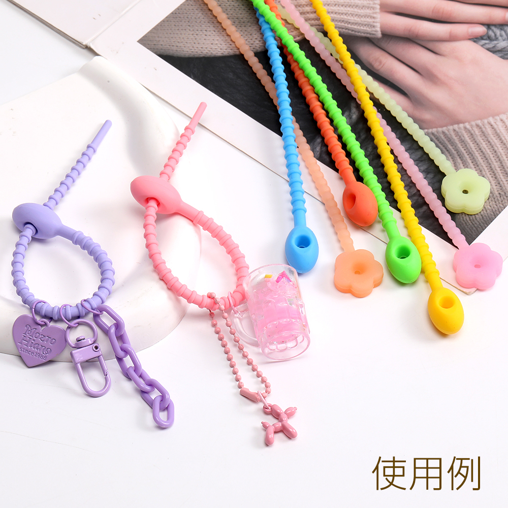 シリコンジップタイ 弾性ストラップ キーチェーンタイ 21cm(4ヶ)