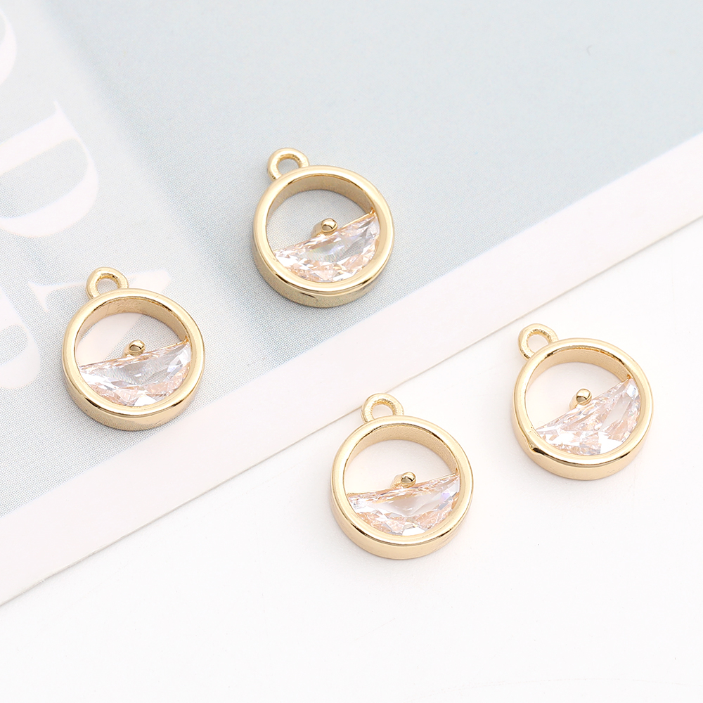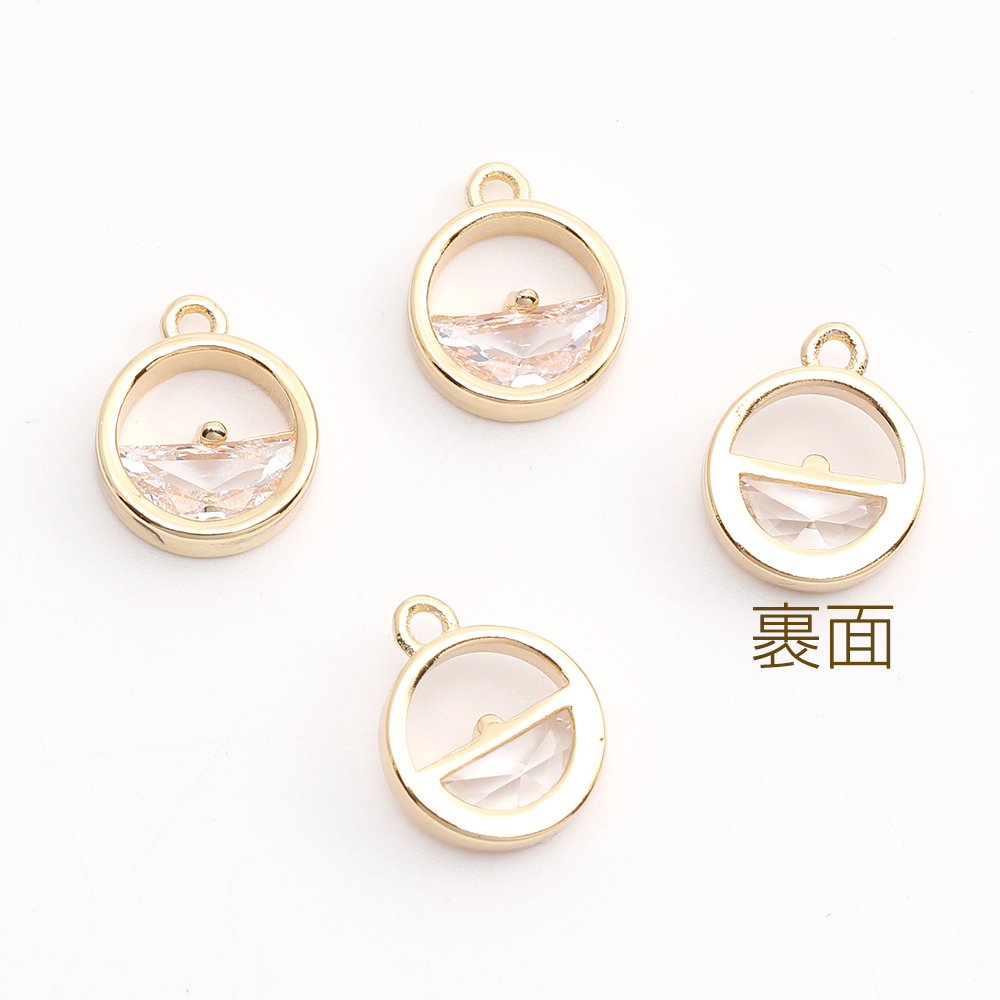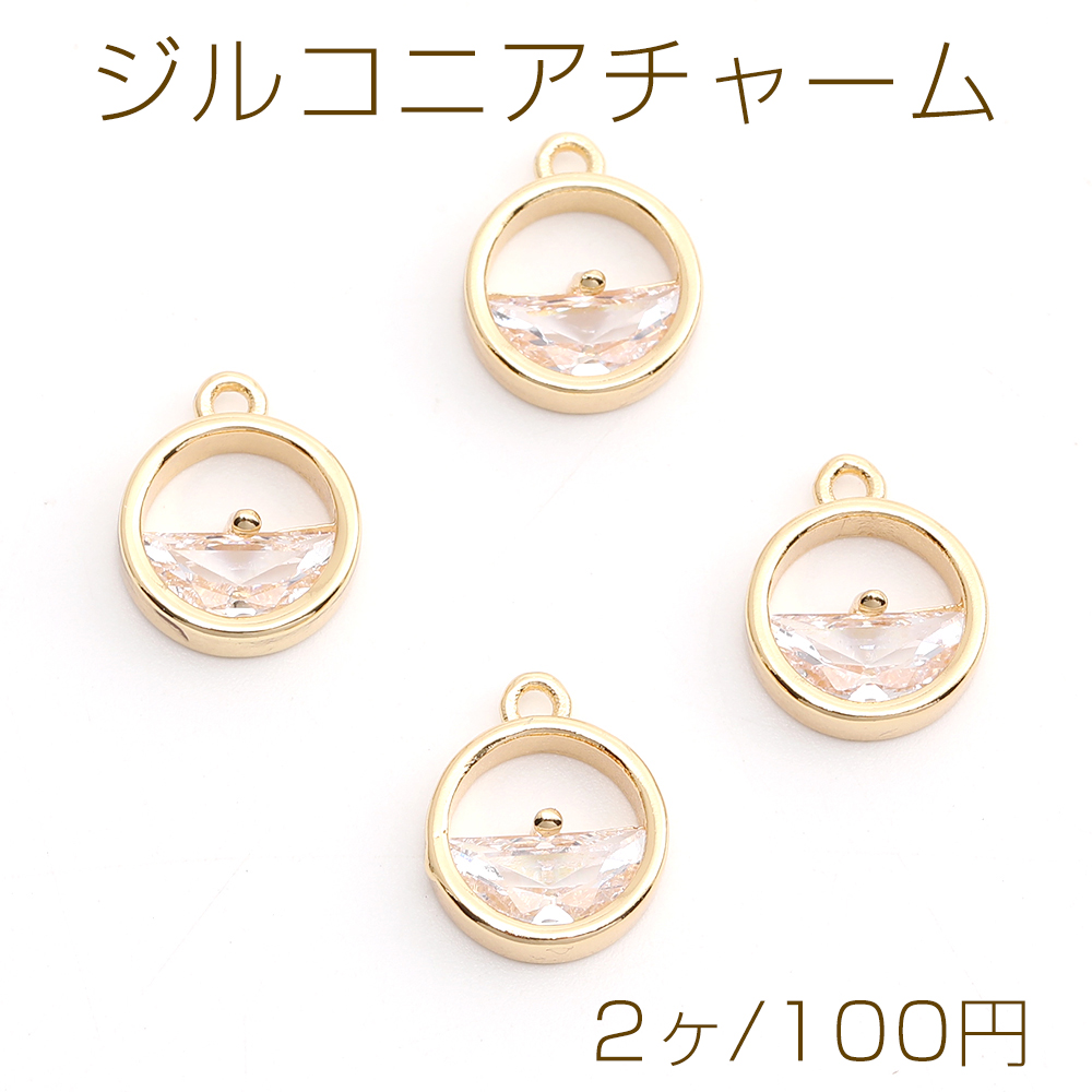 高品質ジルコニアチャーム 丸型 9.5×12mm ゴールド(2ヶ)