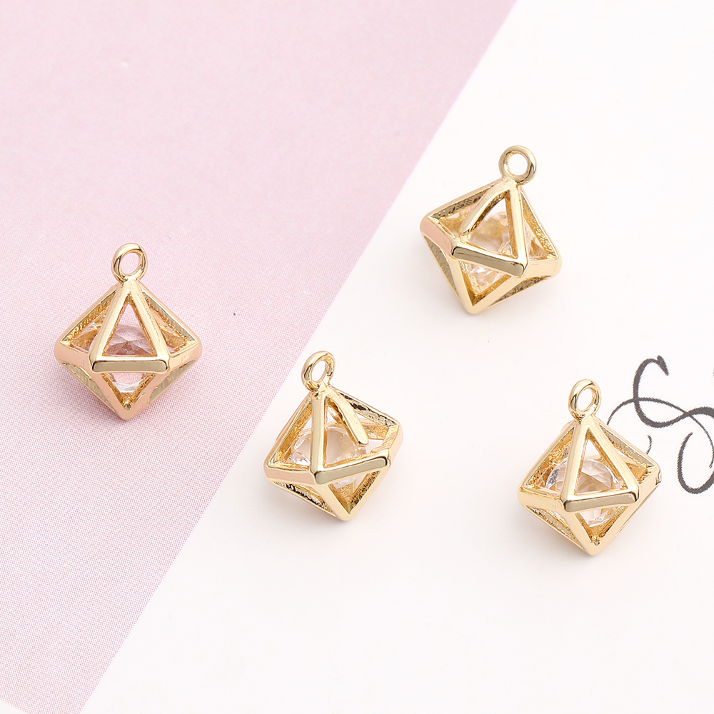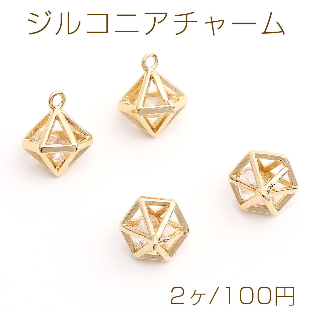 高品質ジルコニアチャーム 透かしボール 10×12mm ゴールド(2ヶ)