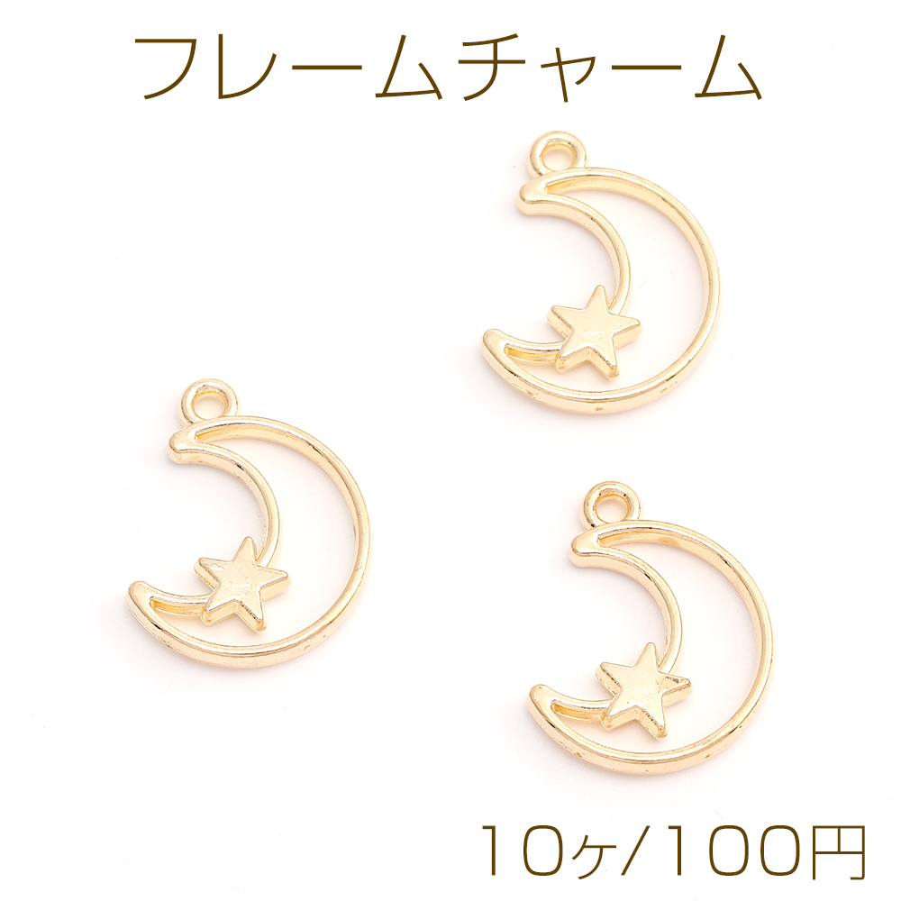 レジンフレームチャーム 星と月 14×20mm ゴールド(10ヶ)