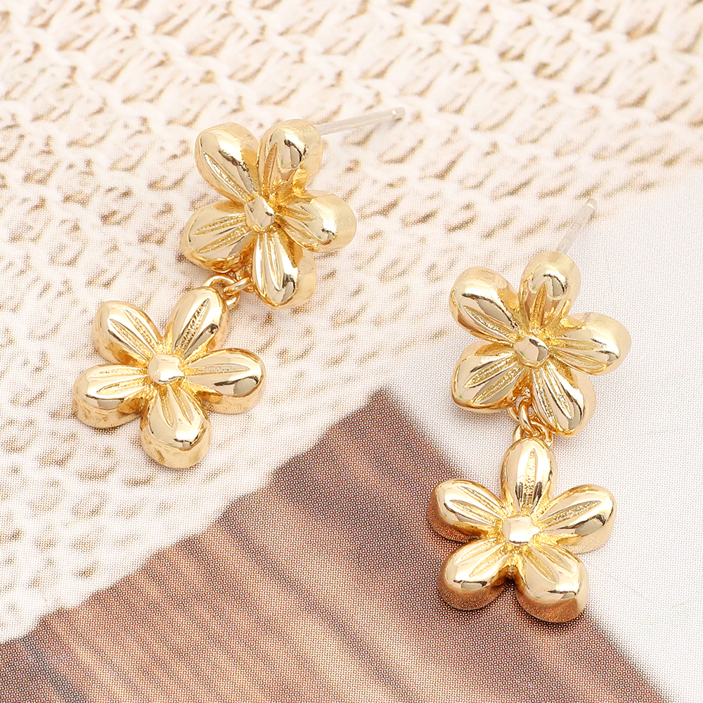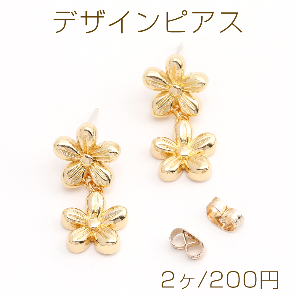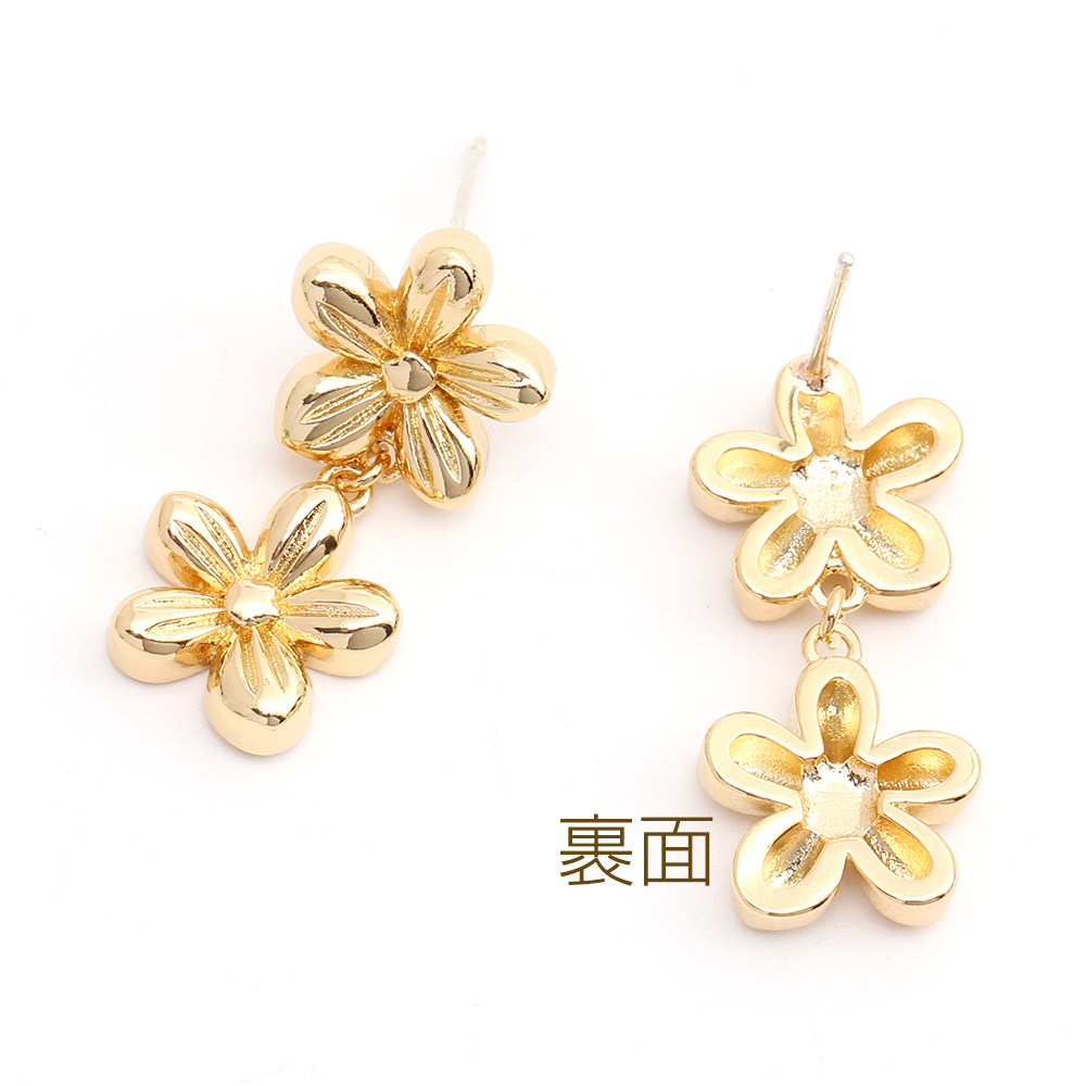 デザインピアス フラワー 11×24mm ゴールド(2ヶ)