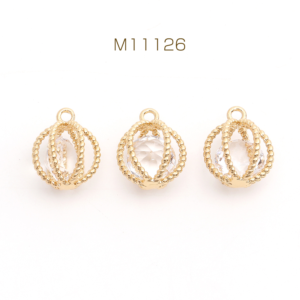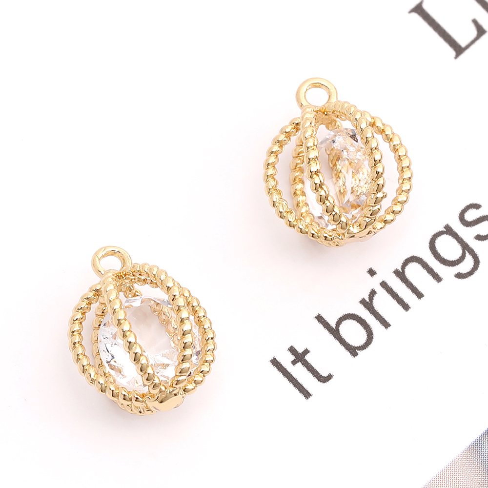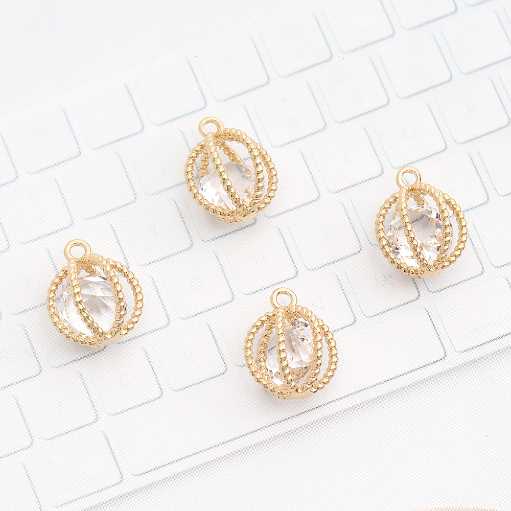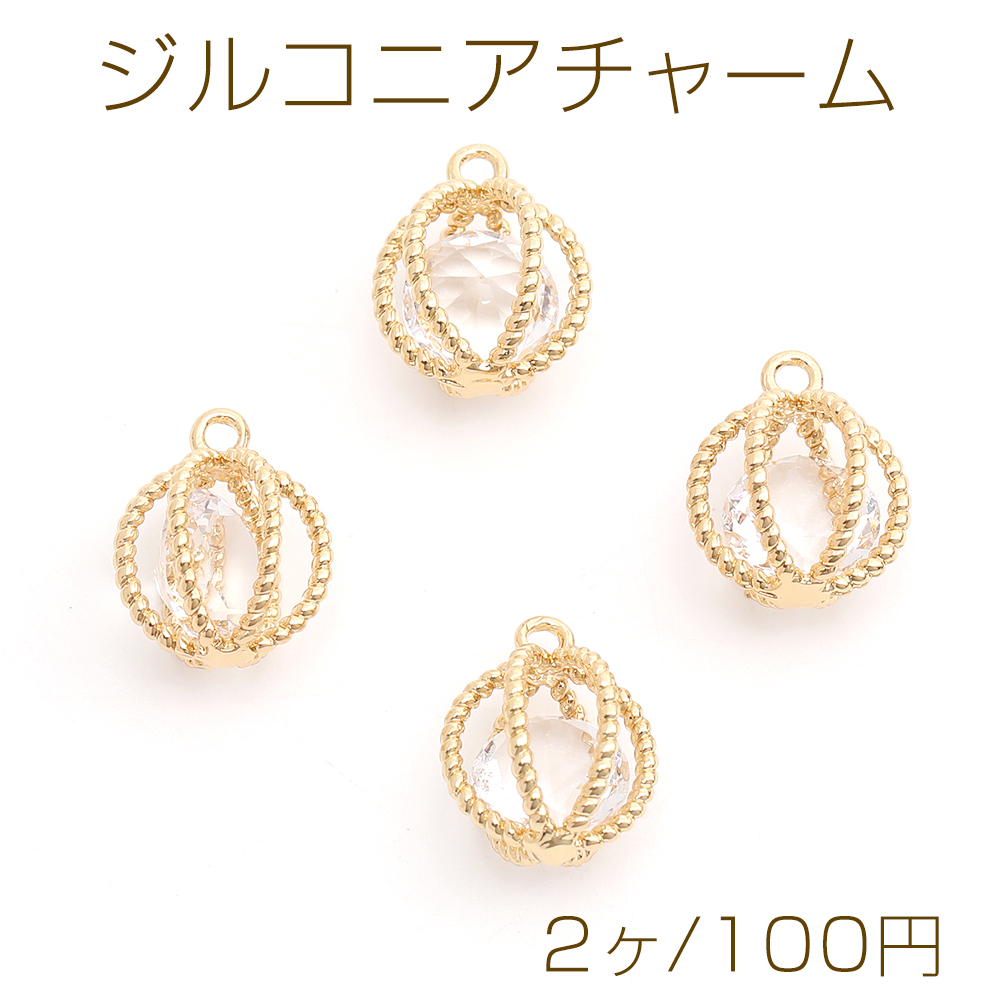 高品質ジルコニアチャーム 透かしボール 8.5×12mm ゴールド(2ヶ)