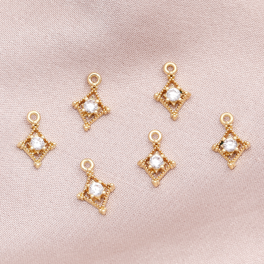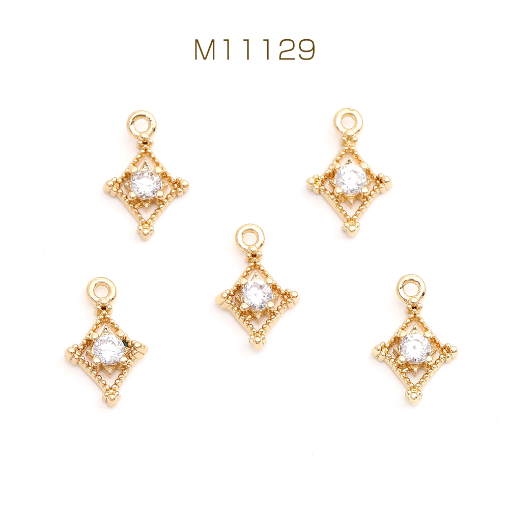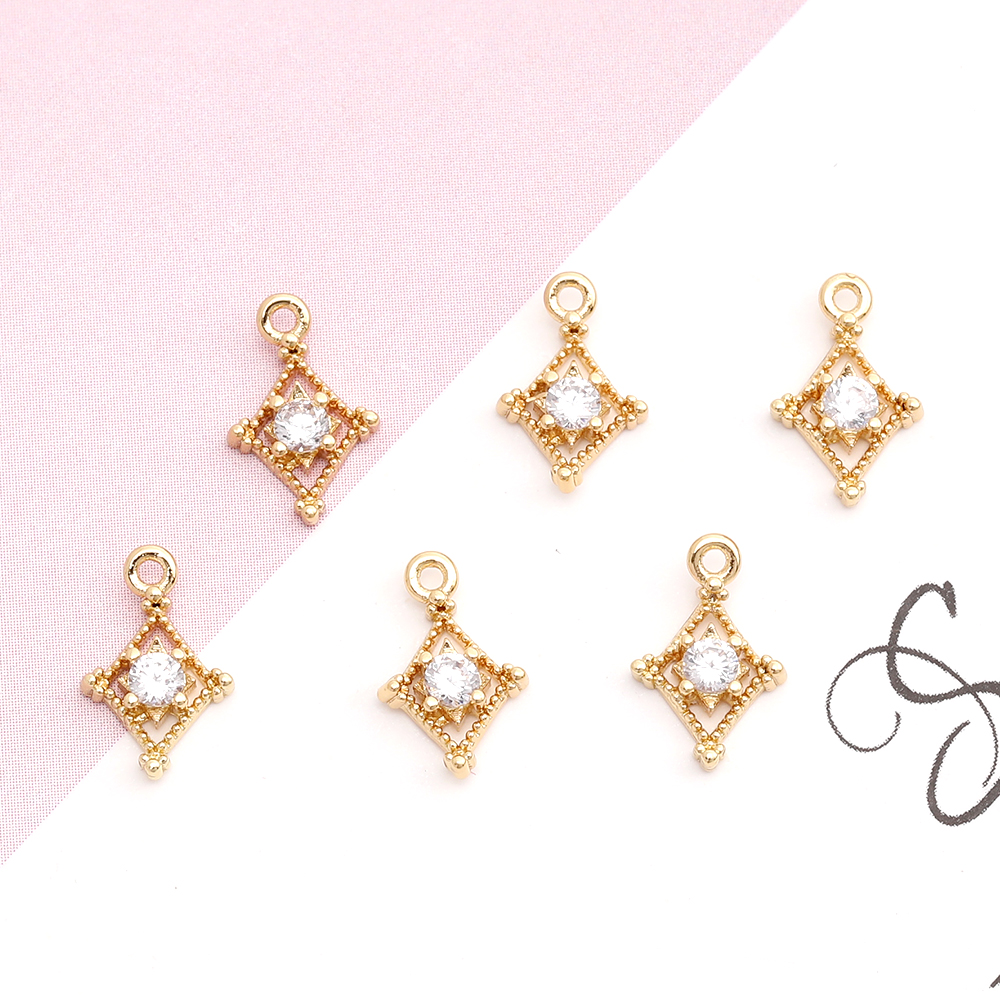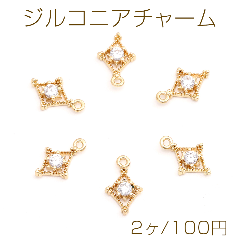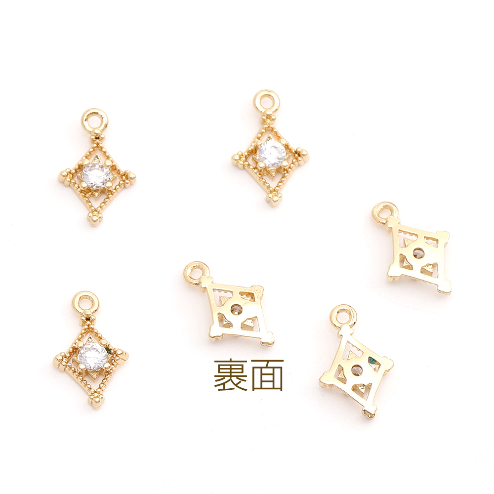 高品質ジルコニアチャーム ひし形 6×10mm ゴールド(2ヶ)
