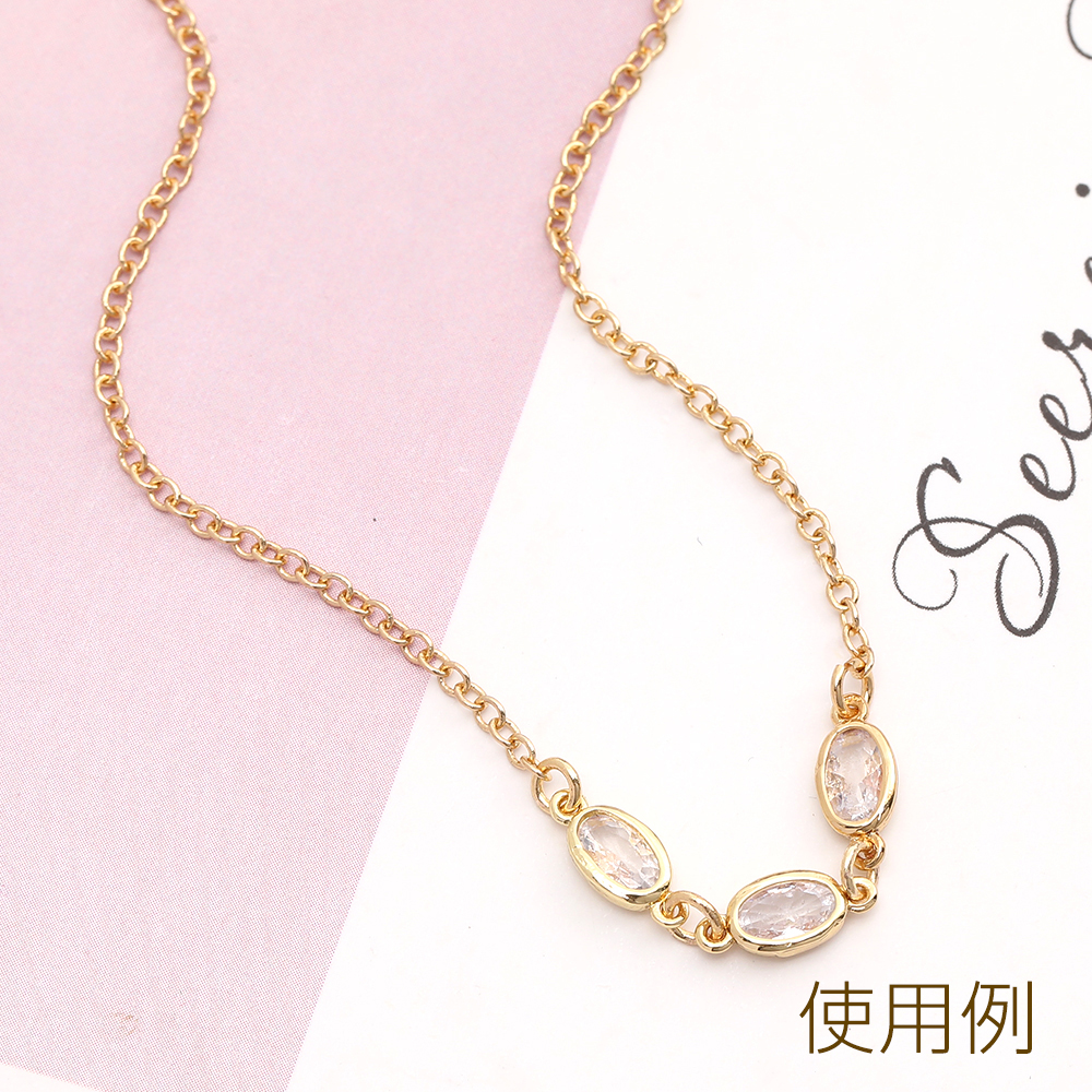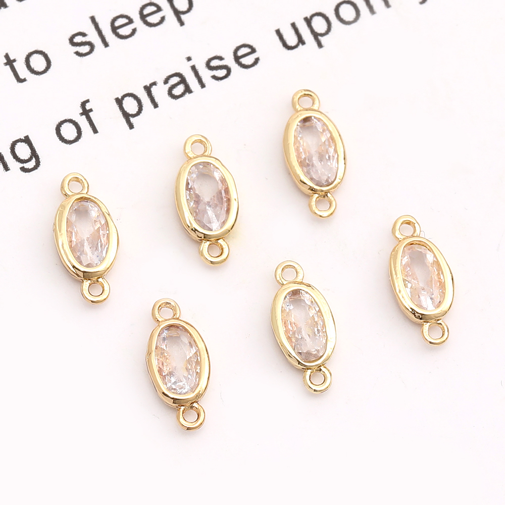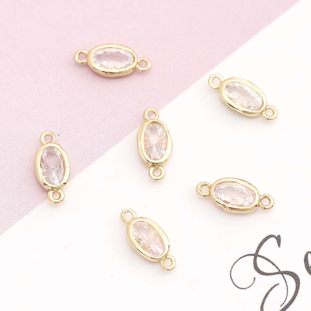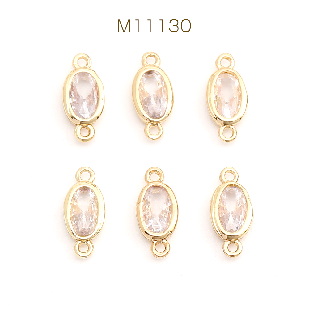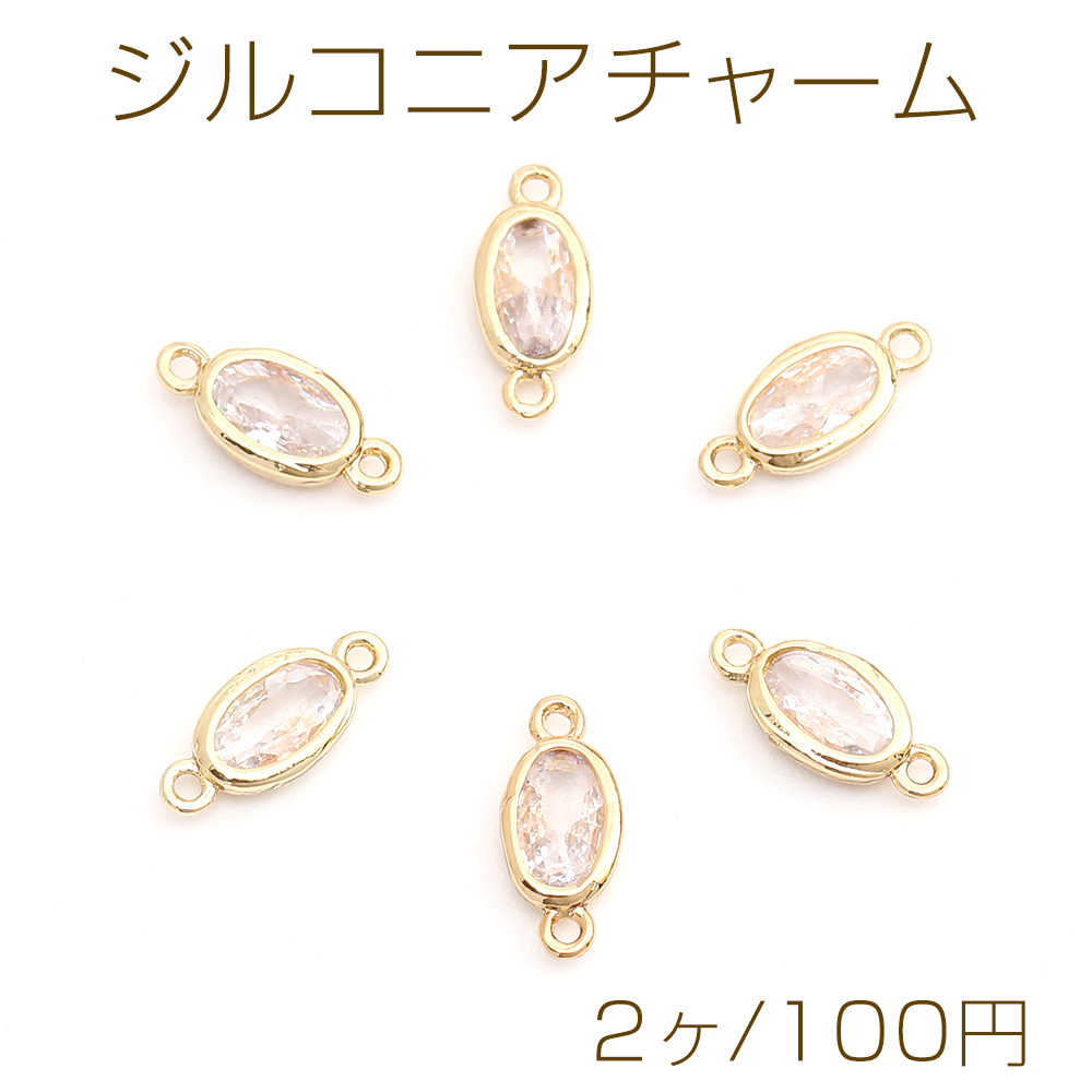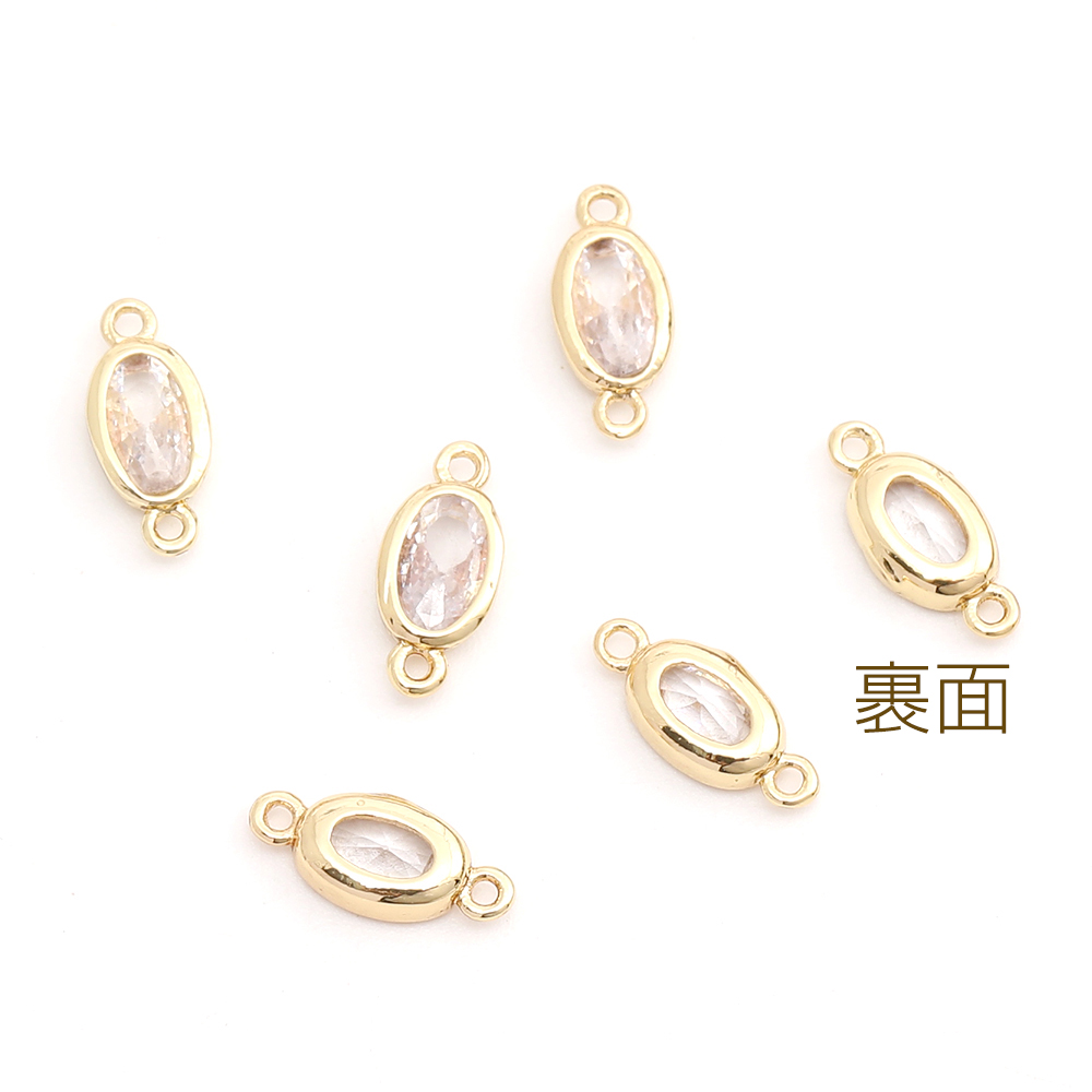 高品質ジルコニアチャーム コネクターチャーム オーバル 2カン付き 3.8×9mm ゴールド(2ヶ)