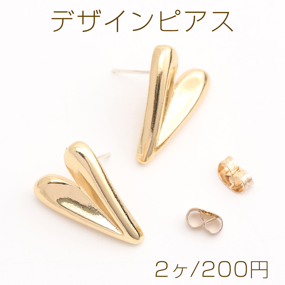 デザインピアス ハート型 14×20mm ゴールド(2ヶ)