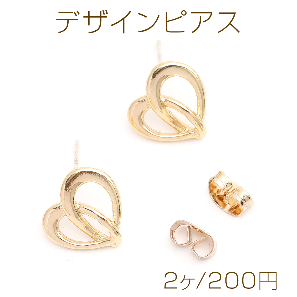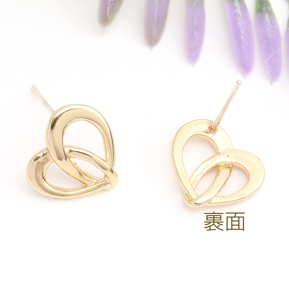 デザインピアス ハート型 11×12mm ゴールド(2ヶ)