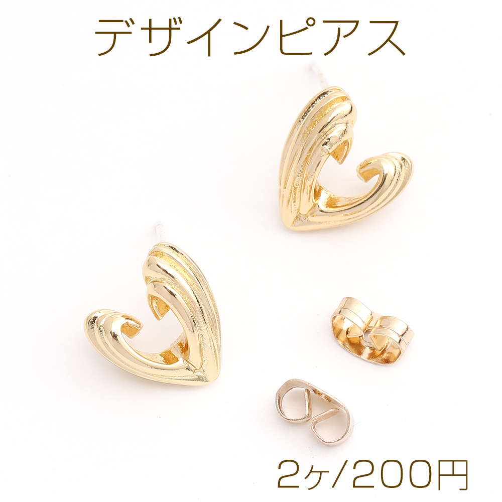デザインピアス ハート型 11×10.5mm ゴールド(2ヶ)