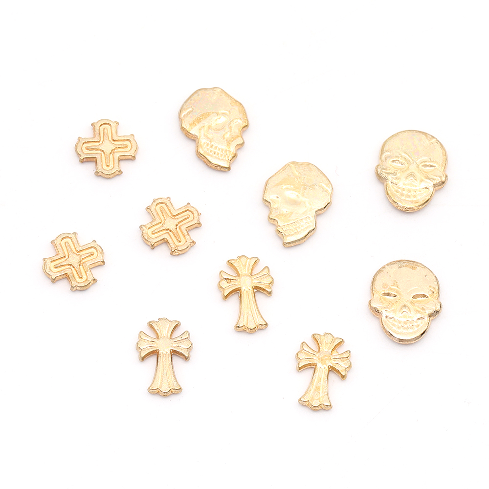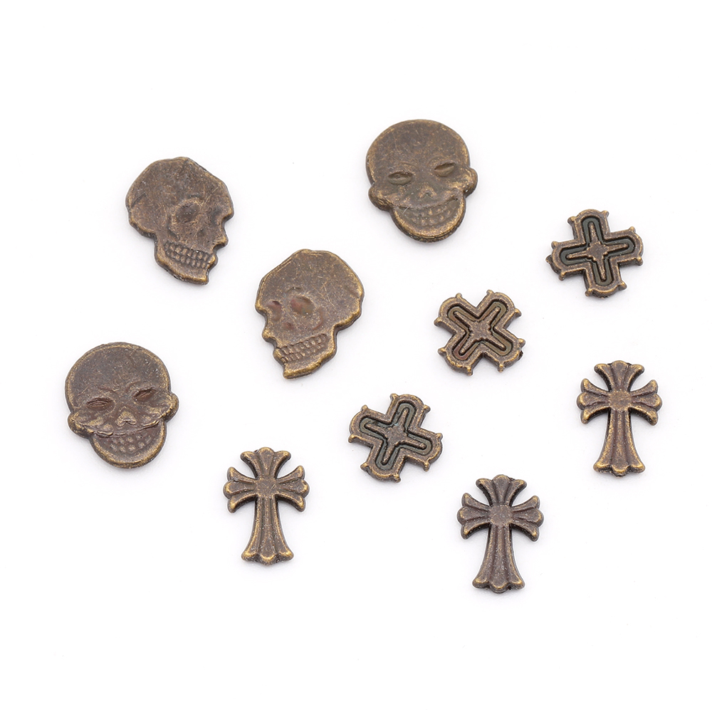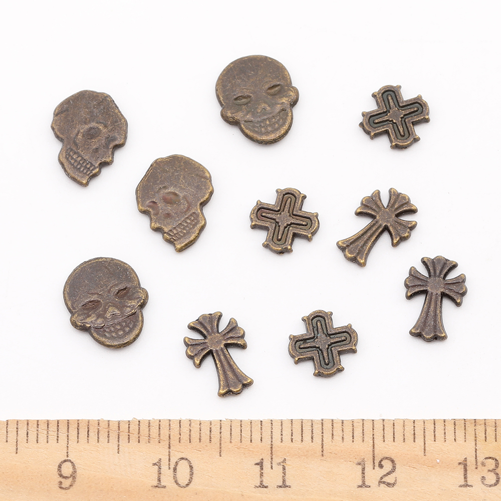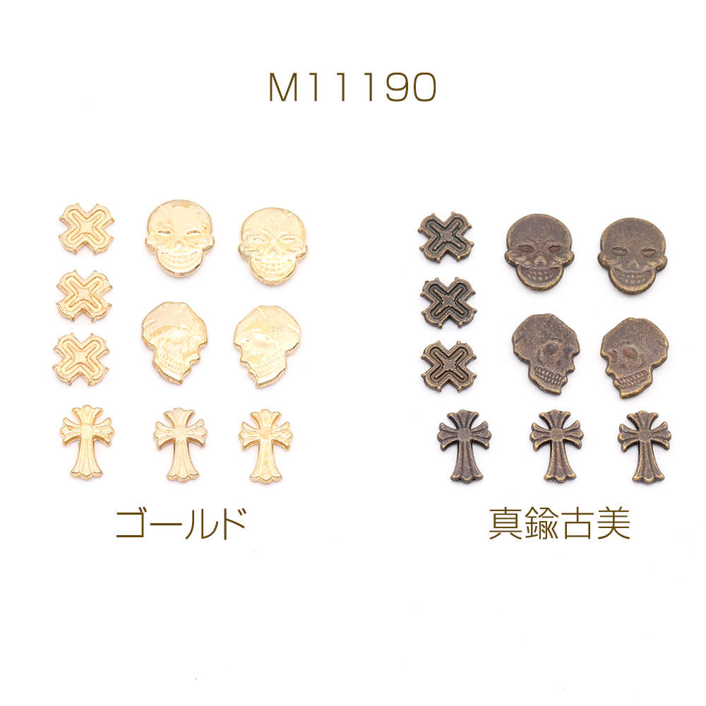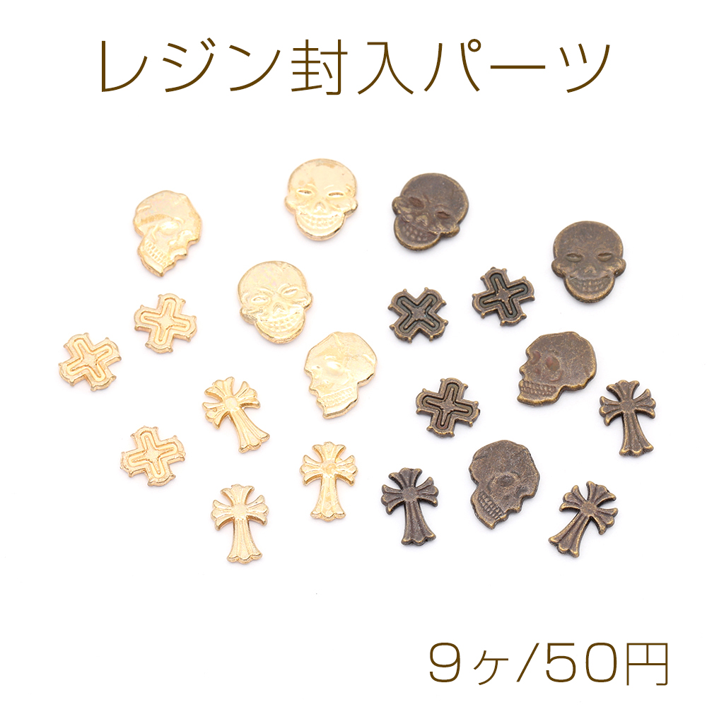 レジン封入パーツ メタル貼り付けパーツ スカル&十字架ミックス(9ヶ)