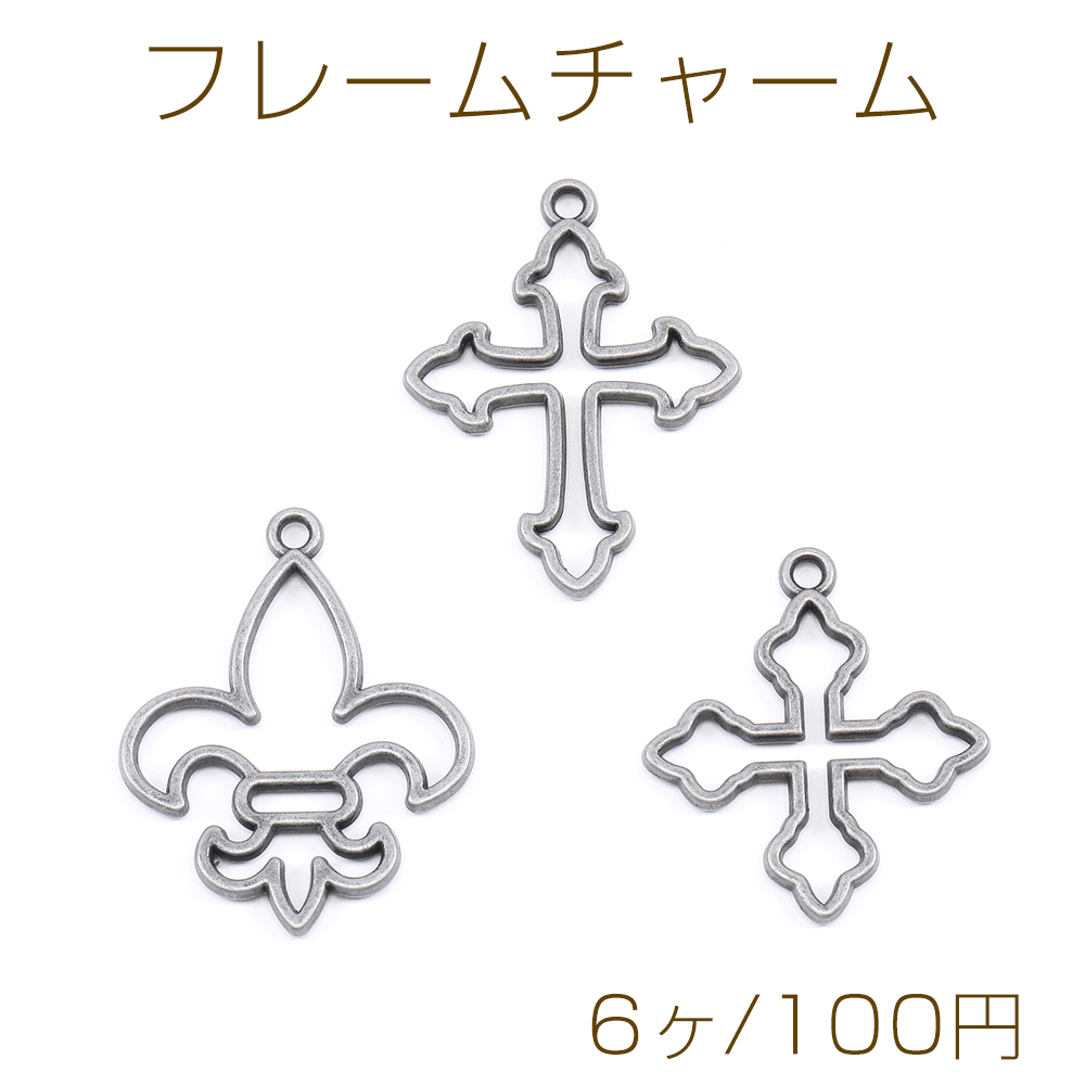 レジンフレームチャーム アンカー 十字架 銀古美