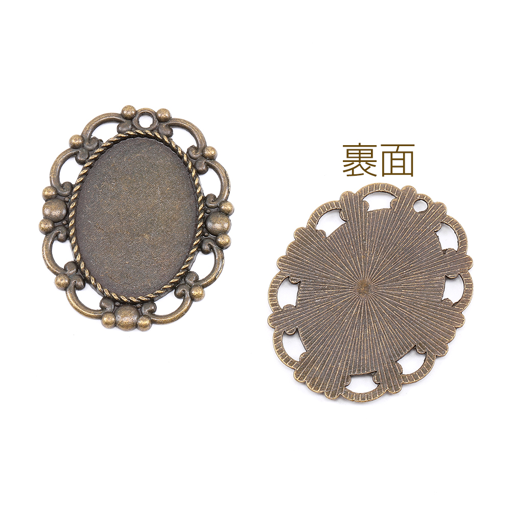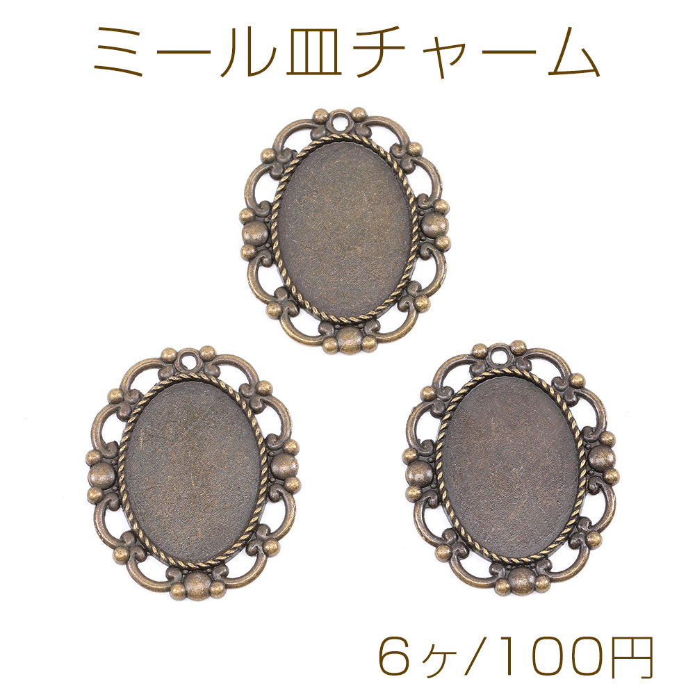 ミール皿チャーム オーバル カン付き 32×39mm 真鍮古美(6ヶ)