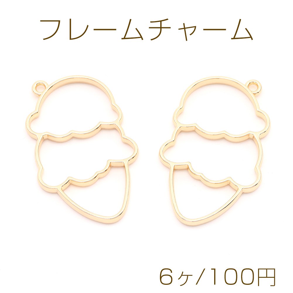 レジンフレームチャーム アイスクリーム 32×53mm ゴールド(6ヶ)