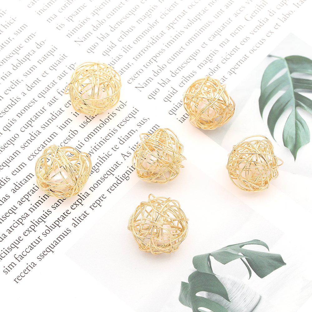 ワイヤーチャーム ボール パール付き 19mm ゴールド(8ヶ)