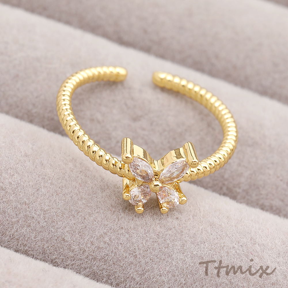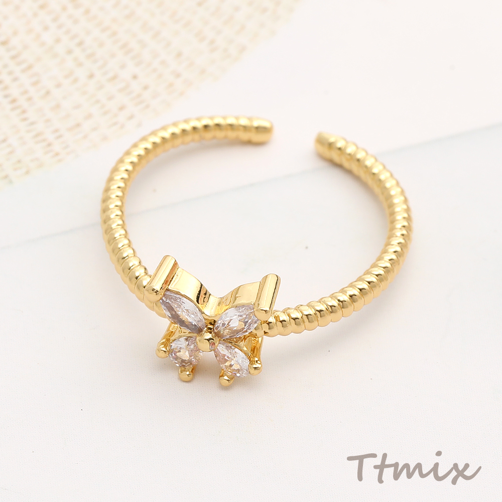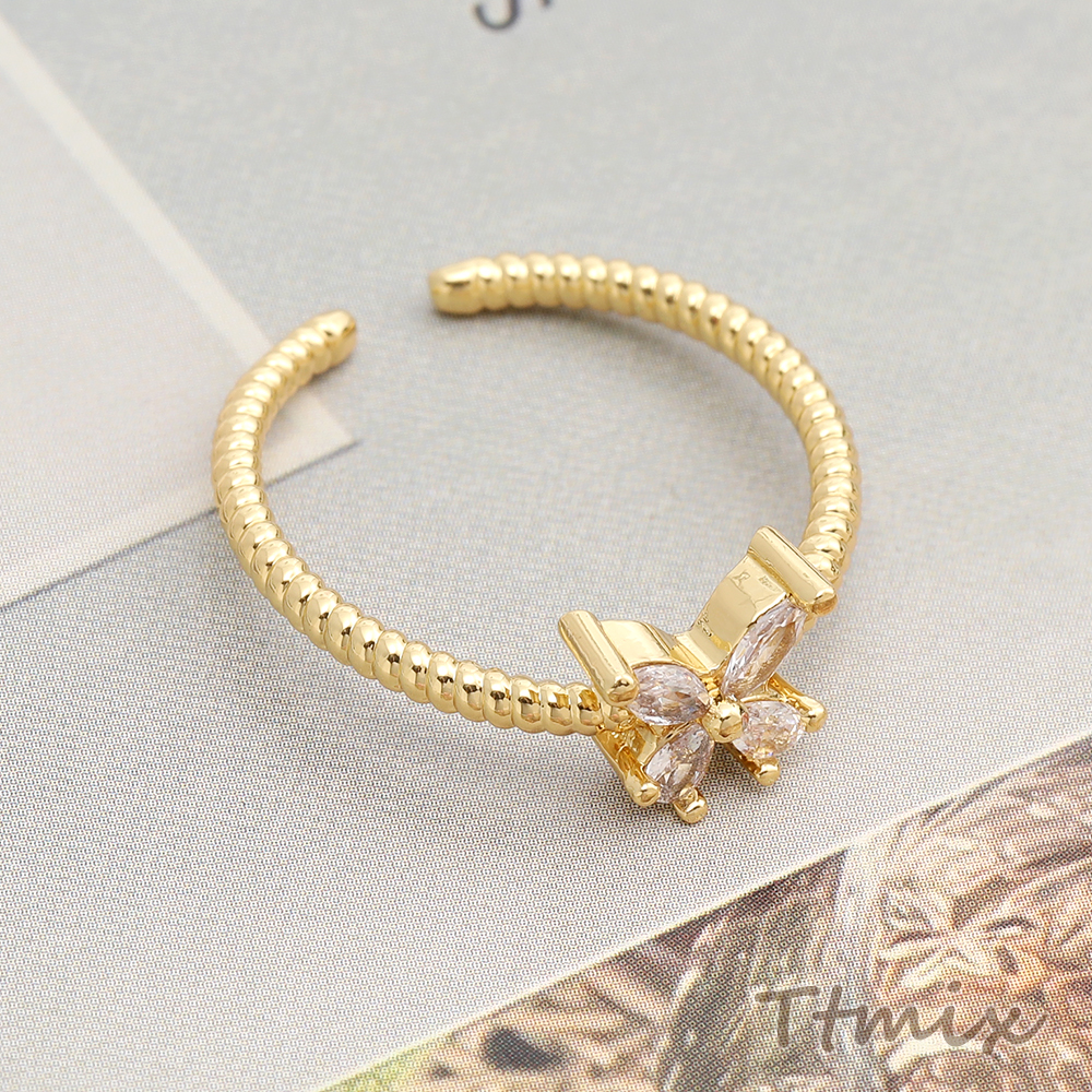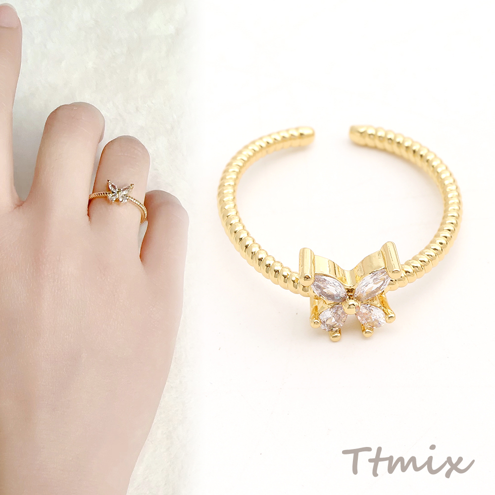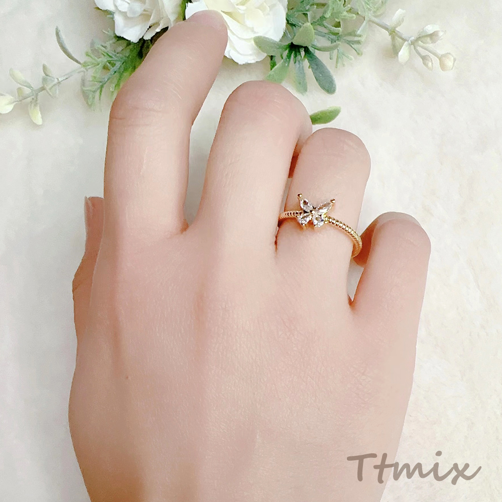 高品質ジルコニアリング レディスリング 指輪 蝶 幅約7mm ゴールド(1ヶ)