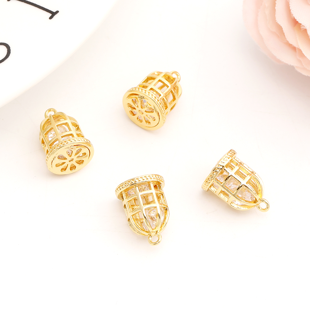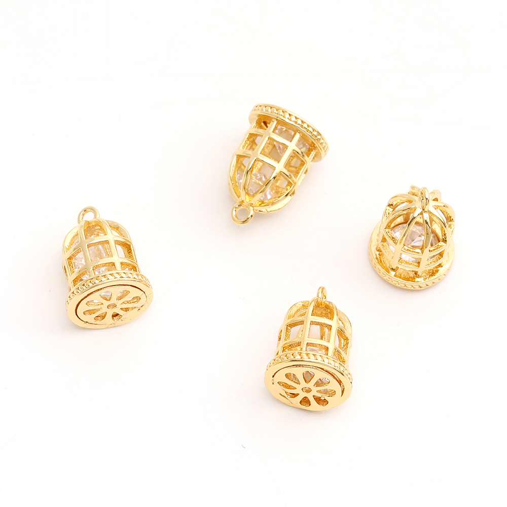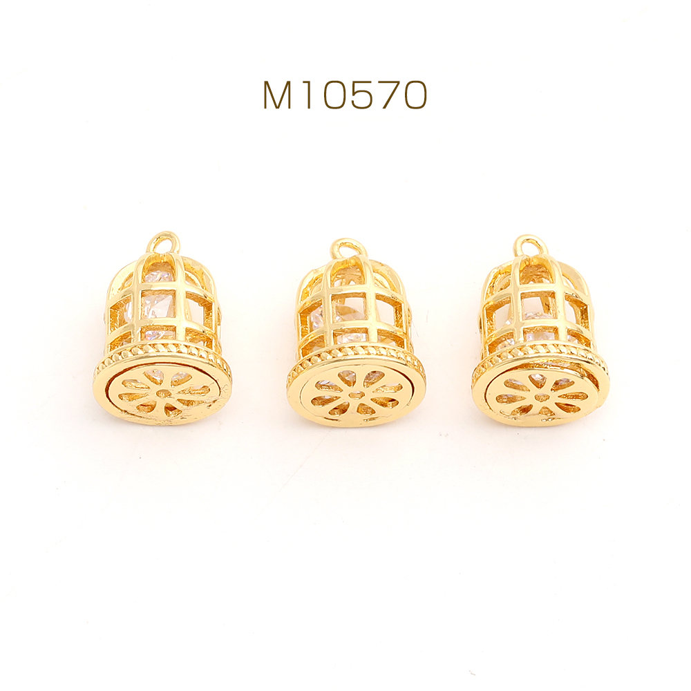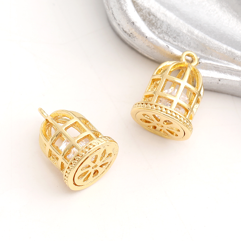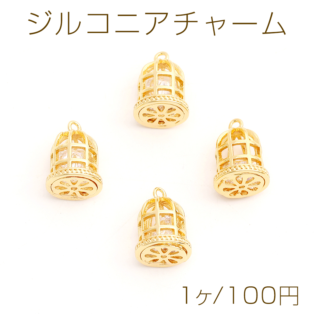 高品質ジルコニアチャーム 鳥かご 9×13mm ゴールド(1ヶ)
