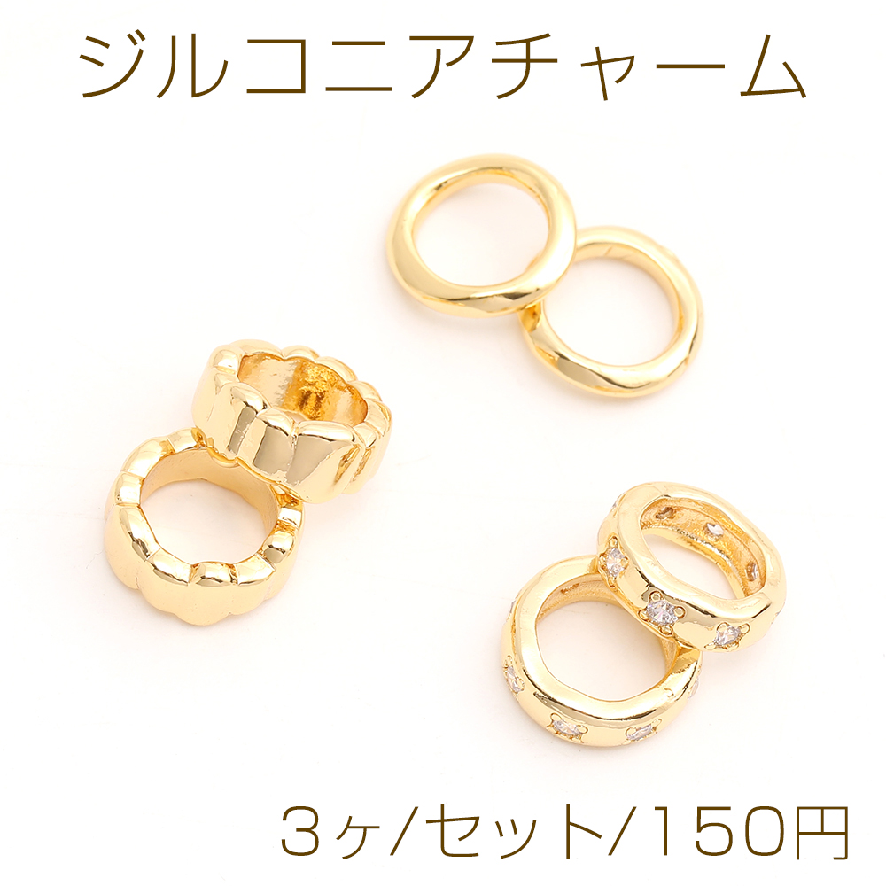 高品質ジルコニアチャーム&メタルチャーム 11mm ゴールド(3ヶ/セット)