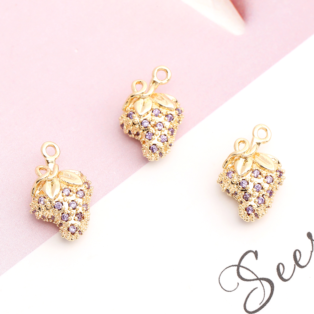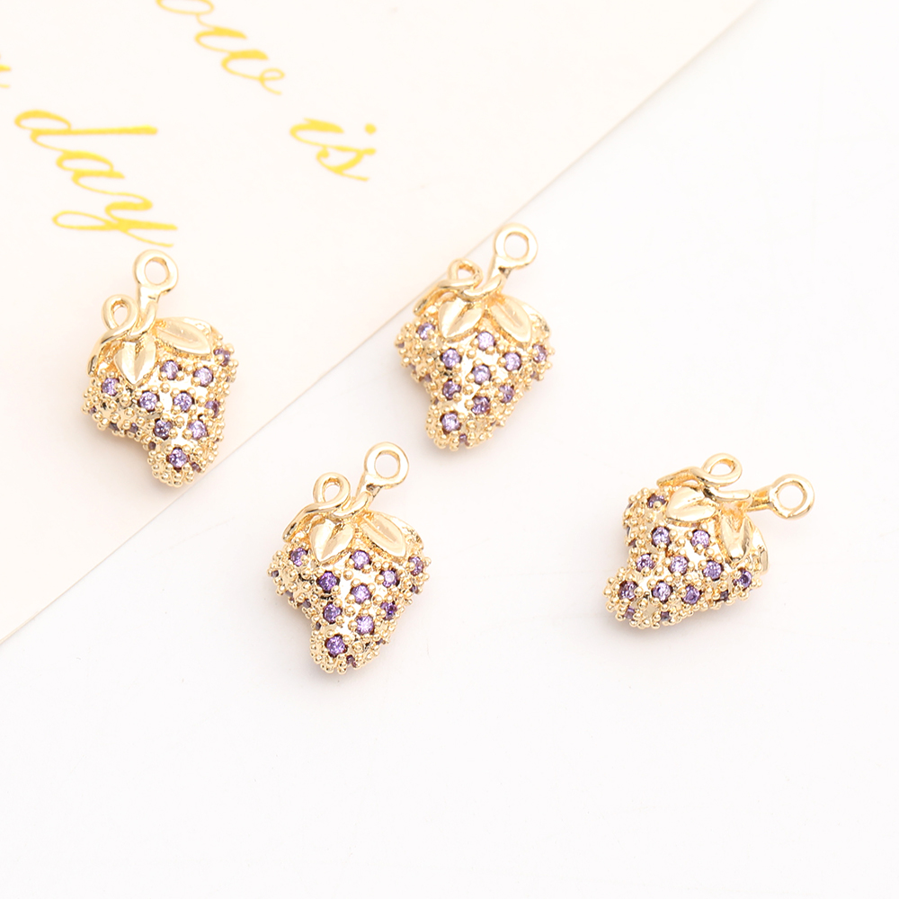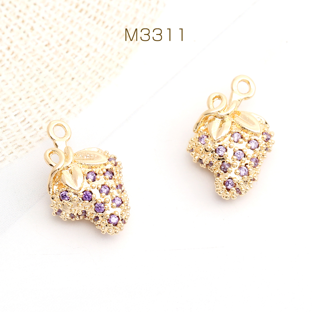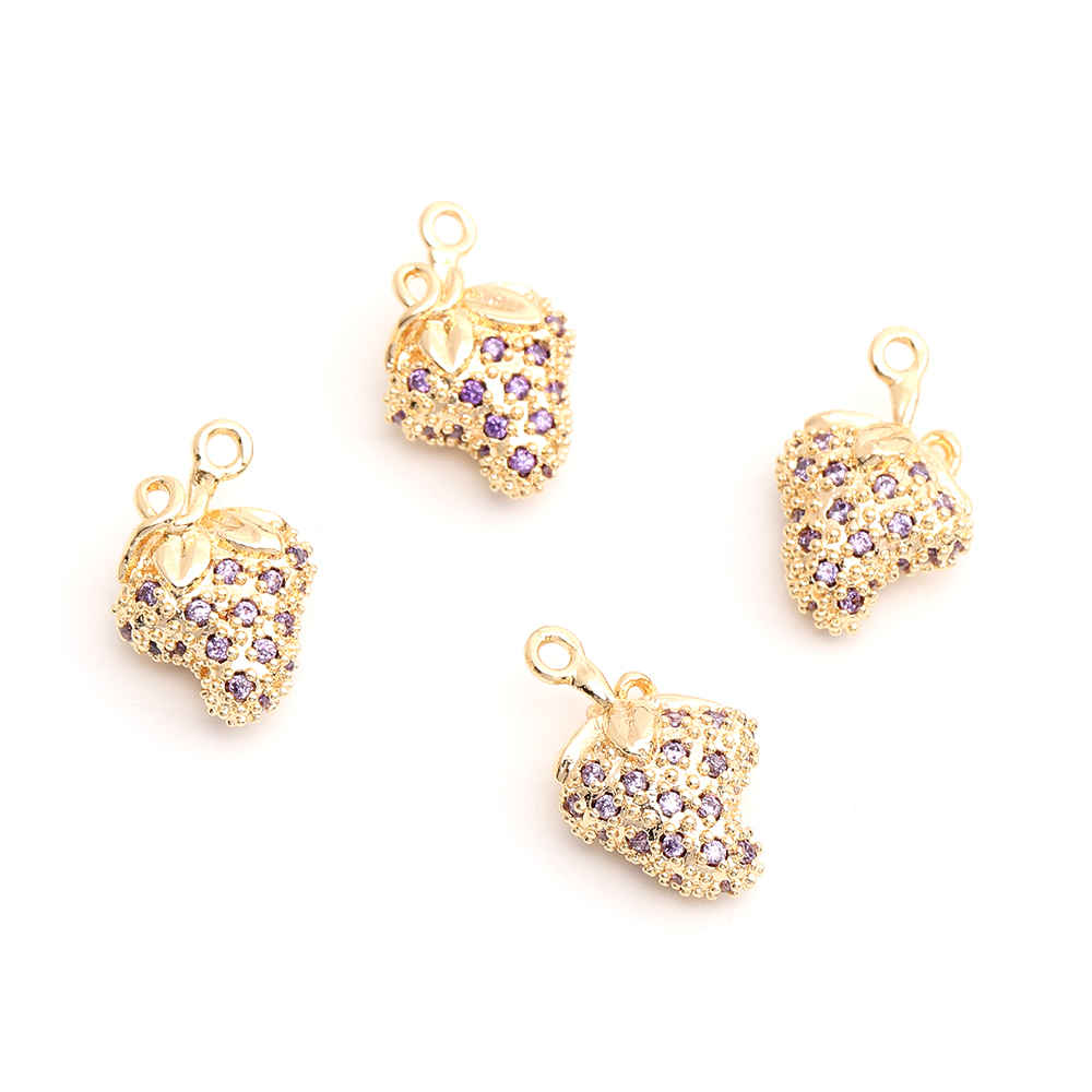 高品質ジルコニアチャーム いちご 10×14.5mm ゴールド(1ヶ)