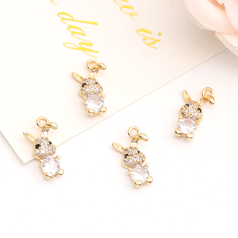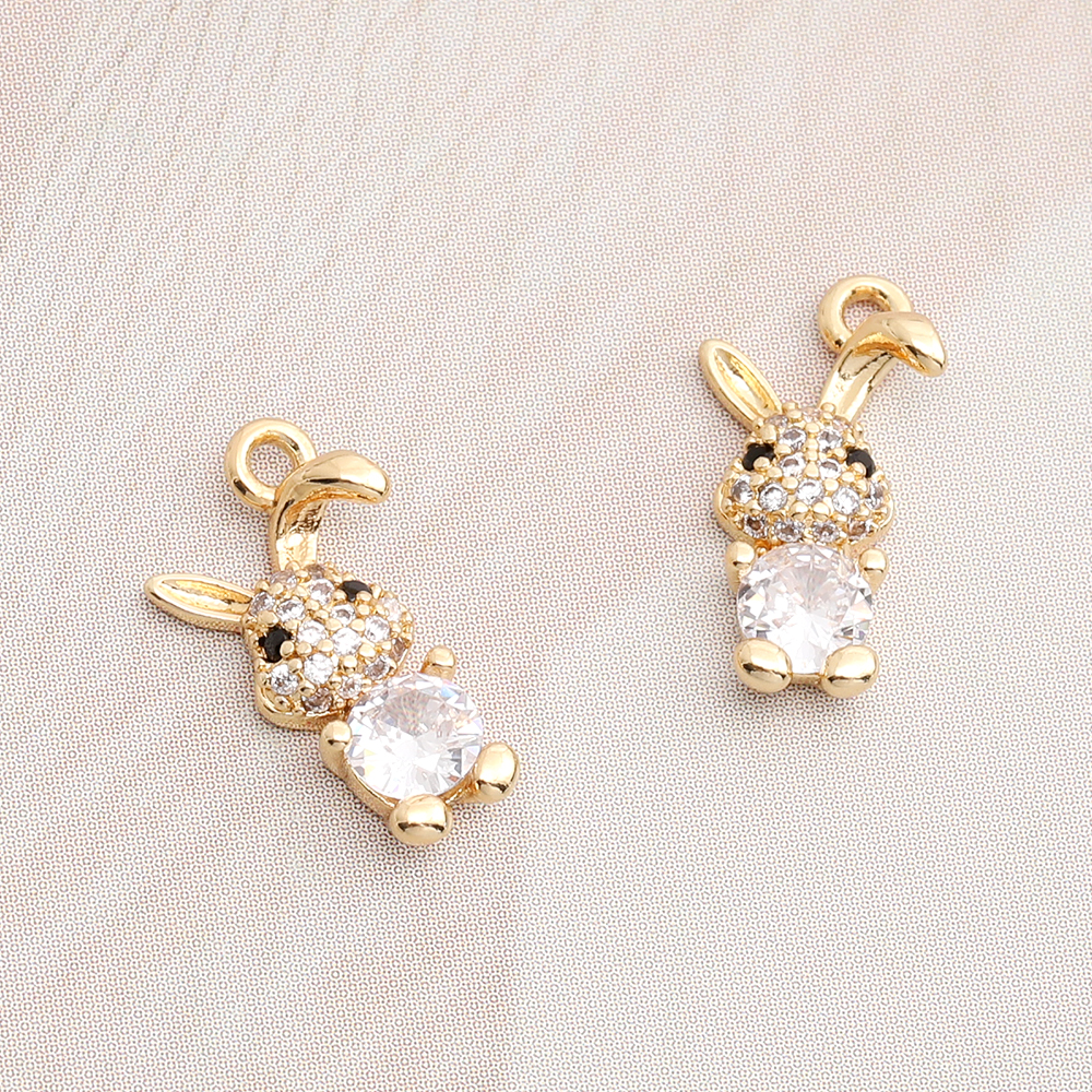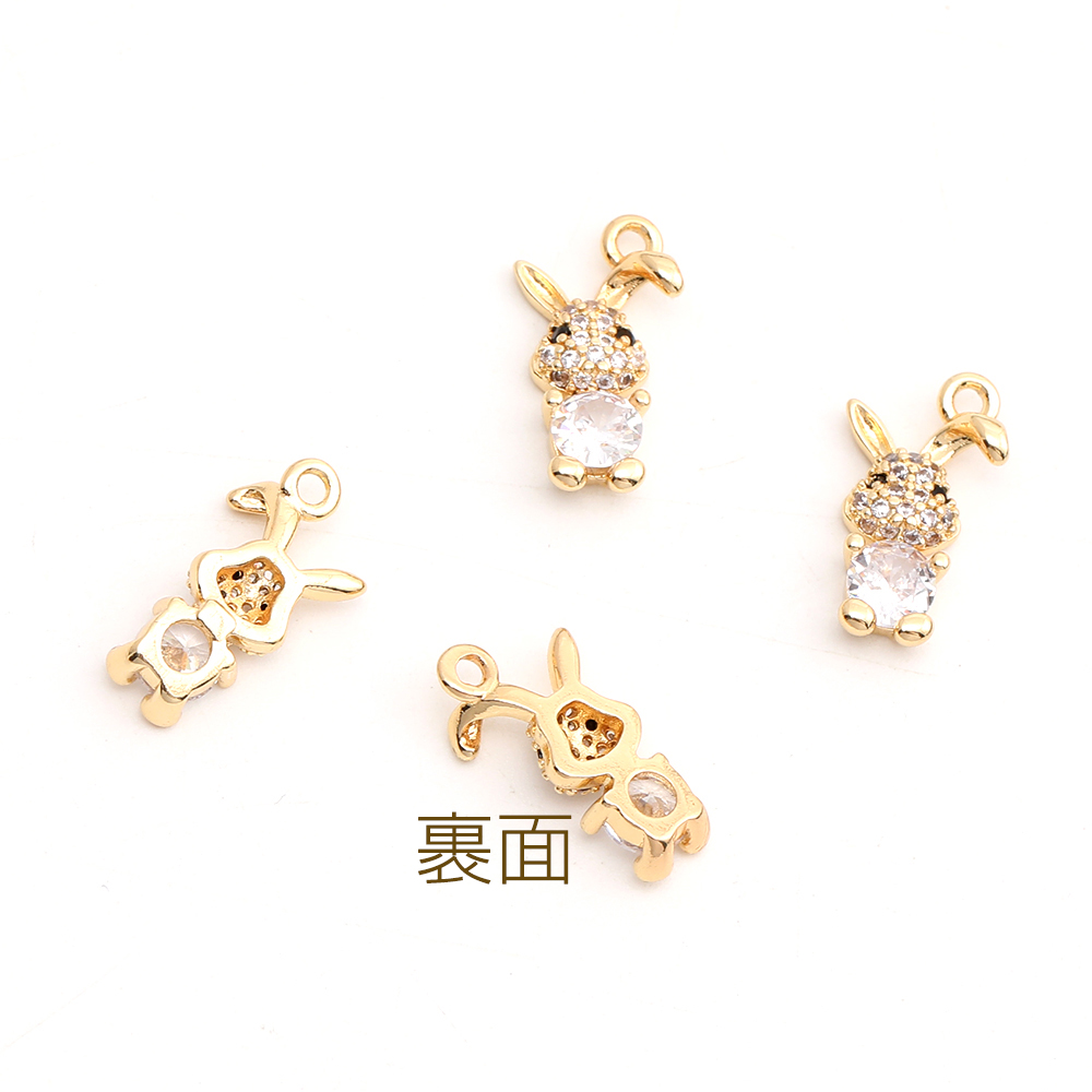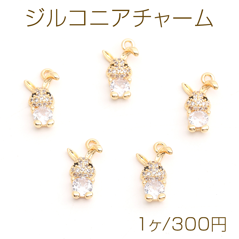高品質ジルコニアチャーム 兎 6×14mm ゴールド(1ヶ)
