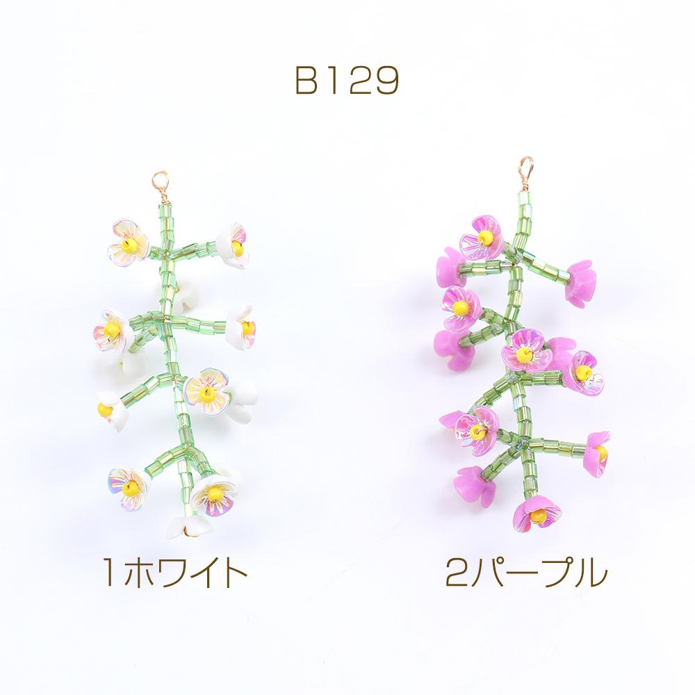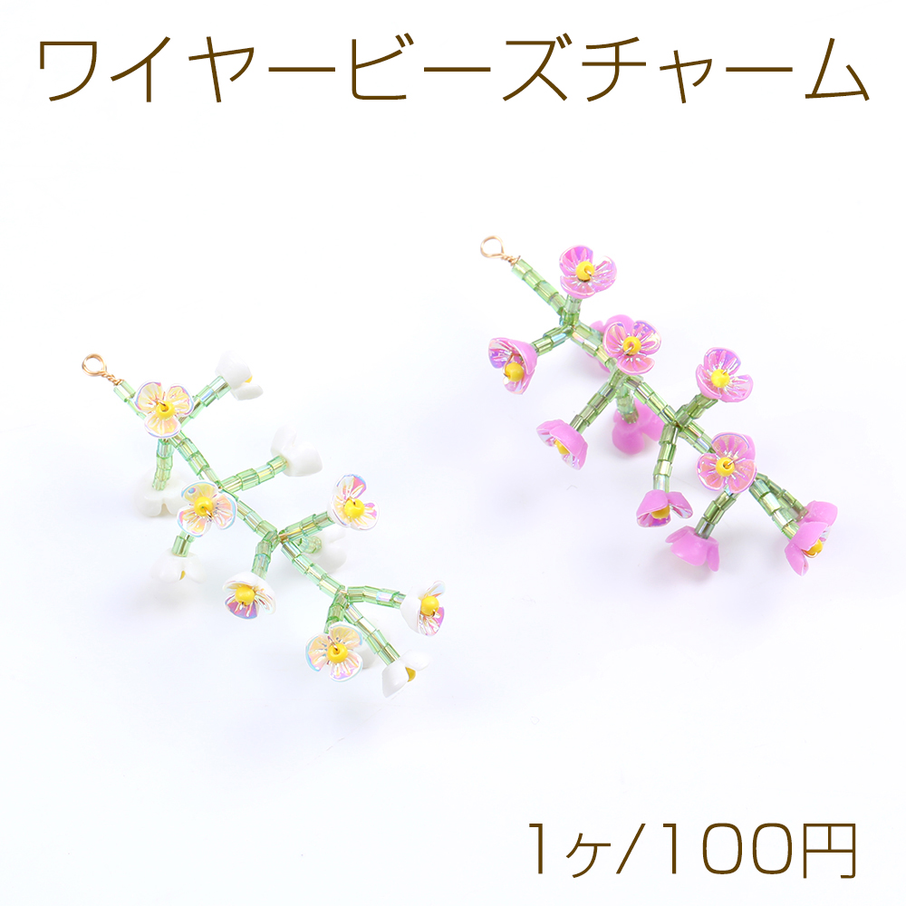 ワイヤービーズチャーム フラワー 23×50mm(1ヶ)