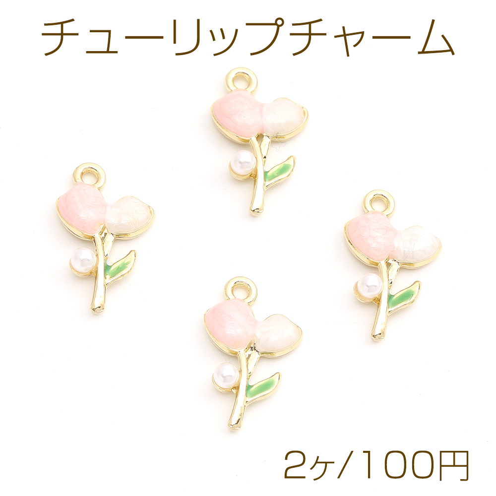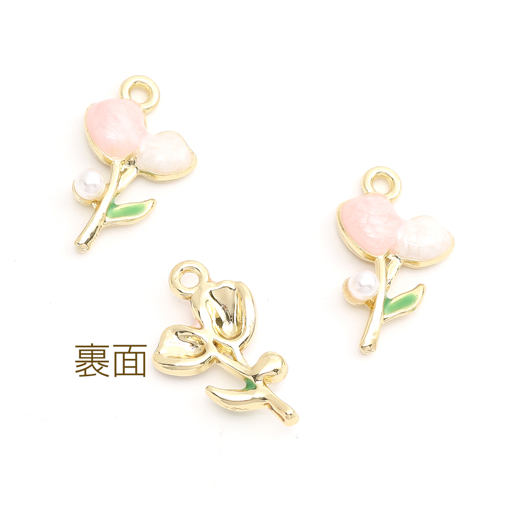 チューリップチャーム フラワーチャーム エポチャーム メタルチャーム 11.5×19mm ゴールド(2ヶ)