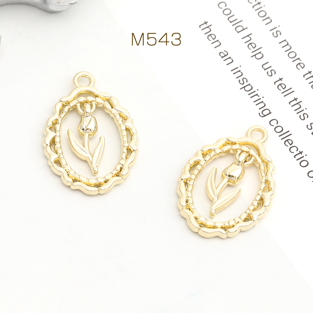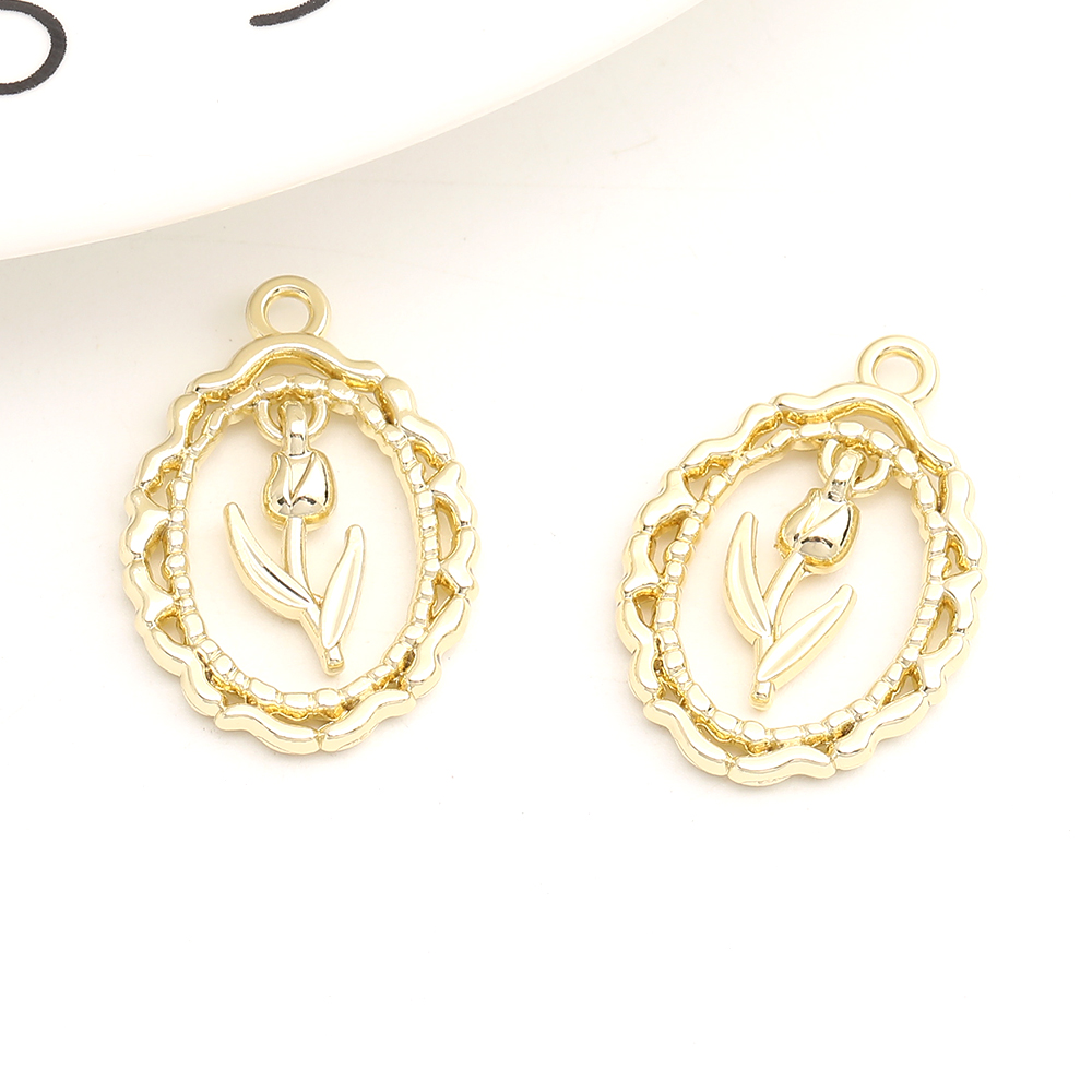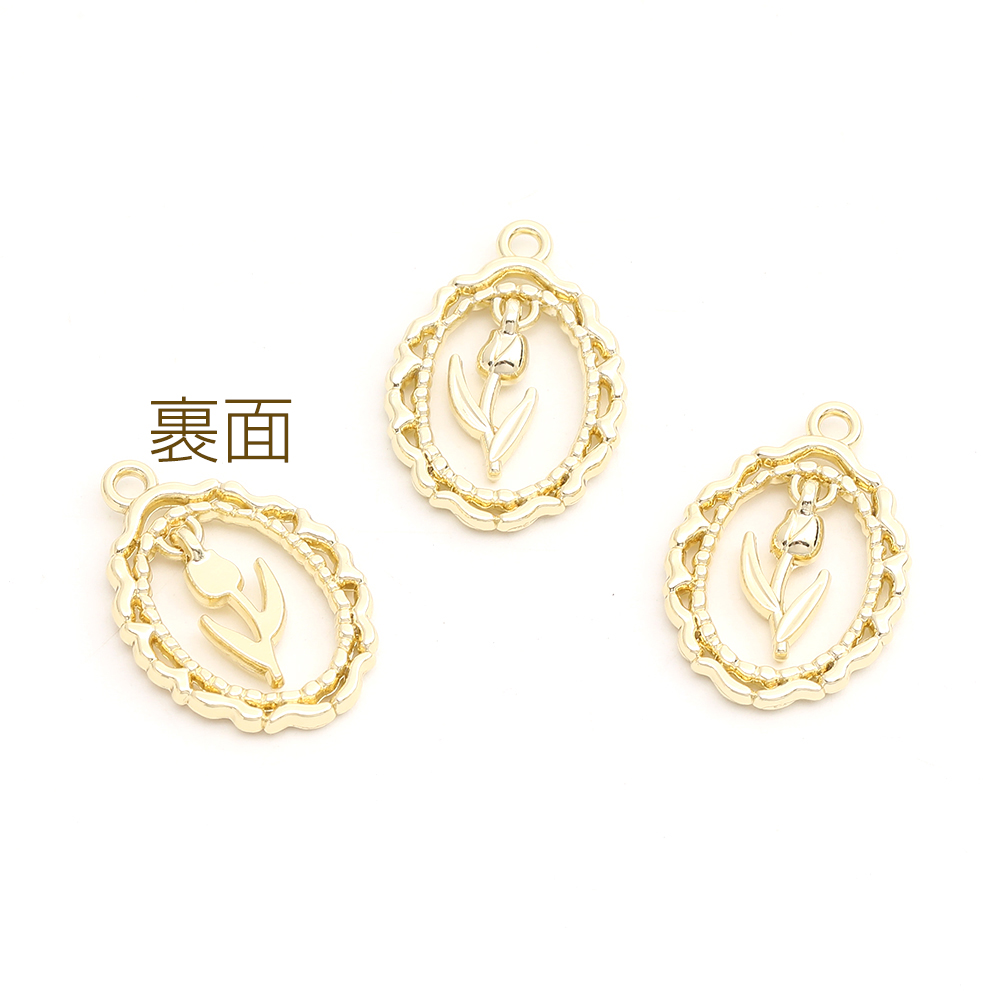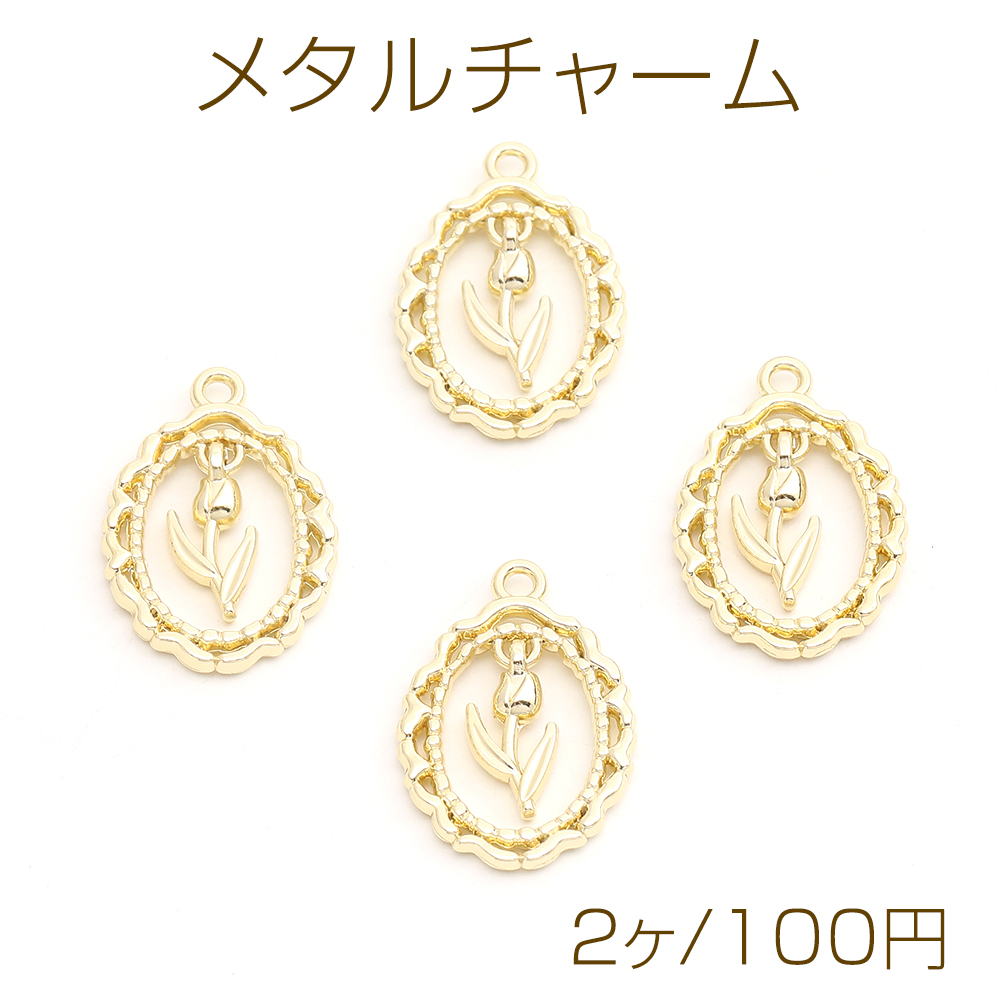 メタルチャーム オーバルチャーム チューリップチャーム 16×23mm ゴールド(2ヶ)