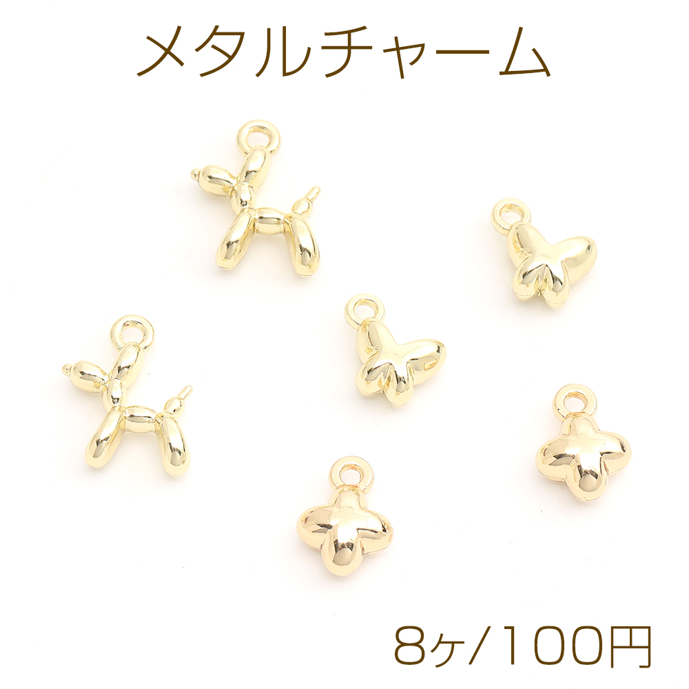 メタルチャーム ドッグチャーム 蝶チャーム クローバーチャーム ゴールド(8ヶ)