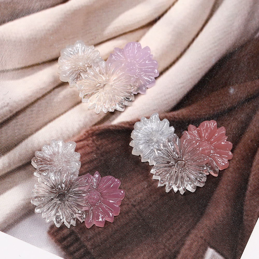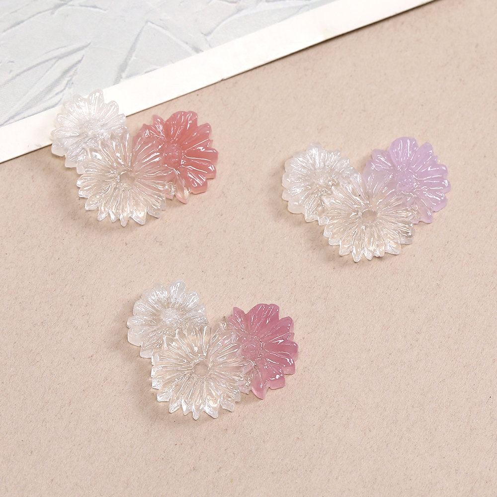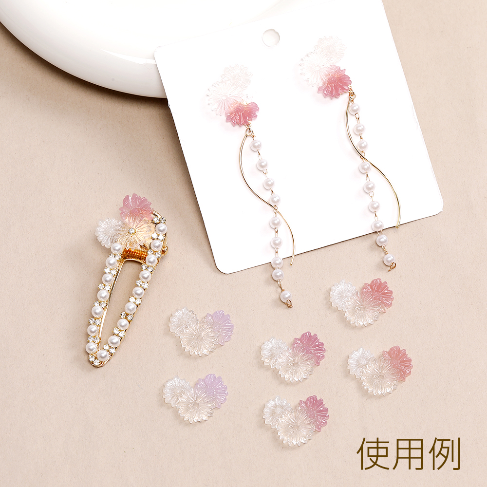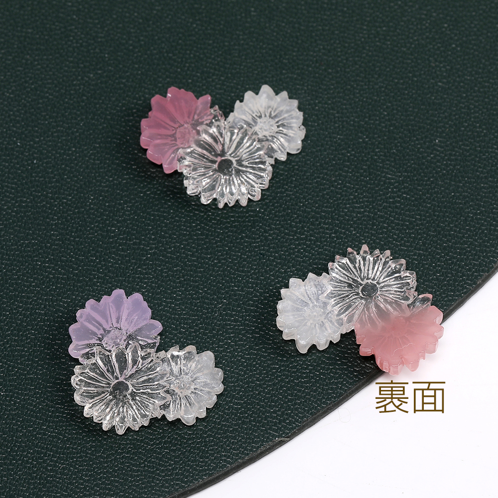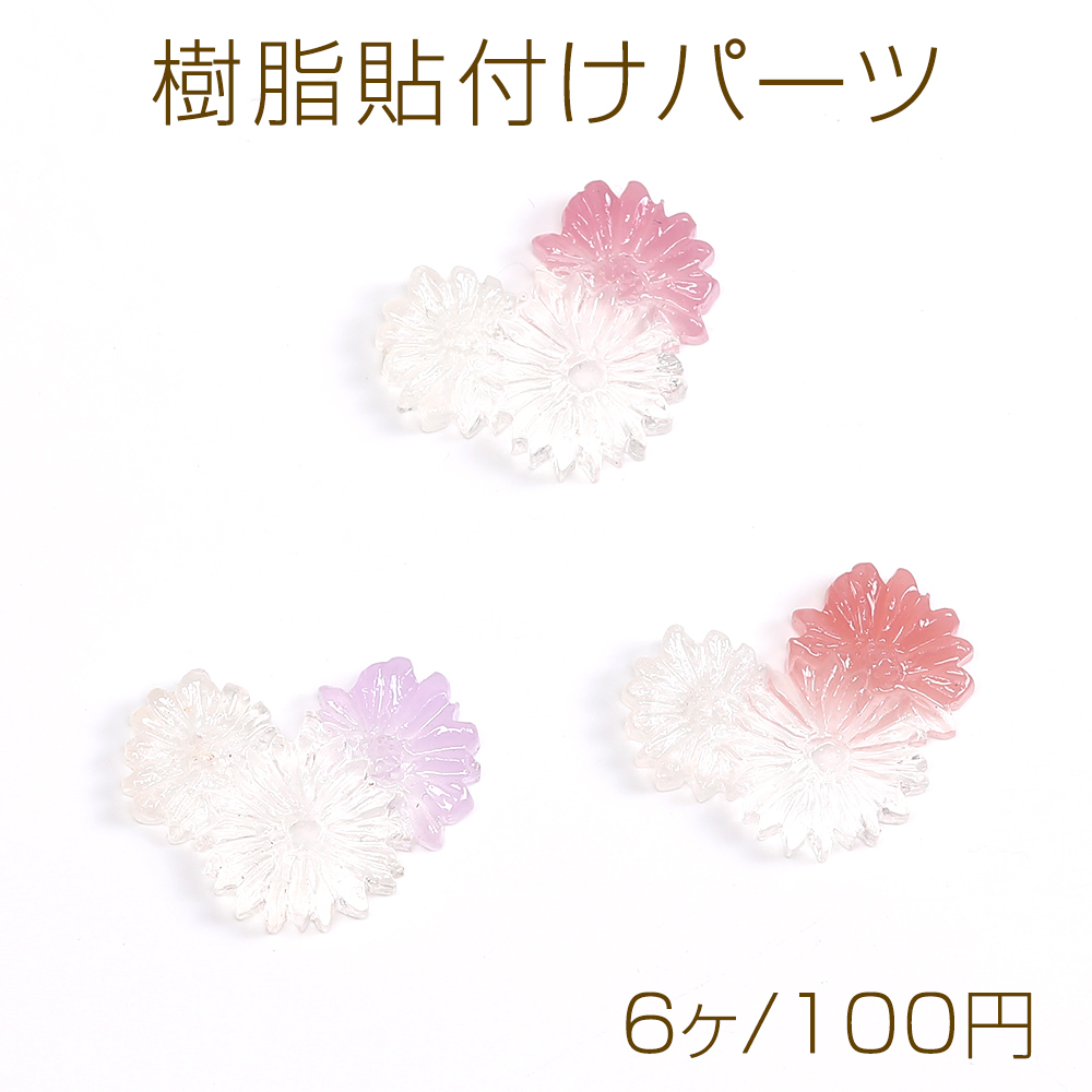 樹脂貼付けパーツ 樹脂カボション 3連デイジー 16.5×21mm(6ヶ)