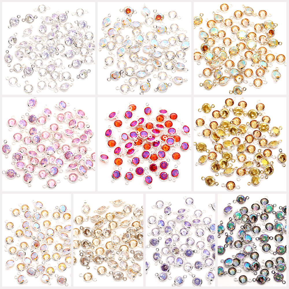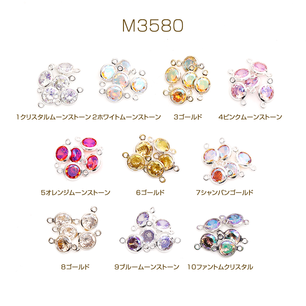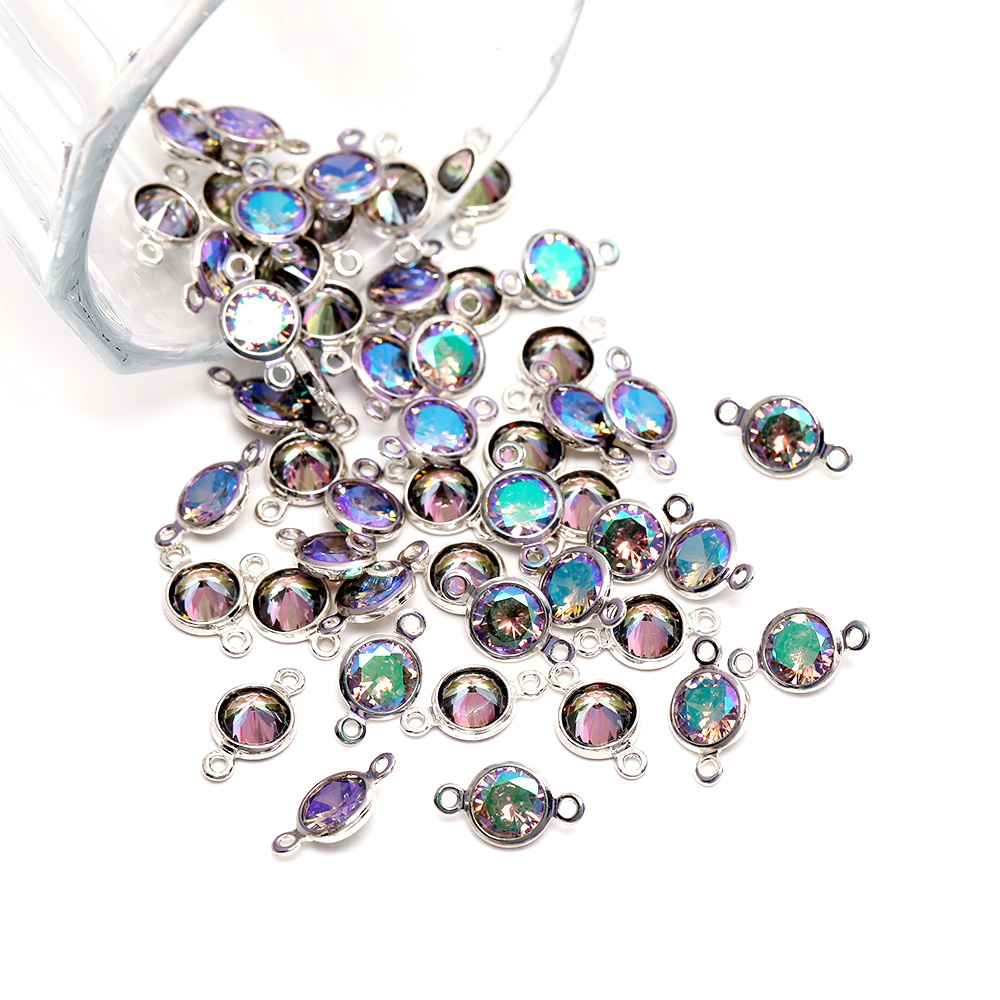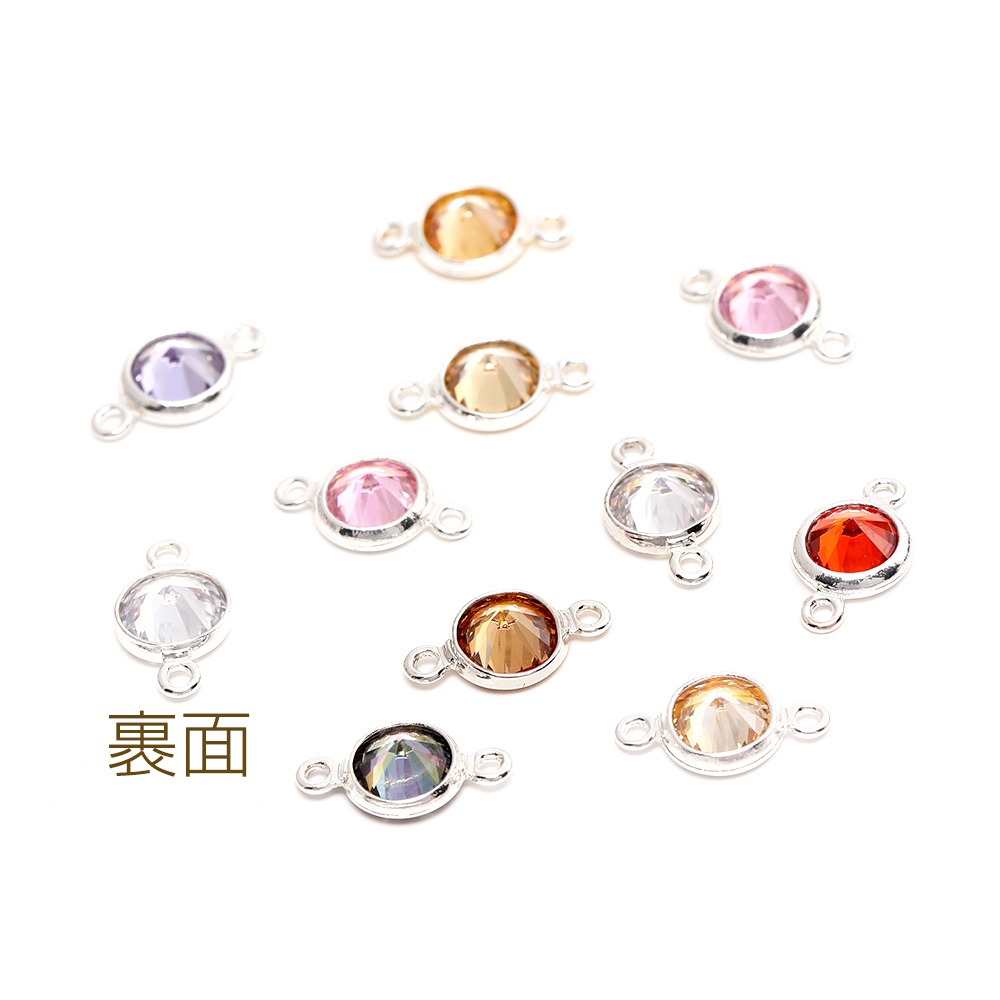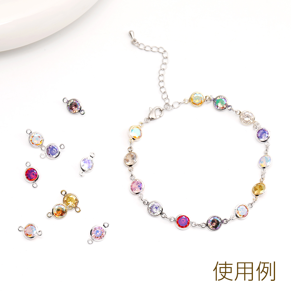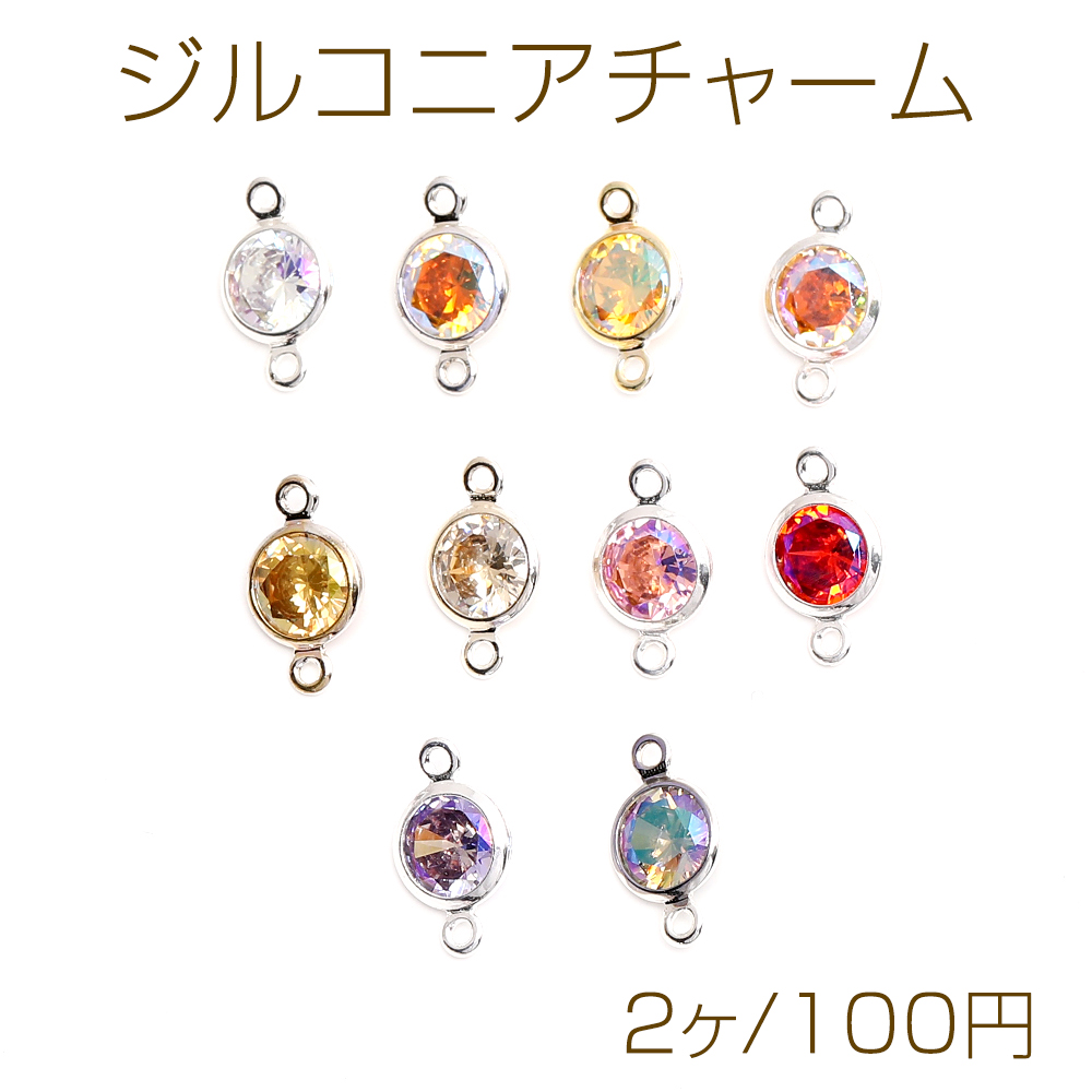 高品質ジルコニアチャーム コネクターチャーム ラウンド 2カン付き 6.7×12mm シルバー(2ヶ)