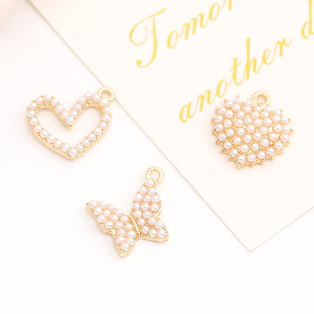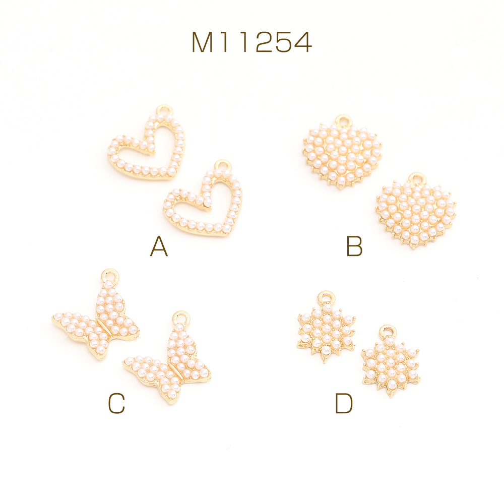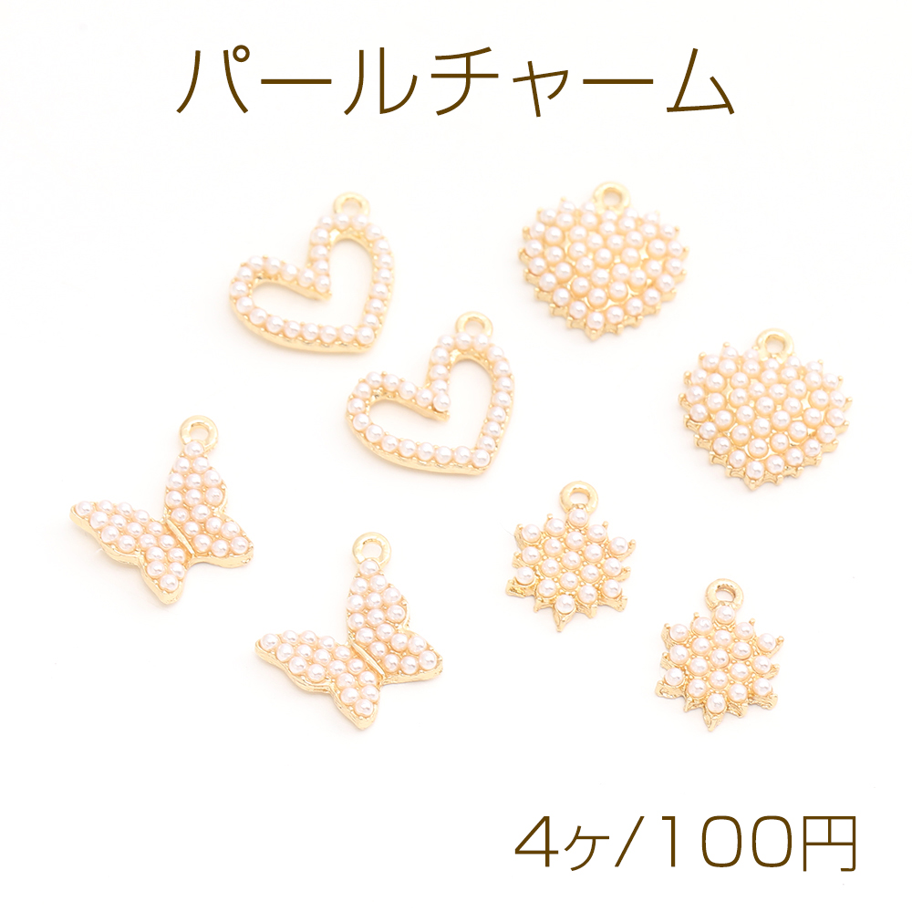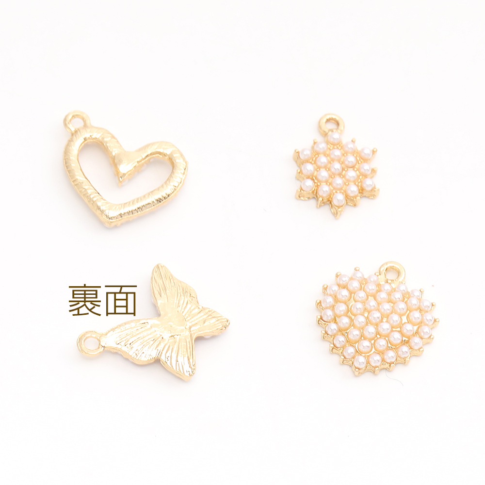 パールチャーム メタルチャーム ハート型 蝶 フラワー ゴールド