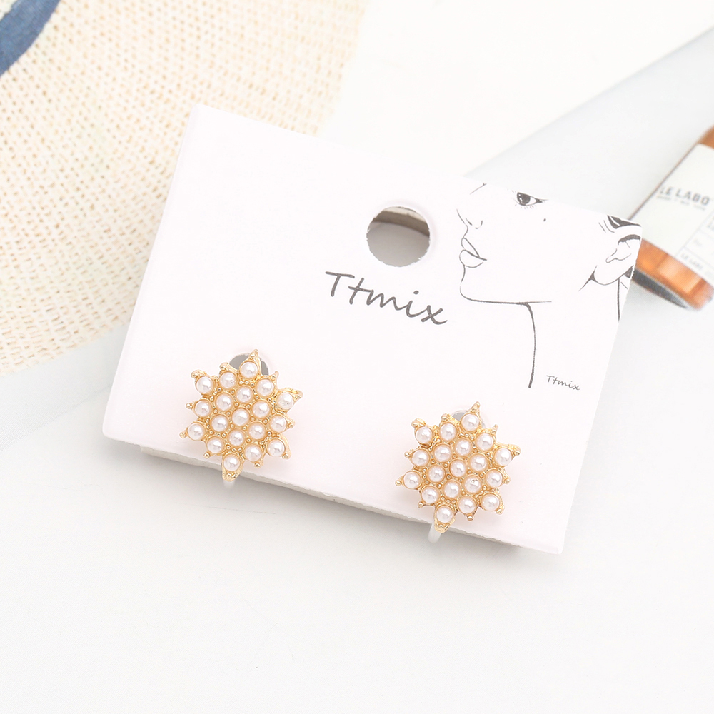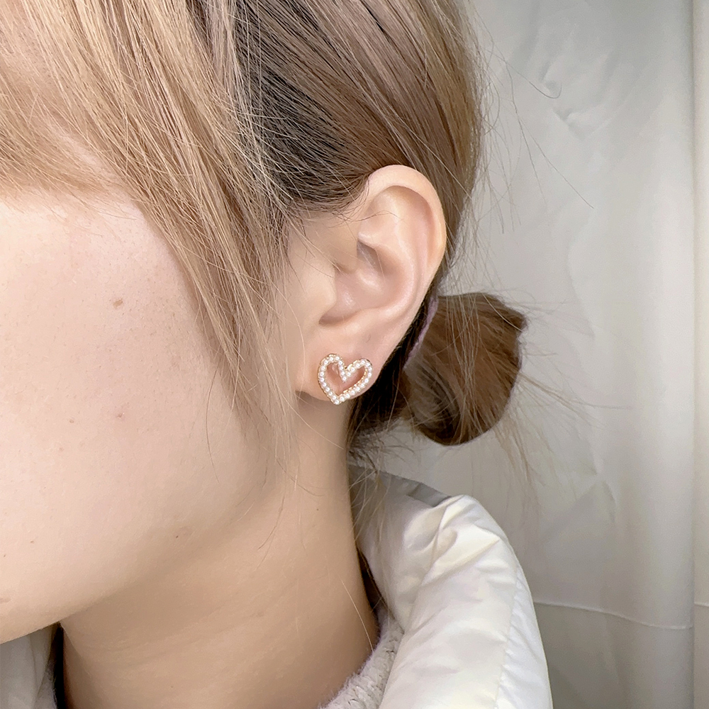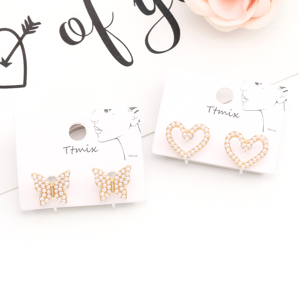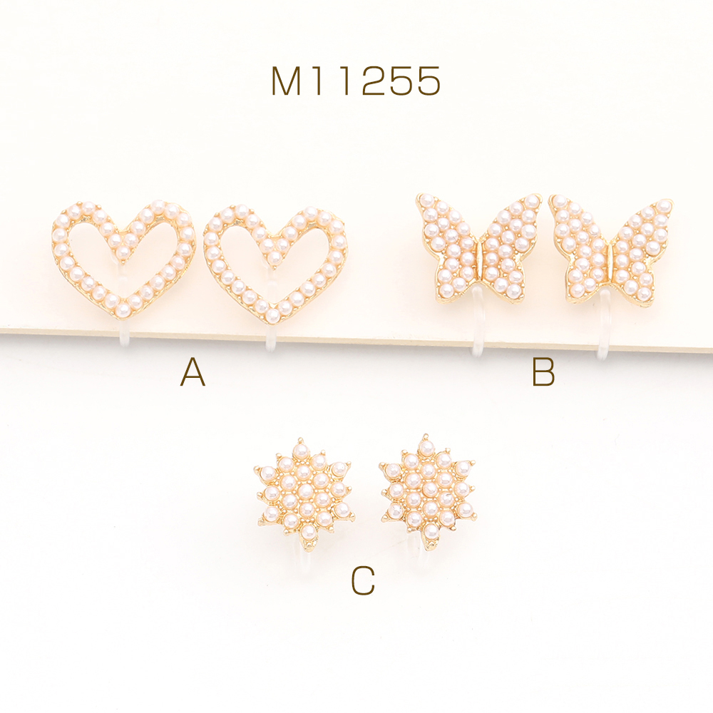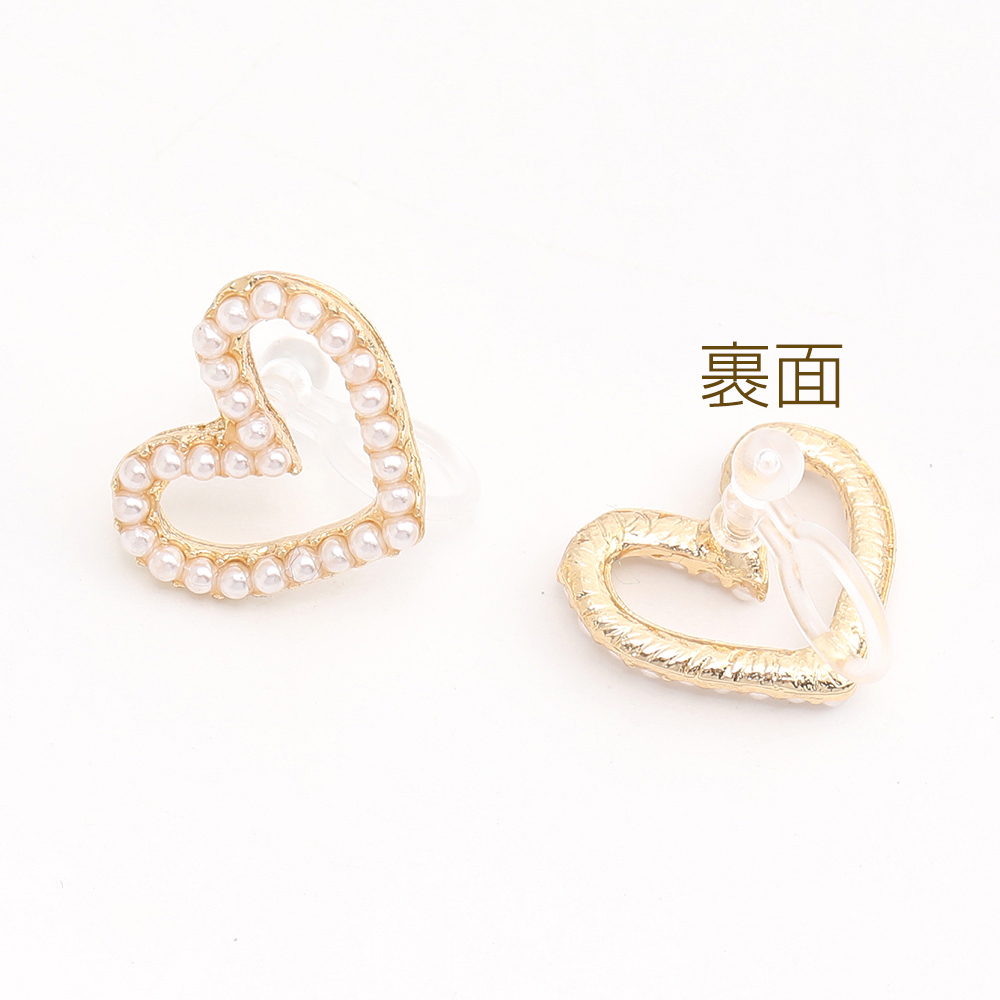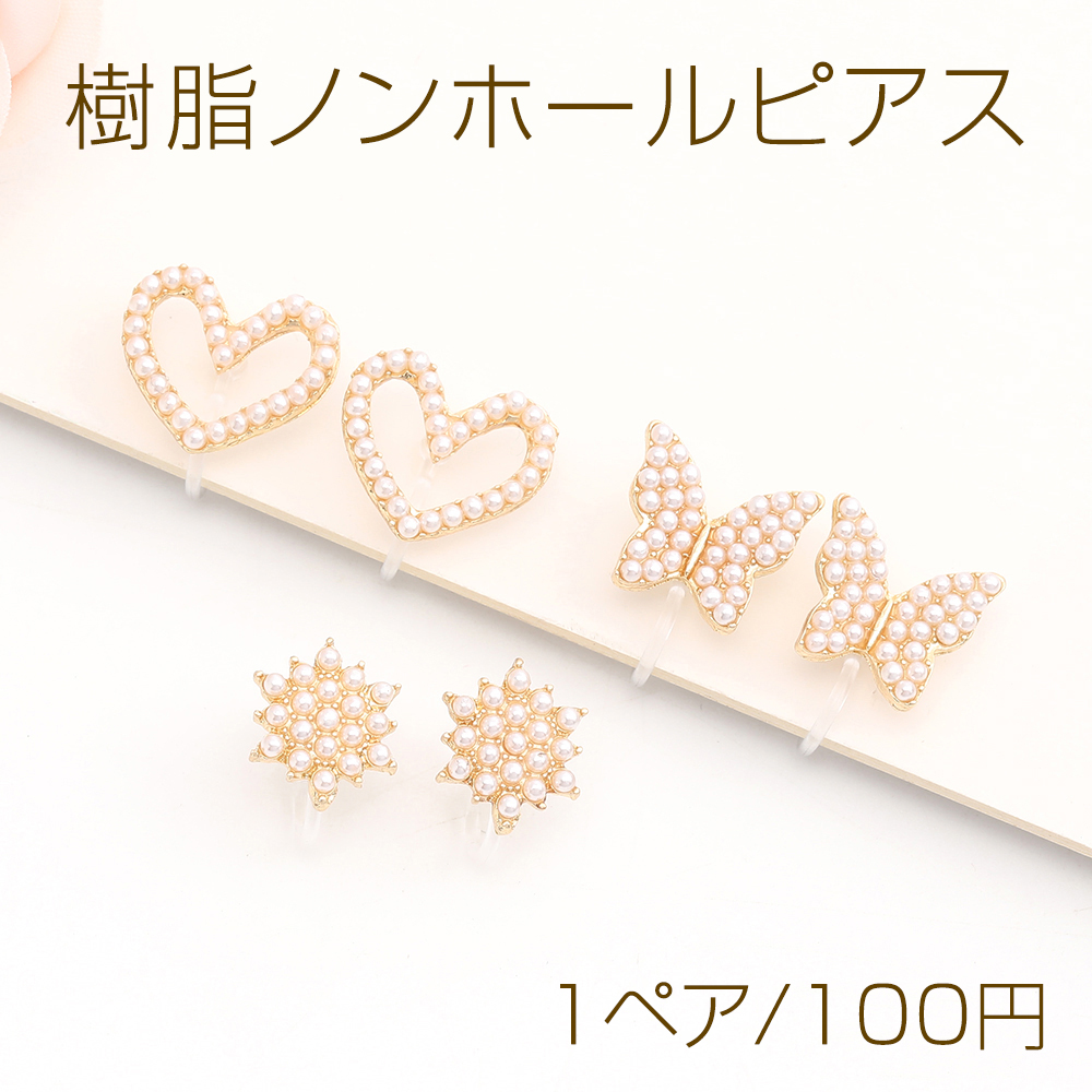 樹脂ノンホールピアス ハート型 蝶 フラワー パール付き ゴールド