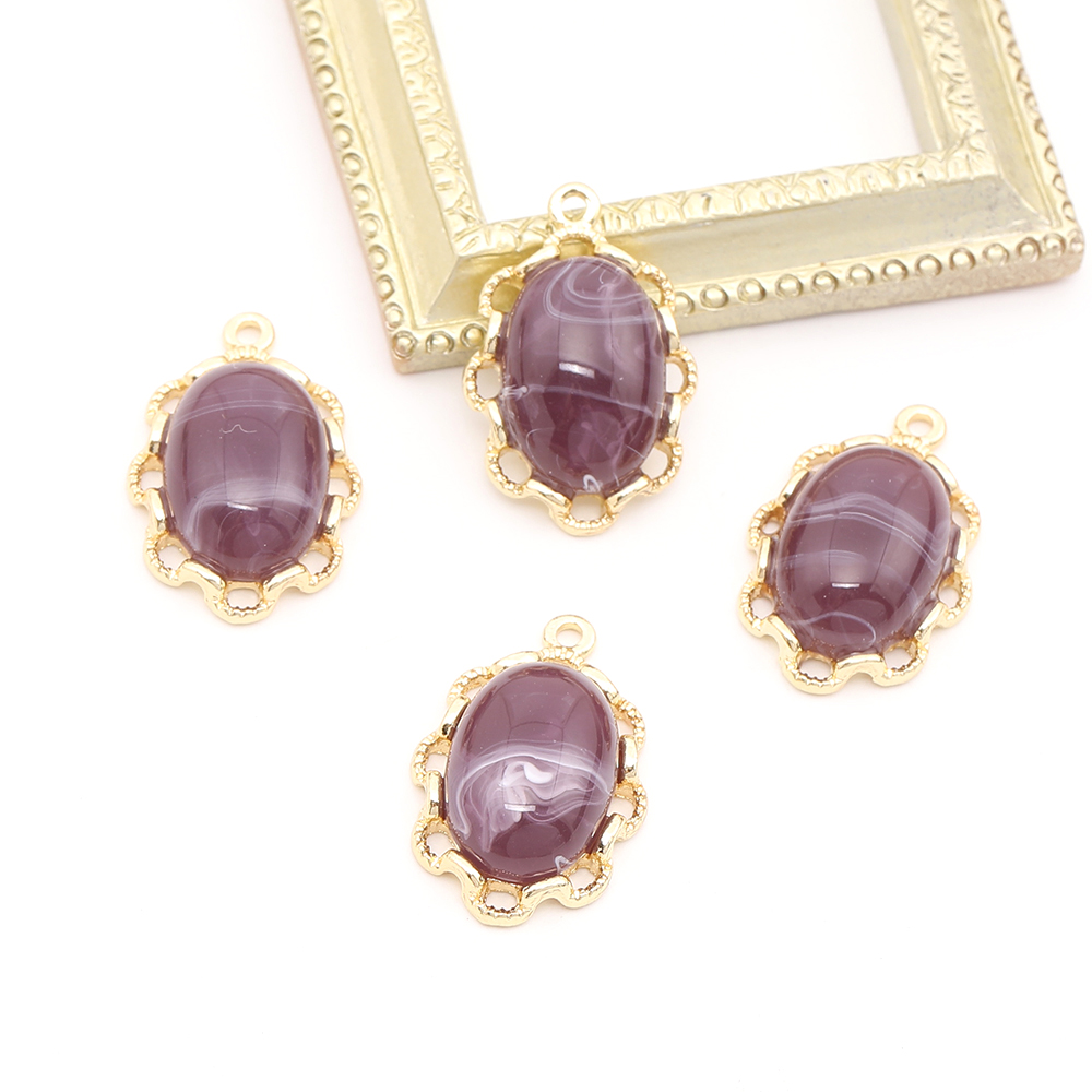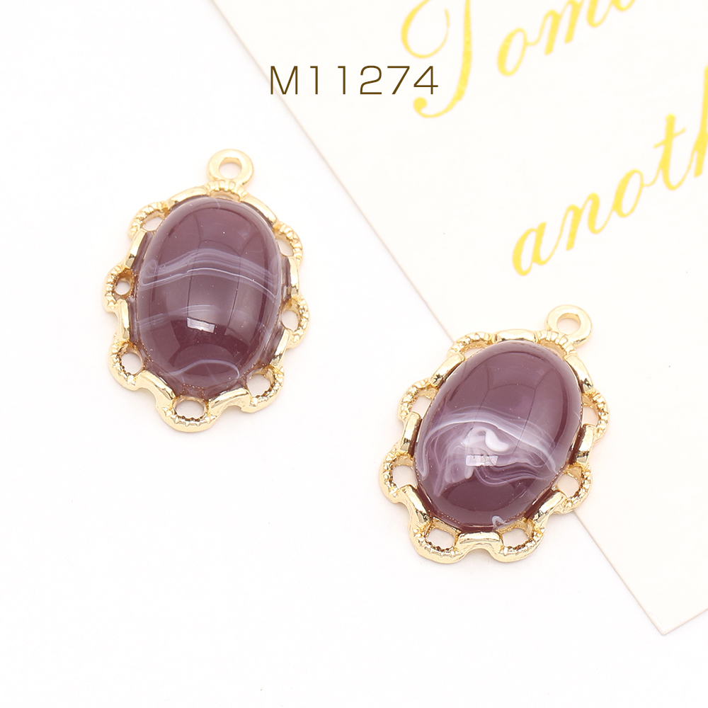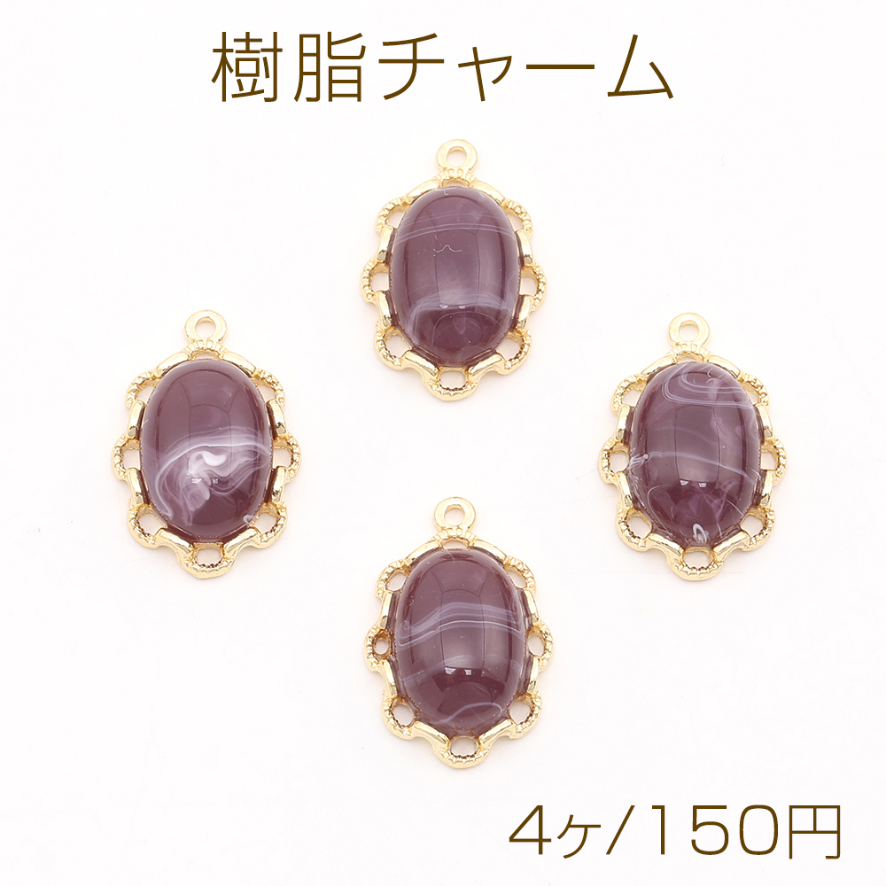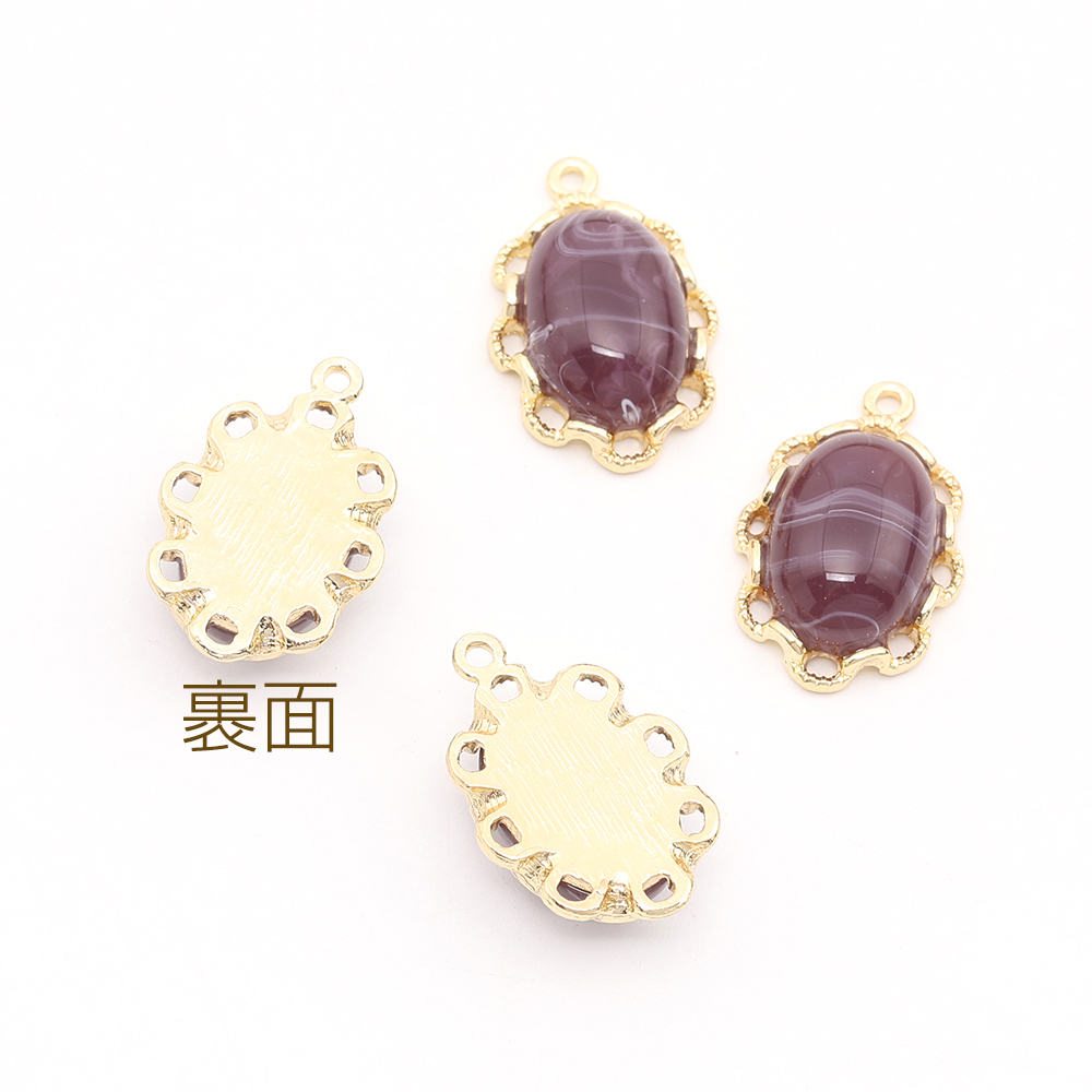 樹脂チャーム メタルチャーム レースオーバル 14×21mm ゴールド(4ヶ)