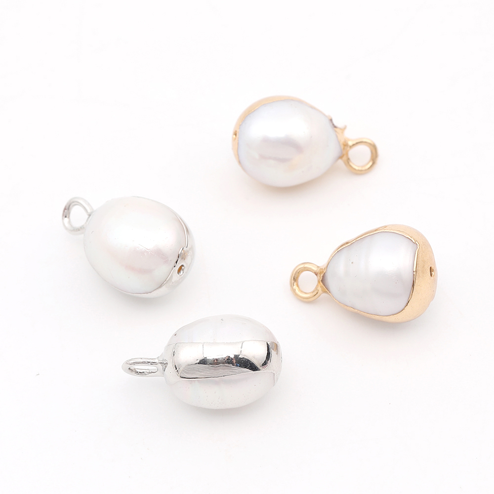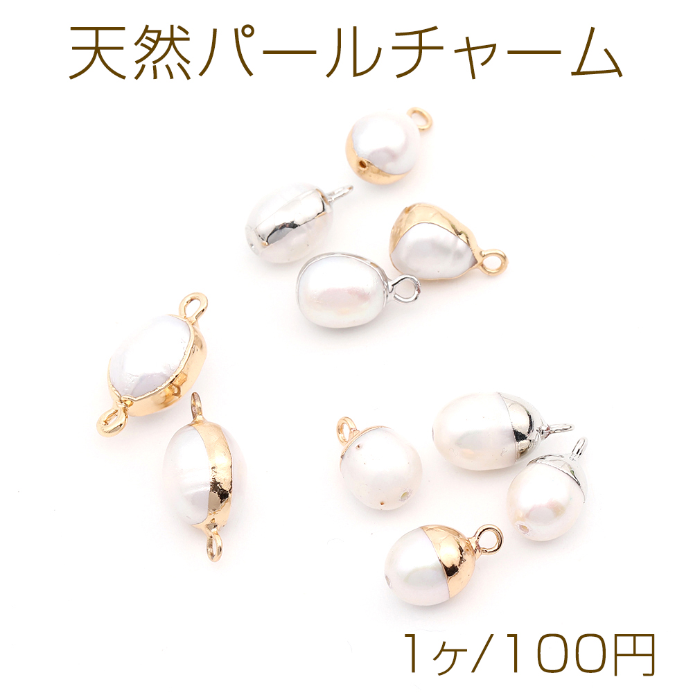 天然パールチャーム 天然パールコネクターチャーム 不規則型 ゴールド ロジウム