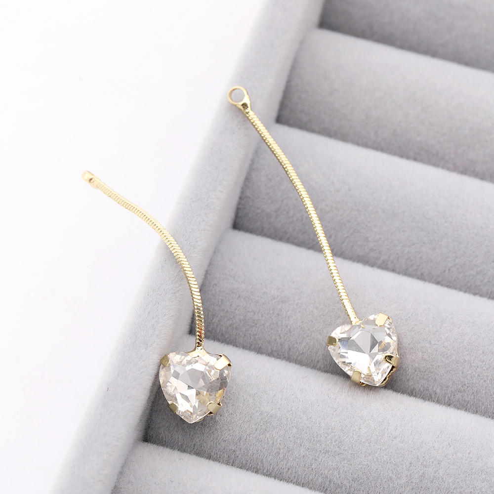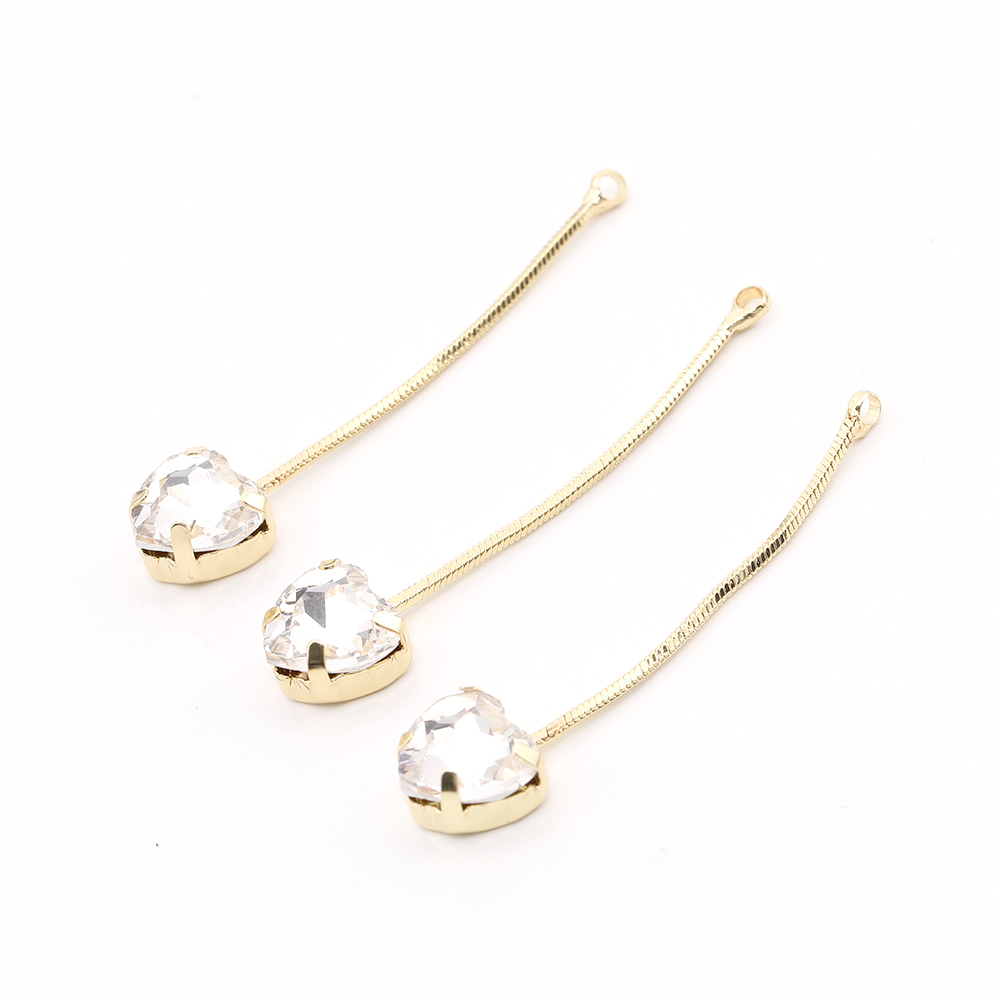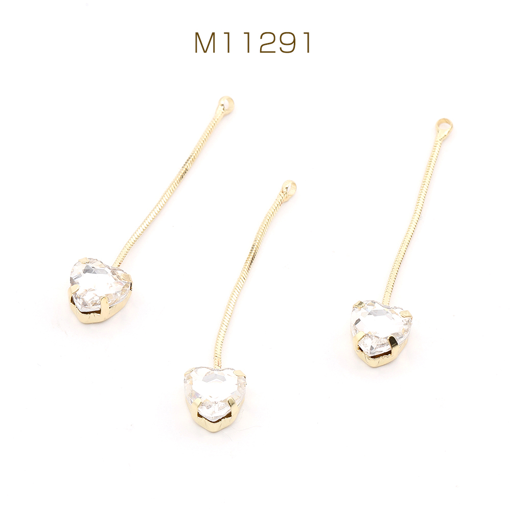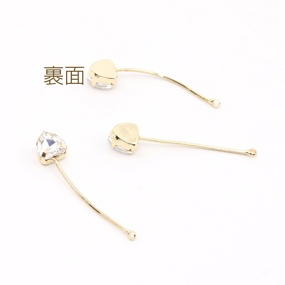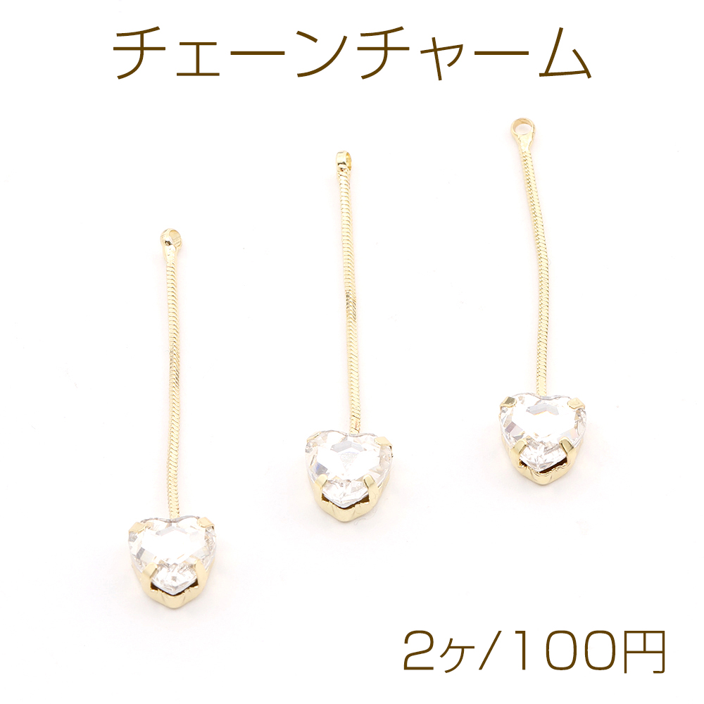 チェーンチャーム ハート型 ラインストーン付き 8×40.5mm ゴールド(2ヶ)