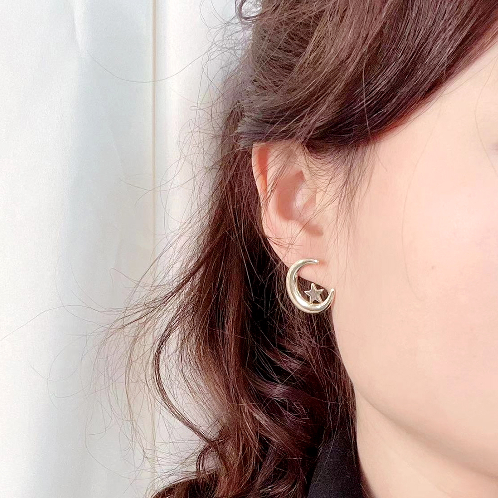 デザインピアス 星と月 21mm ゴールド(2ヶ)